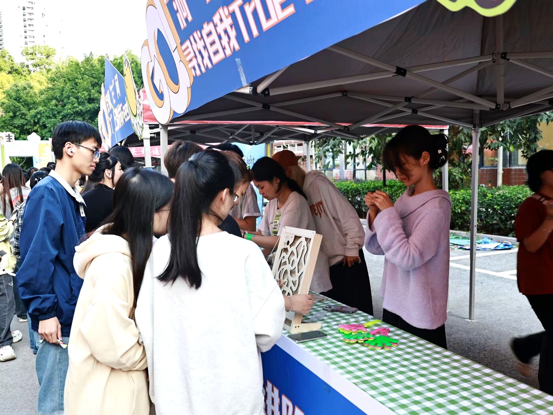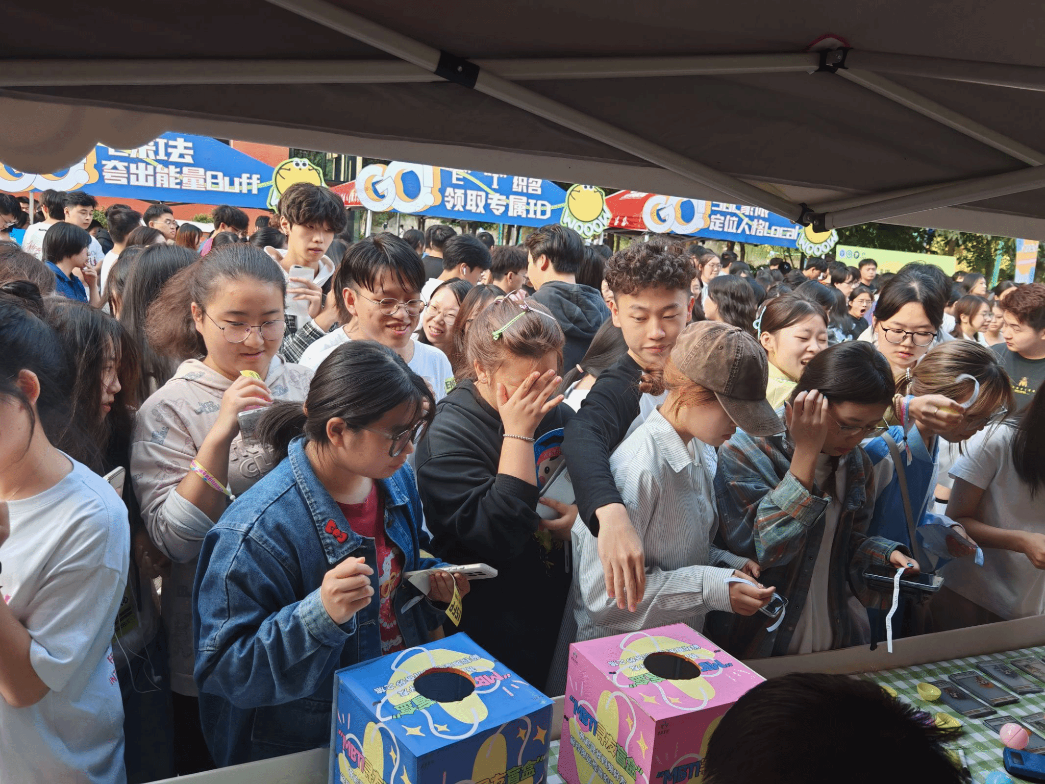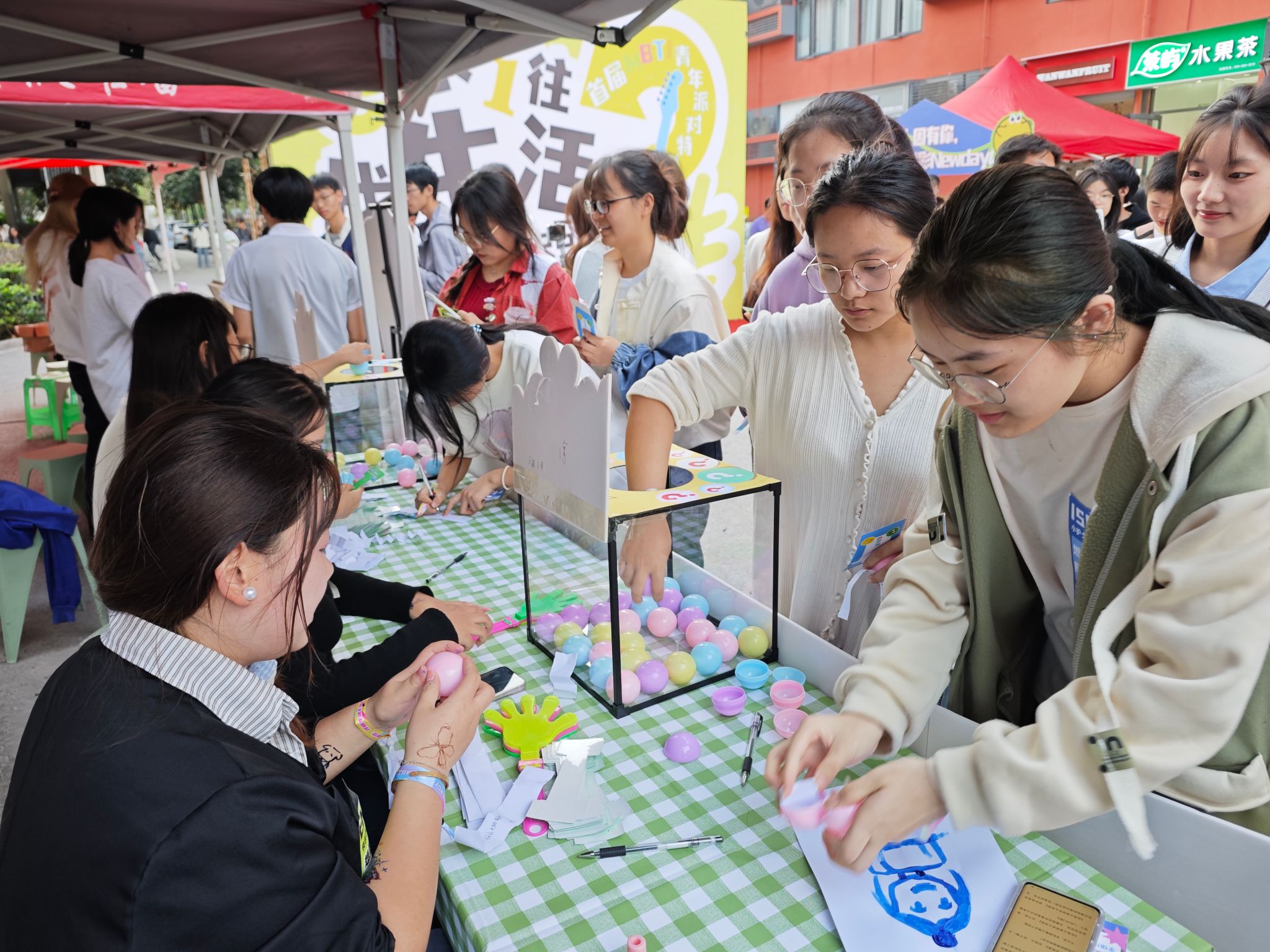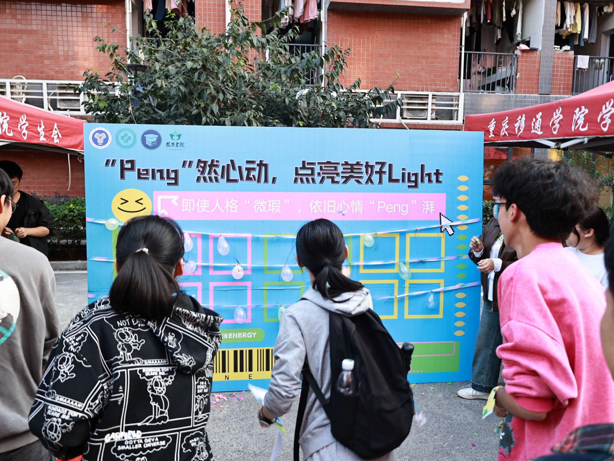 与好友对话,开启一场志趣相投的青年社交局。活动现场,同学们在气球上纷纷写下自己的不足之处勇敢直面真实自己,以打气球的方式与更好的自己“Peng”面。为构建朋辈互助新圈层,助力E人、I人能量汲取,打造有爱、有趣书院社区,邀请同学们以趣味刮刮乐、交换“E”问的形式,实现“EI”互夸、互问互答,在书院社区与陌生好友一起解锁“MBTI隐藏款”校园新体验。