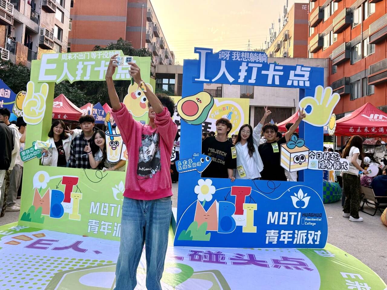 “E”趣青年碰头局,“I”上社交邻距离。为构建新型朋辈互助圈层,助力移通学子深入探索内在自我,深挖内心驱动力,花果书院联合重庆市合川区精神卫生中心、就业创业指导与服务中心于2024年10月23日16:30在花果书院小广场成功举办“E来I往,找回生活ENERGY”首届MBTI青年派对特别活动。本次活动依托MBTI人格属性,围绕“认识”“发展”“突破”三重维度,进一步引导我校学子充分认识自身亮点与特点。现场近700名师生在MBTI青年派对互动中,寻找自我发展的突破口,探索完满成长的无限可能。