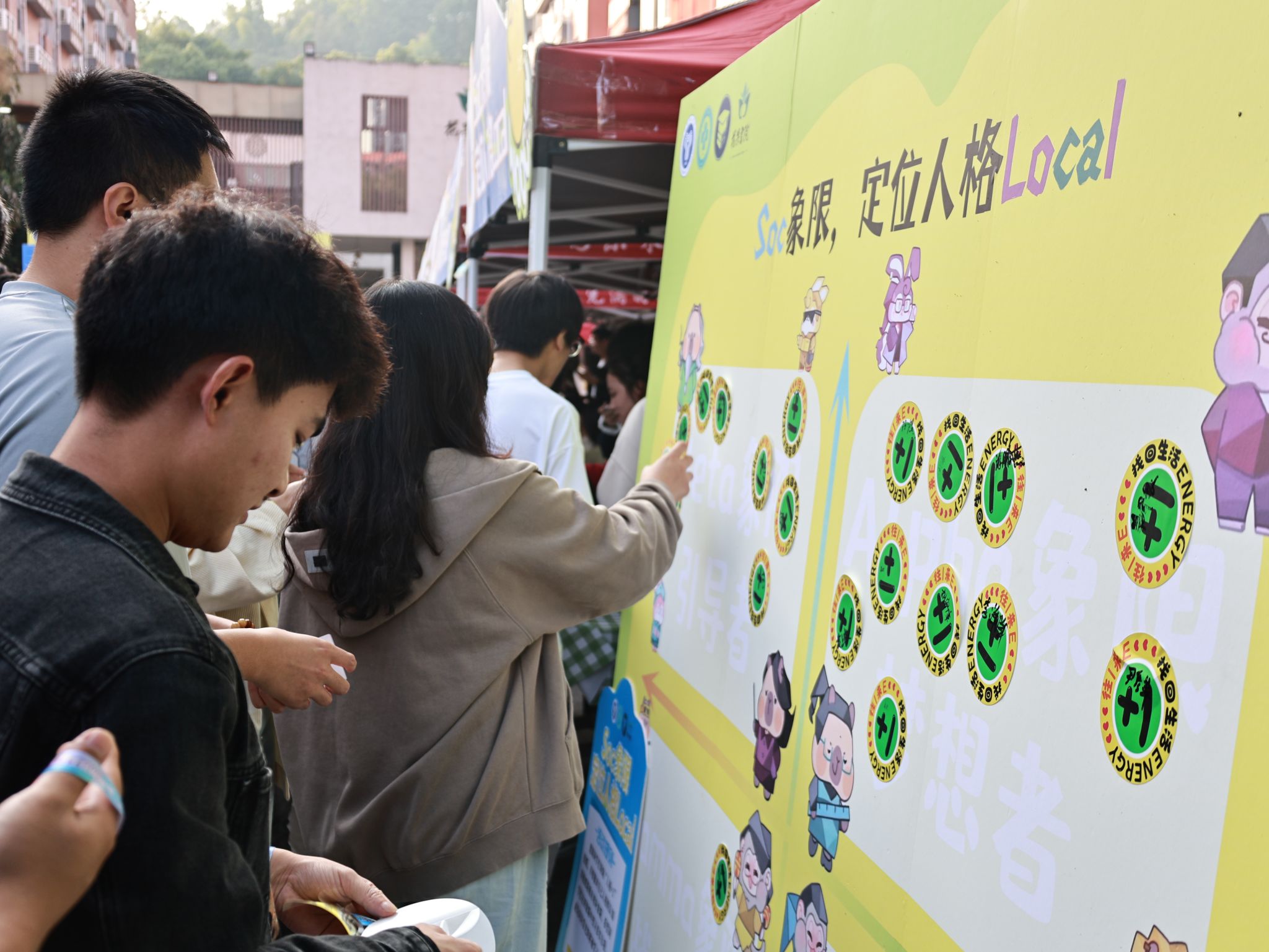 与未知对视,开启一场无畏定义的青年社交局。发出一则“续个火花”邀请,以全新社交方式打造“感召Social场”。同学们积极打破社交壁垒,获取寻友道具,同学们在活动现场突破自己、大胆“开麦”,与“书院限定Soulmate”不期而遇。为鼓励同学们别被MBTI定义,发现标签背后更为丰富、立体的自己,同学们在活动现场勇敢撕掉对E人、I人的固化标签,以此发现更多可能性的自己。
