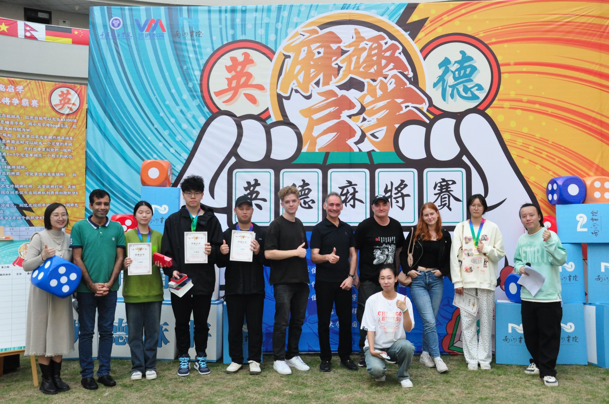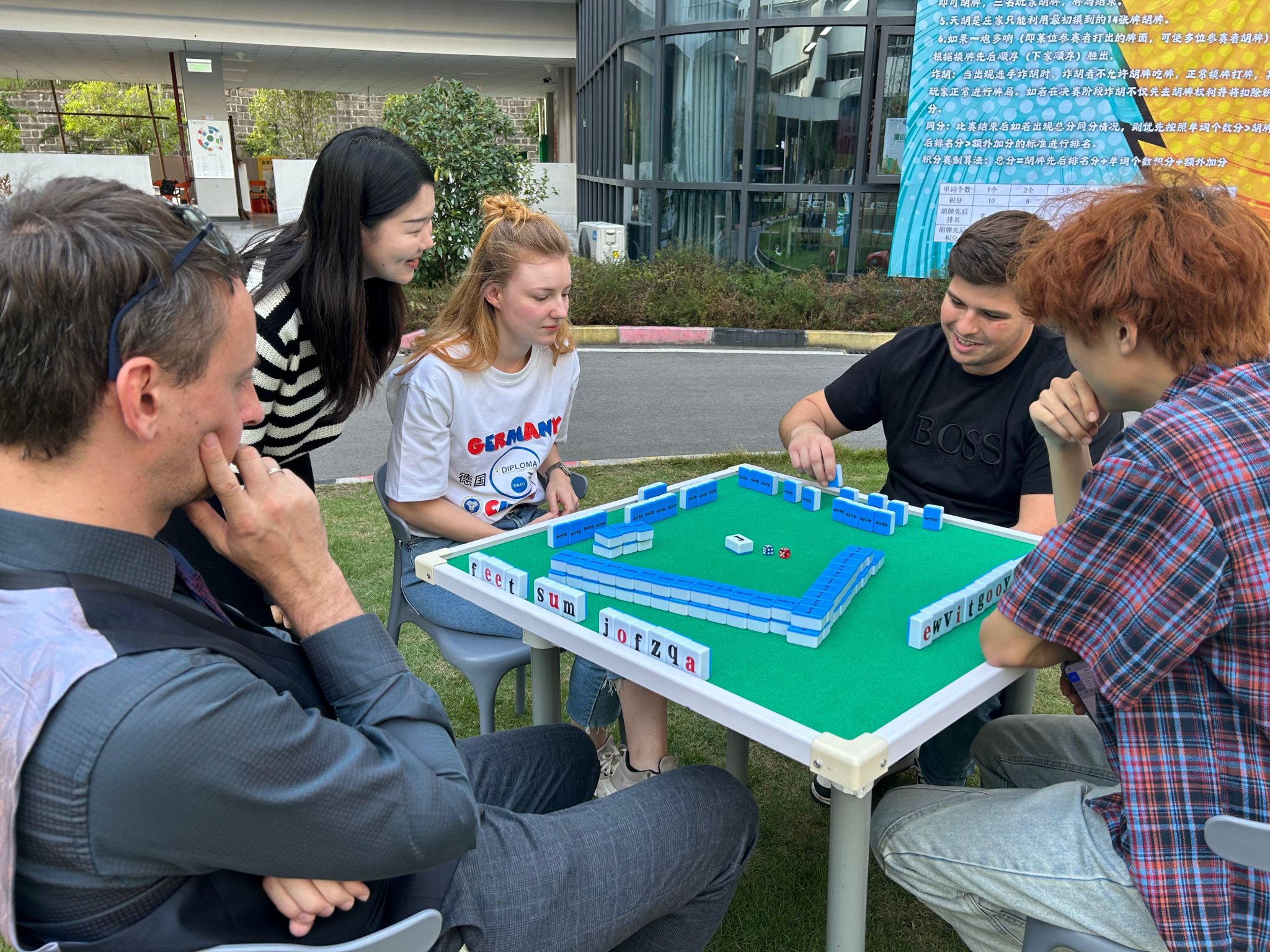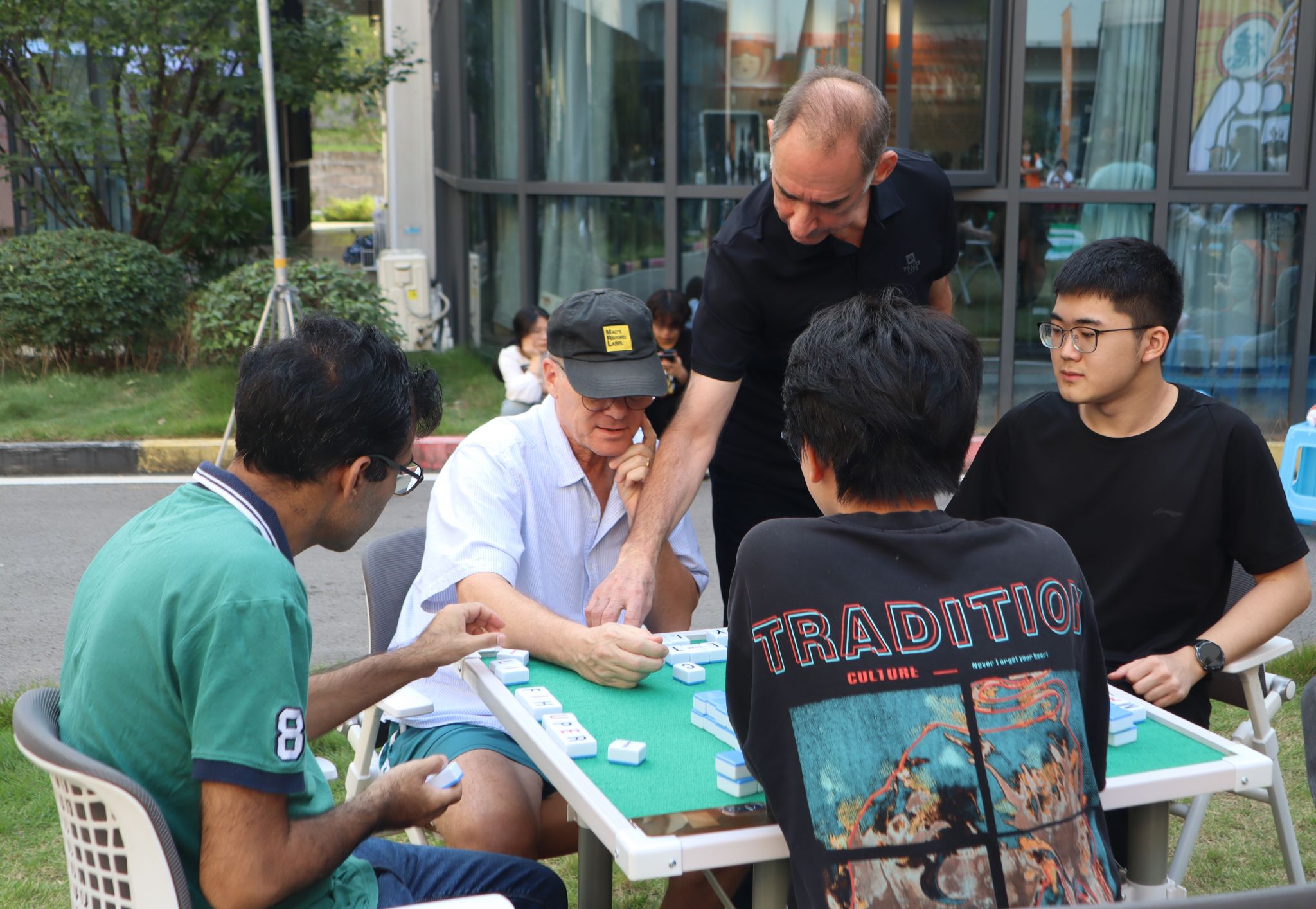 为进一步营造南湖书院国际化氛围,搭建朋辈互助趣味学习圈层,实现书院与学子共成长。10月23日下午,南湖书院携手外国语学院、国际交流与合作处、德国工程学院共同开展“麻”趣启学·第三届英德麻将争霸赛,来自各书院的8支队伍与三百余名师生齐聚南湖书院中庭,和来自德国、巴基斯坦、美国、英国、泰国等国的外教和留学生,共同切磋、共同见证这场趣味竞技,在寓教于乐的活动中强化书院对学子的正向引导与浸润影响。