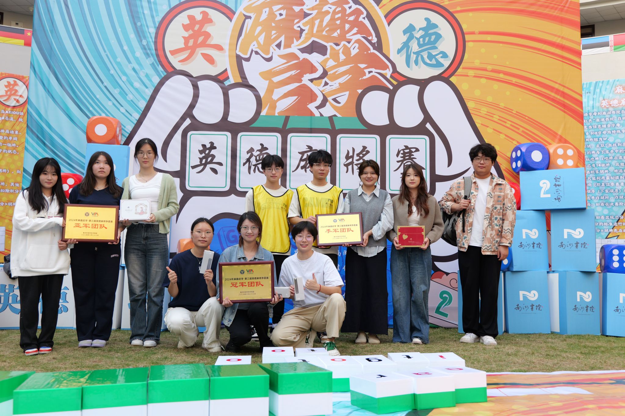 伴随着观众的讨论,战局也进入了白热化。随着最后一声“胡啦!”词神诞生!选手们牌技与运气齐飞、步步为营,勾勒出“寻佳趣、增友谊、健身心、享其乐”的生动画面。经过激烈角逐,各项比赛的优胜者终于脱颖而出程锦、李行、冯伟航、马玉娇、王雨璇、唐羽彤及刘双凤、李敏锐、周晓麟同学分列英语赛道和德语赛道冠亚军。