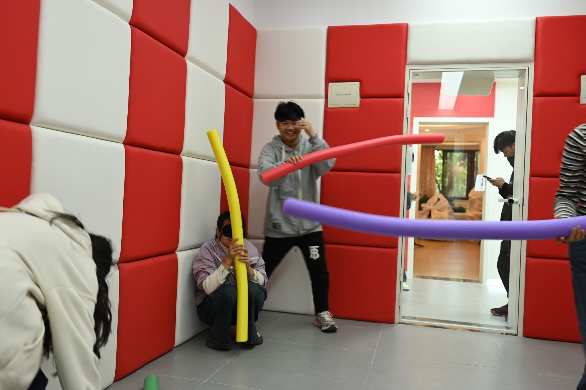 “小山蕉”暖房计划分为心理、阅读、反诈、百匠以及红色精神5个活动板块。在心理疗愈区,学子们将负面情绪缝入吉祥物“小山蕉”,并通过蒙眼敲打海绵棒来释放压力;反诈区则通过模拟骗局测试学子们的反诈能力;百匠手工区,学子们用漆作画,表达创意;红色精神区,熟悉的历史人文与事件变成关键词呈现在学子们眼前;大咖阅读区,学子们猜词拼诗,展现诗词功底,现场充斥着文化和快乐的氛围。