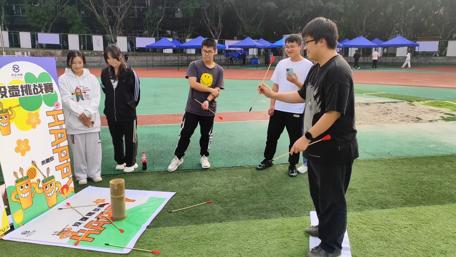 为提升书院学子体育意识与身体素质,弘扬体育精神,天空书院于2024年10月29日下午在重庆移通学院南校区操场开展“投壶挑战赛——第七届书院社区体育文化节子活动”。活动以传统投壶游戏为载体,用趣味性挑战吸引了众多学子积极参与。活动中,同学们或凝神静气,或矫健身姿,将箭矢投入壶中,赢得了阵阵掌声。传统文化的魅力与体育精神的内涵在轻松愉快的氛围里深入人心,进一步激发了书院学子对体育运动的热爱与追求,在书院社区共筑起学子健康快乐的“家”。