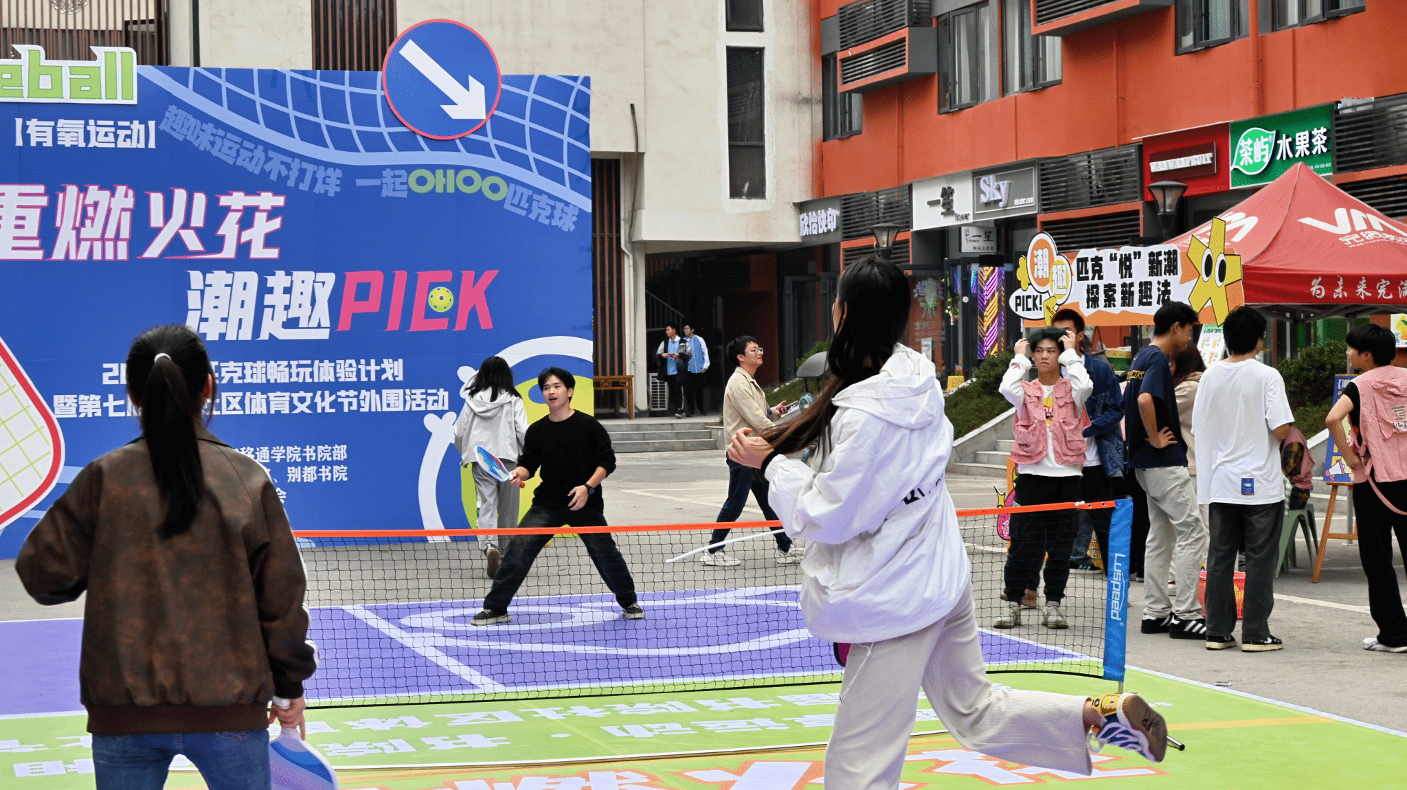 为营造书院社区浓厚体育文化氛围,引导移通学子积极投身全民潮流运动,肆意感受活力感召能量与统筹比赛博弈带来的独特魅力。10月30日15:00,花果书院联合别都书院于在花果书院小广场,开展了“重燃火花,潮趣PICK”——2024年匹克球畅玩体验计划暨第七届书院社区体育文化节外围活动,现场共计200余名师生参与。此次活动以匹克球为媒介,以模仿打卡、投球体验、组队PK等趣味形式开展。将书院社区文化与潮流体育运动相结合,充分激发学生的运动热情与团队协作能力,全面促进学生综合能力素养提升。未来,书院也将持续探索创新特色活动,为学生搭建更多元的互动体验平台。