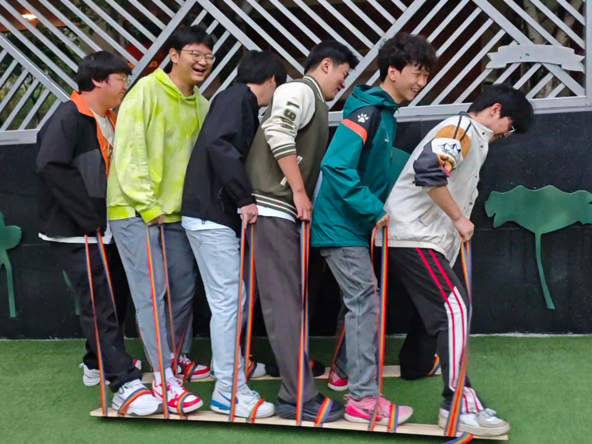 为响应“全民健身”呼吁,丰富校园文化生活,10月25日16:00,爱莲书院特在爱莲小草坪开展了以“悦动秋日,FUN肆出彩”为主题的第七届书院社区体育文化节子活动,活动以团队竞赛+赛道闯关的趣味运动会形式开展,旨在带领移通学子践行竞技体育精神,增强个人团队协作能力,打破校园邻里社交壁垒。本次活动面向全校同学以寝室为单位进行征集报名,参与者现场进行抽签组队,最终组建8支6人队伍。在“同舟共济”“团队金字塔”“珠行万里”等6个关卡的闯关中,各队伍成员齐心协力,共同作战,在耐力、体力与智力的多重考验下,每支队伍的默契度、协调性不断提升,趣味赛道带给他们的欢乐也逐渐弥漫,促使曾经素不相识的邻里友伴在无形之中成为朋友,书院“家”文化在此刻具象化。