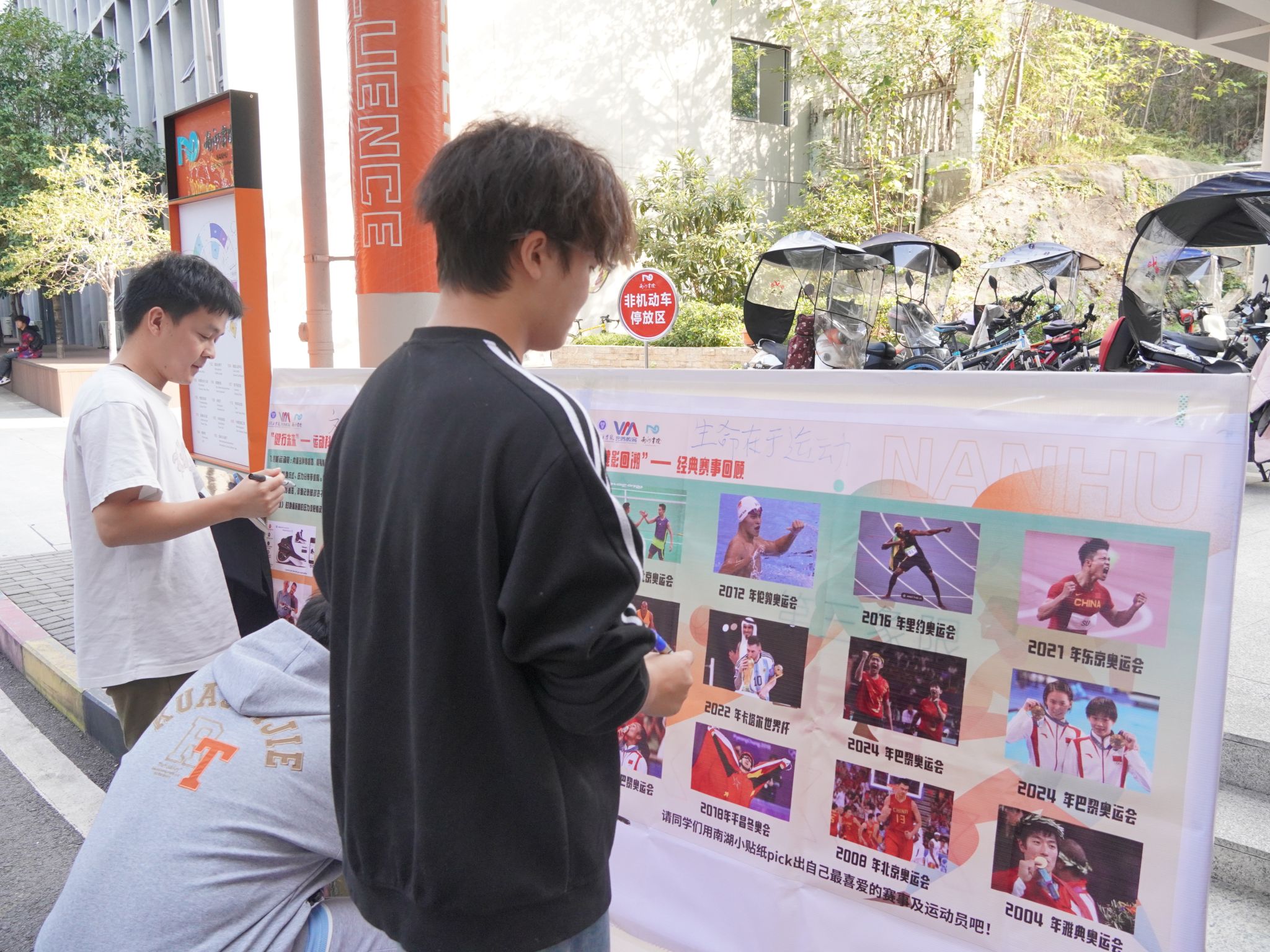 为提升书院学子体育意识与身体素质,弘扬体育精神,促进其综合能力素养提升。南湖书院特于10月28至30日在南湖书院3号楼入口处开启“健影逐梦行”运动知识大闯关活动。此次活动围绕为“健影回溯——经典赛事回顾”和“健行未来——未来运动科技畅想”两个板块展开。同学们共同重温那些震撼世界的体育时刻,从奥运会赛场上的传奇瞬间到世界杯足球赛的经典对决,从田径赛道上的速度较量到篮球场上的巅峰对抗,这些定格时刻不仅仅是图像,更是体育精神的生动写照,激励着每一位学子去追逐梦想,挑战自我。