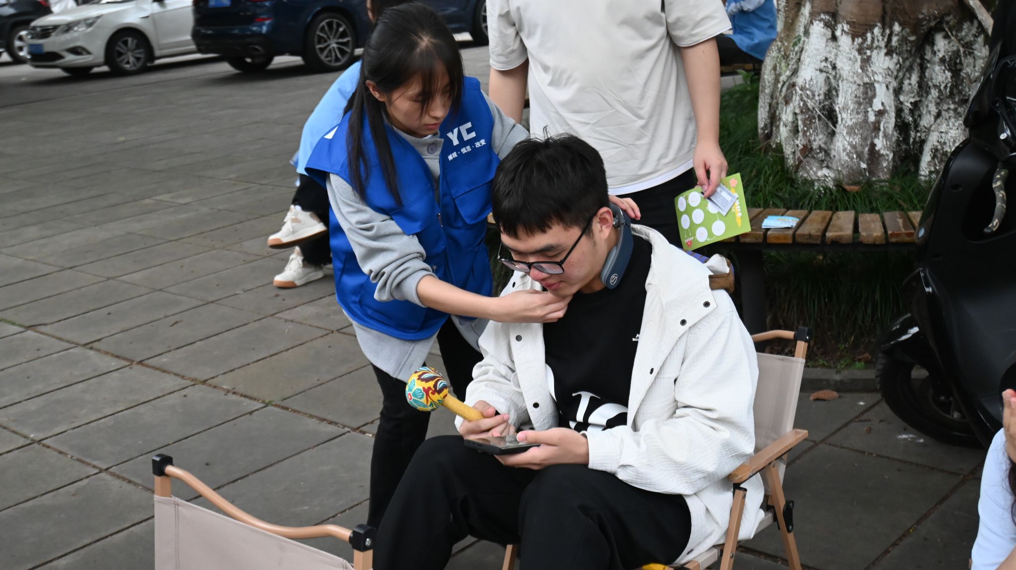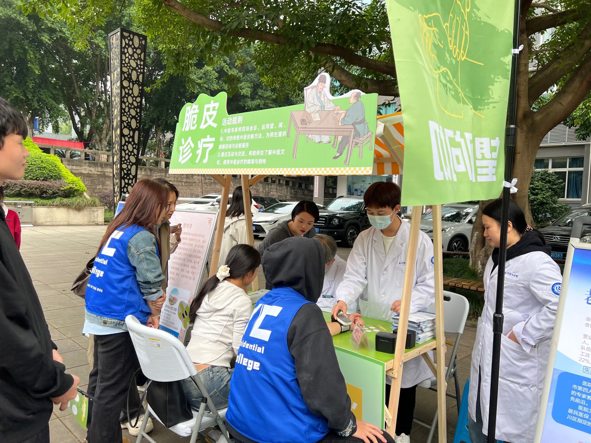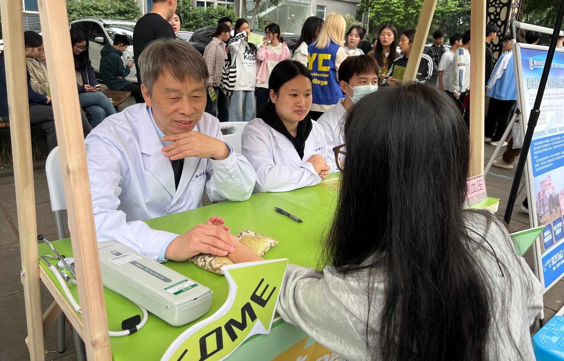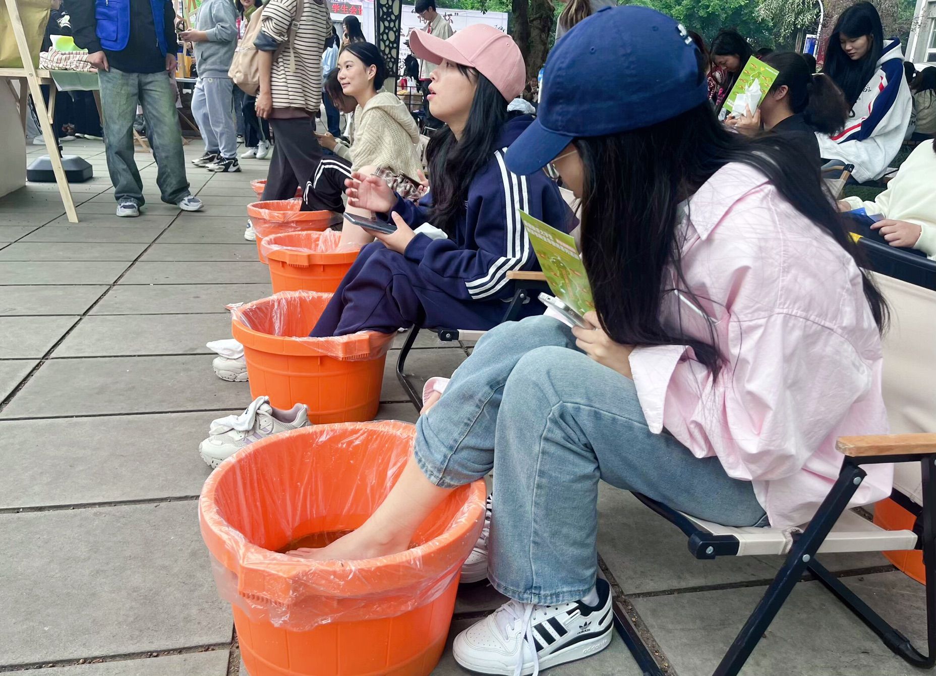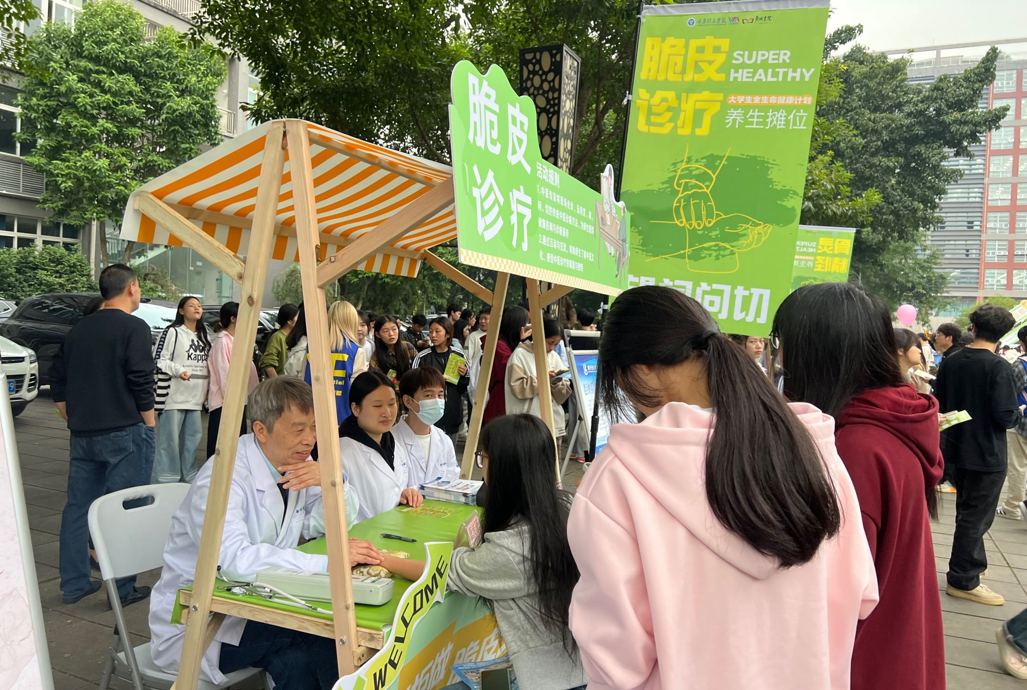 各个摊位点由学生策划和组织,充分发挥了朋辈教育的作用。结合需求设立摊位,“脆皮诊疗”由重庆合川宏仁医院唐传顶主任现场把脉,为同学们提供健康咨询和建议,缓解学习压力和身体疲劳,同时,同学们也能更深入地了解传统文化,增强文化自信。