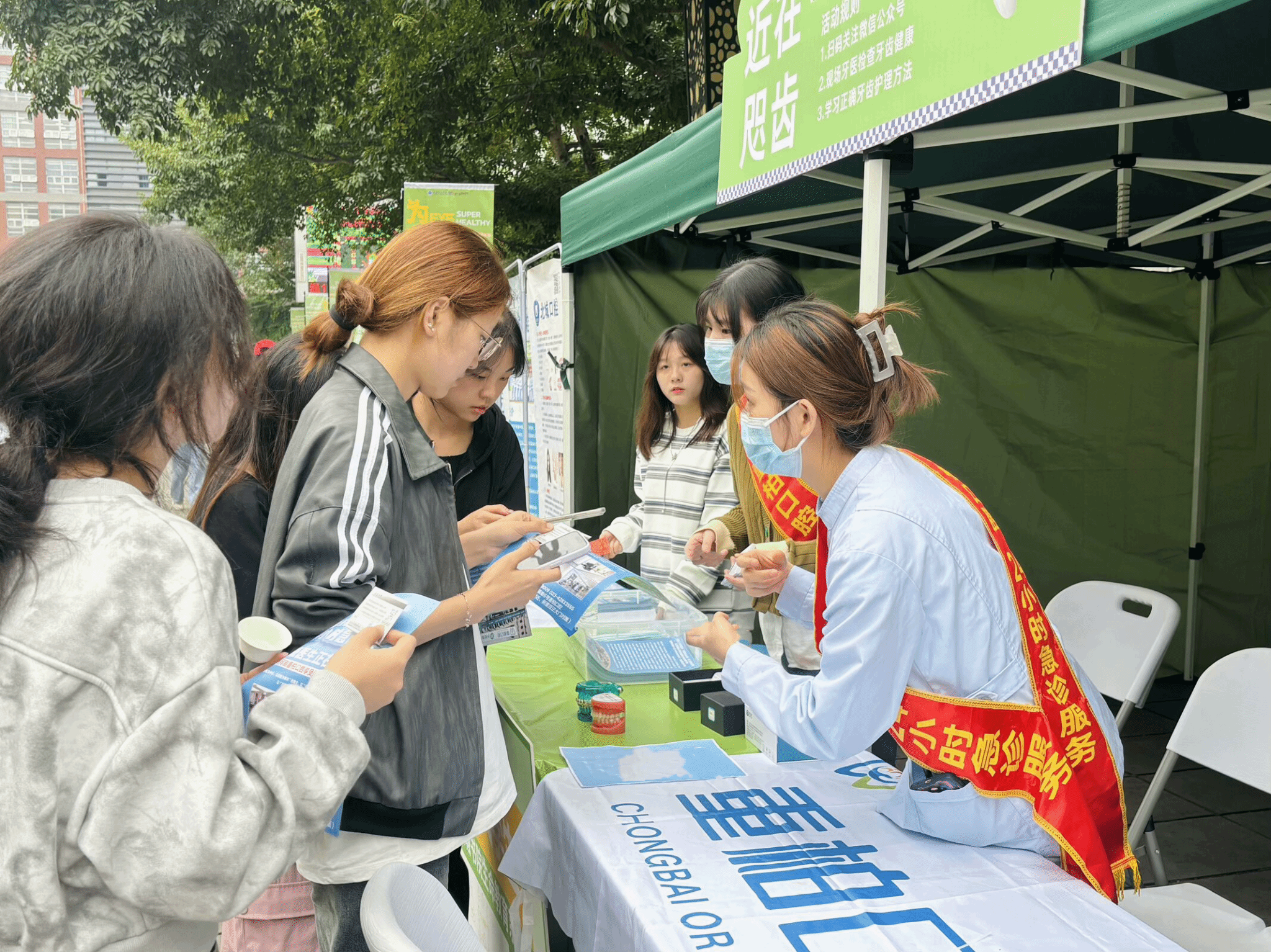 活动联合校外多家企业举办,充分发挥了企业的资源优势和专业优势,得到了重柏口腔、茗扬茶道、天府可乐(重庆)饮品有限公司、合川宏仁医院、镜库眼镜、陈氏理疗中心等多家企业的共创支持,活动开始前由重柏口腔医院赵兴云院长从牙齿角度讲述如何关爱自身、提高健康意识。