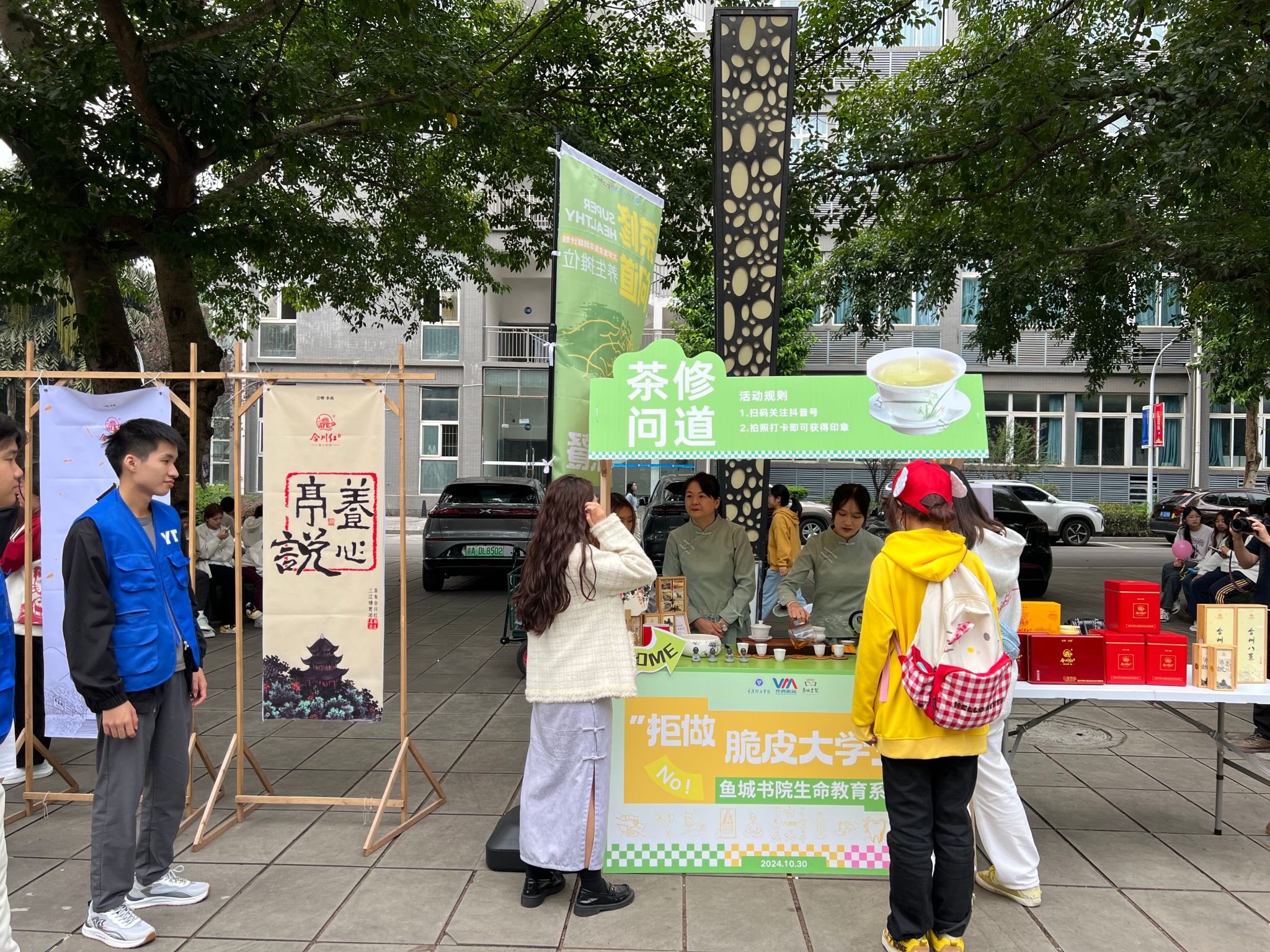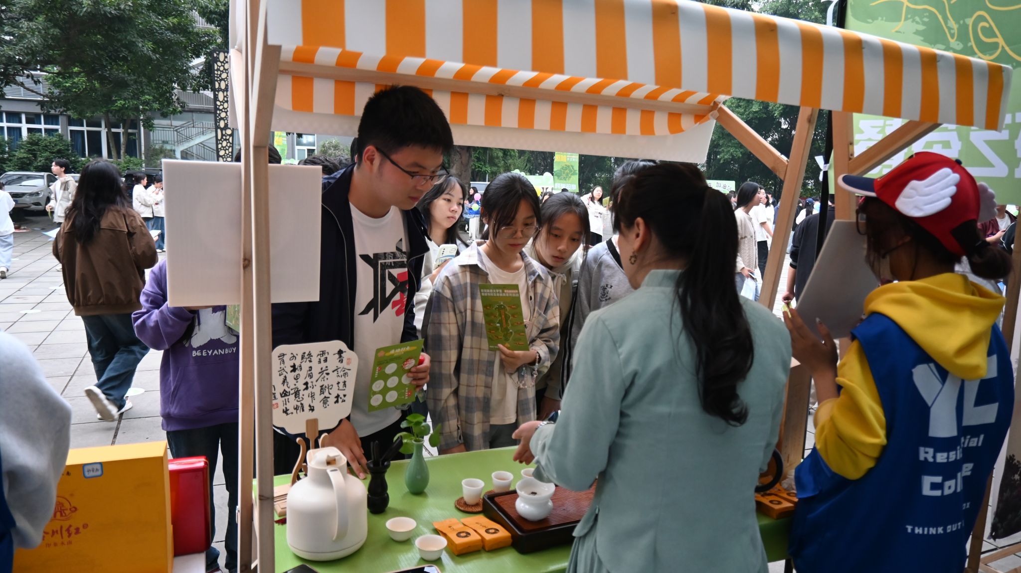 茗扬茶道专业茶艺师现场播茶文化、茶的健康益处、品茶、科普营养均衡的茶餐等多种方式;通过品茶这一种慢节奏的活动给同学们带来精神与心理层面舒缓压力,通过泡茶培养同学们的专注力和耐心,通过了解茶深厚的文化底蕴增强同学们文化与审美的体验。
