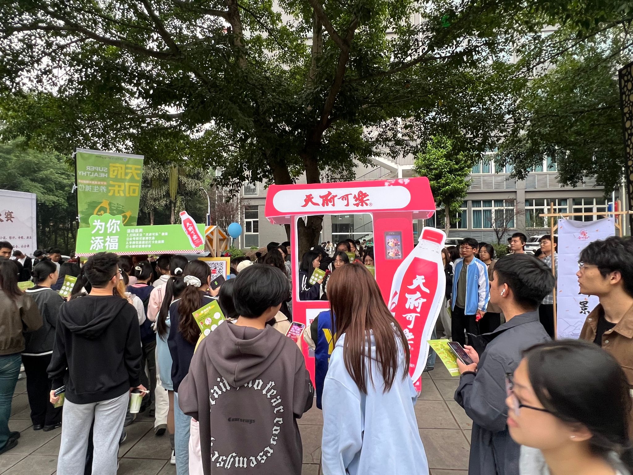 天府可乐作为具有浓厚地域特色的本土品牌,承载着丰富的历史文化记忆。天府可乐中所使用的天然中草药成分,如白芍、当归等,以及这些成分对人体健康的益处。让同学们了解传统中医药文化与现代饮料制作的完美结合,感受传统工艺的魅力。活动当天我们有幸邀请到天府可乐(重庆)饮品有限公司第五代传承人钱黄董事长分享天府可乐的品牌故事、行业动态等,拓宽学生的视野,促进文化交流与分享,为同学们提供与外界交流的机会,并以天府可乐为切入点,延伸同学们健康生活方式的培养。