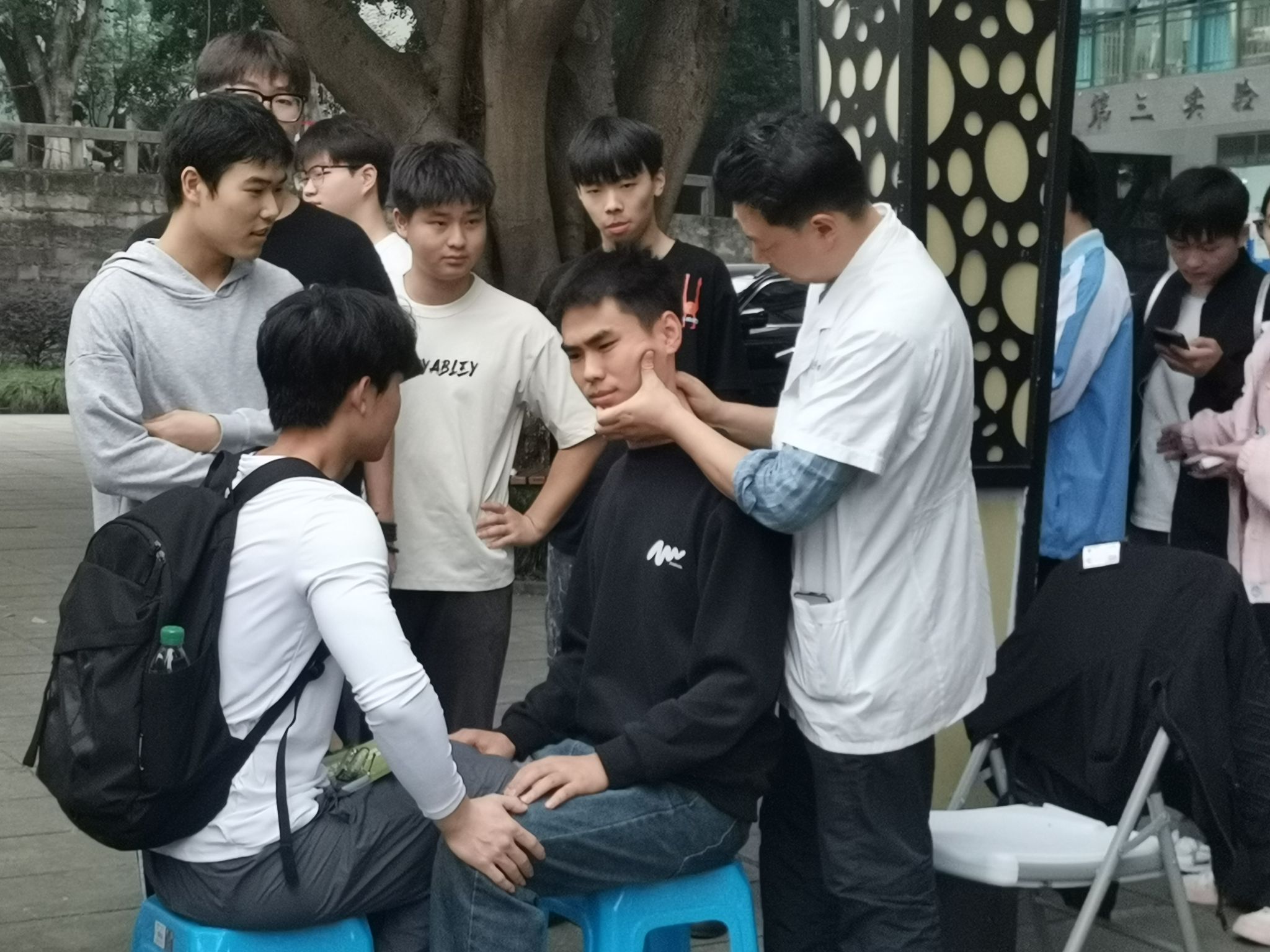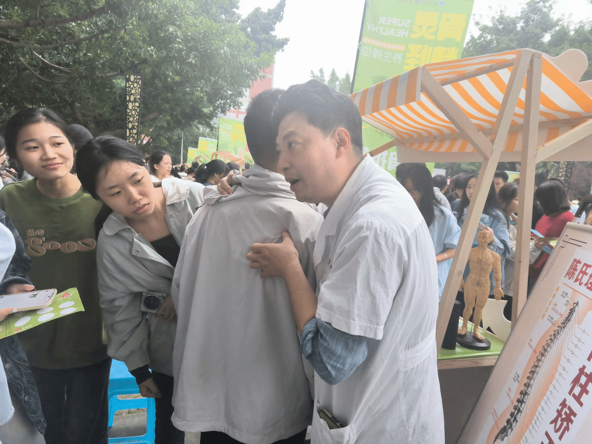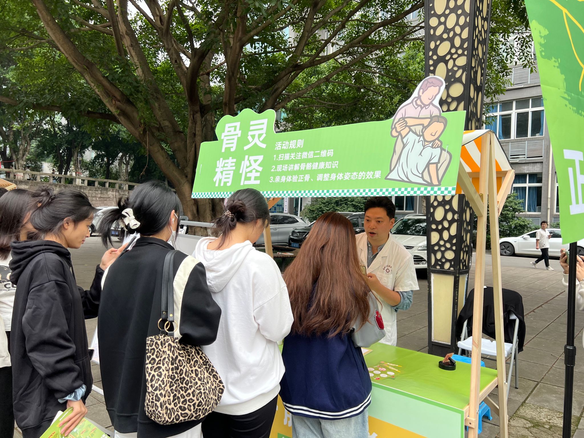正骨摊位点邀请到正骨推拿师陈果根医生进行现场讲解和演示,向同学们普及正骨推拿的基本原理、方法和注意事项,让同学们了解正骨推拿不仅是一种治疗手段,更是一种预防疾病、保持身体健康的方法。帮助学生们及时发现和纠正骨骼问题,提高对骨骼健康的重视,培养自我保健能力。