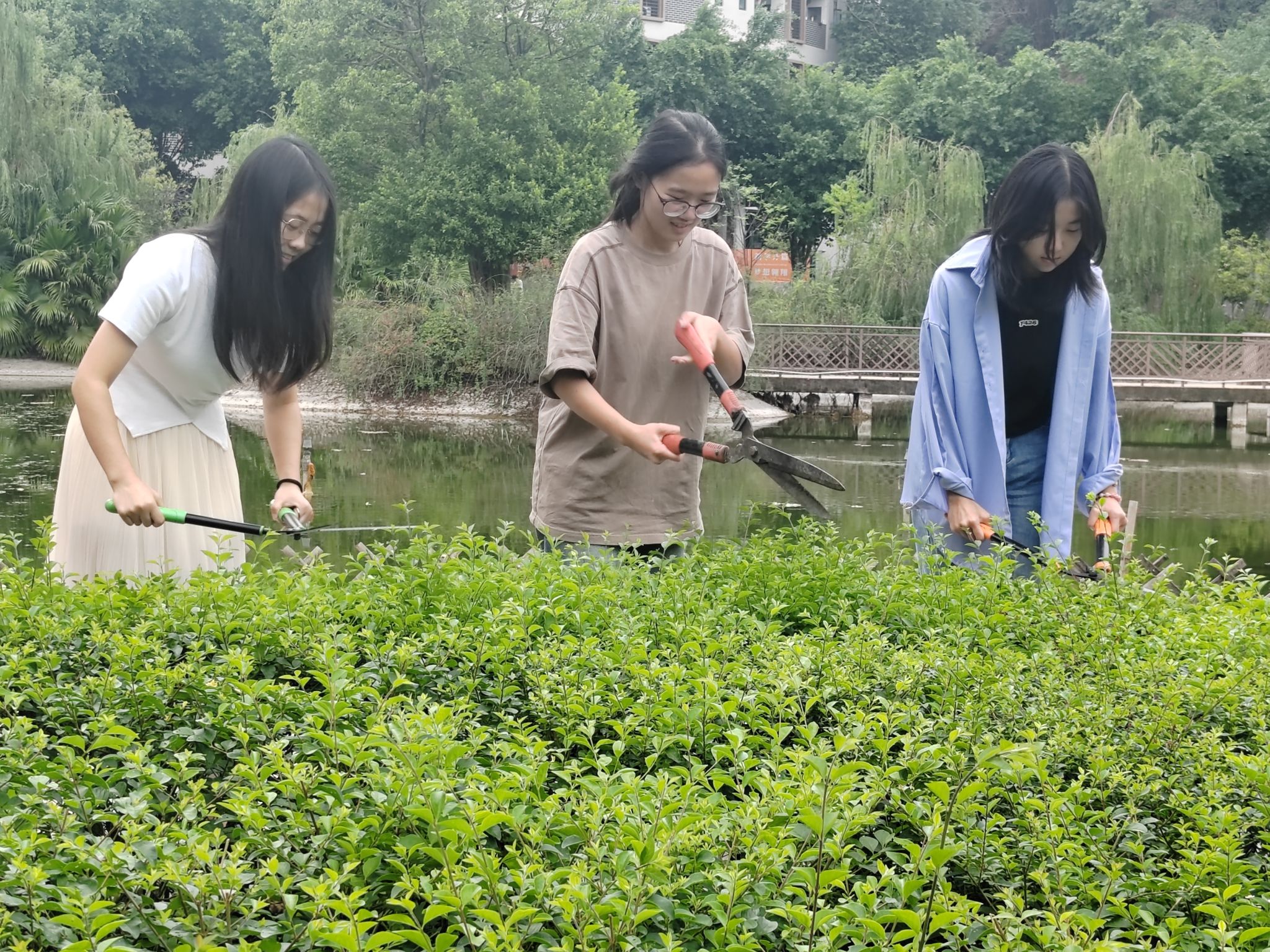 为培育新时代大学生劳动精神,提升劳动素养和劳动技能水平,帮助书院学子拓宽劳动领域视野。10月16日,别都书院联合基建后勤处在双子湖草地顺利开展校园劳动开放日第22期活动,30余名学子在劳动中挥洒汗水,在实践中学习劳动知识,锤炼吃苦耐劳的劳动精神。活动中陈家银老师就灌木的生长习性、修建方法及园艺剪的使用方式进行了分享,这既是一次生活体验,也是一堂生动的劳动教育课。不仅提高了移通学子们对校园环境的重视程度,也培养了学生的劳动意识、劳动技能和吃苦耐劳的精神,为推动校园文明建设,创建绿色和谐的校园环境作出了贡献。