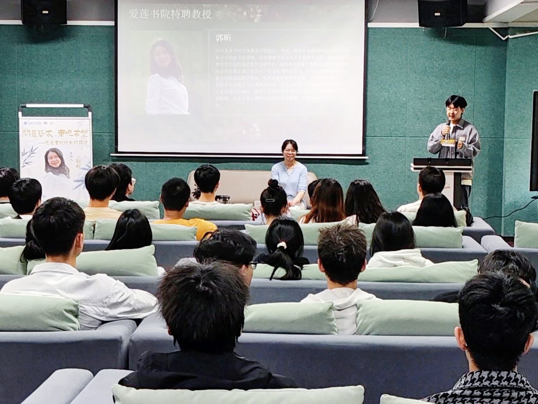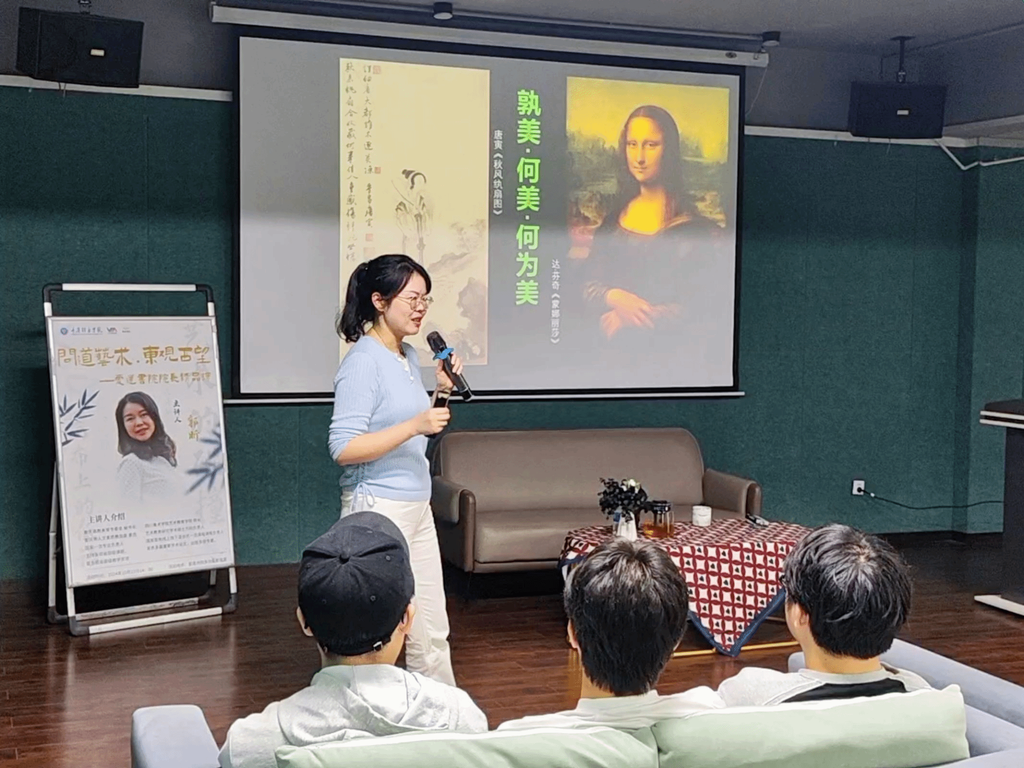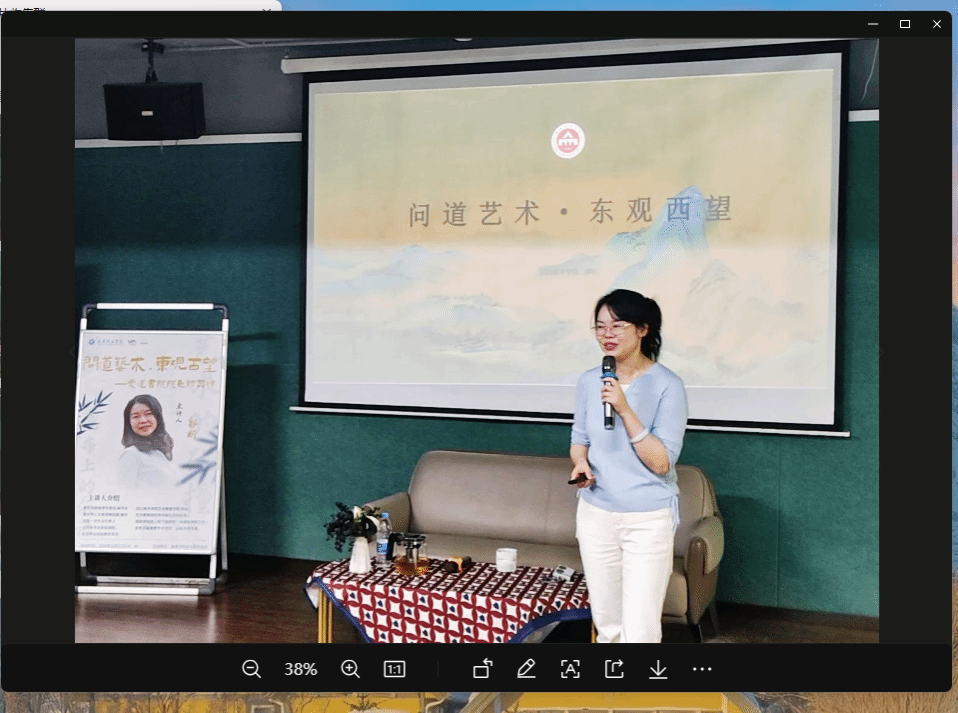 艺术创作承载着跨越时空的共鸣与追寻,也彰显着不同时期和地域文化的交融与共生。为给学生们搭建探寻中西方文化艺术的桥梁,让他们在艺术鉴赏中感受美与美的力量,从更加专业的角度去构筑独属于自己的美学世界。10月23日14:00,爱莲书院特邀特聘教授郭昕开展了本学期第一场名誉院长精品课。本次课程以“问道艺术,东观西望”为主题,围绕东西方绘画艺术的对比分析展开,以理论讲解+互动问答的方式引导学生从感知东西方艺术差异到认知差异背后的历史背景和文化底蕴,从而让他们更加深入地理解艺术创作背后的文化内涵和情感表达。在本次课程中,郭昕教授以中西知名画作为支撑,带领同学们由浅入深地探究、解答关于“孰美?”到“何美?”,再到“何为美?”的三连问,让他们在多角度地分析经典艺术创作的过程中不断思考、体悟美的境界、美的精神,从而拓宽自身美学视野,提升个人美学鉴赏力。
