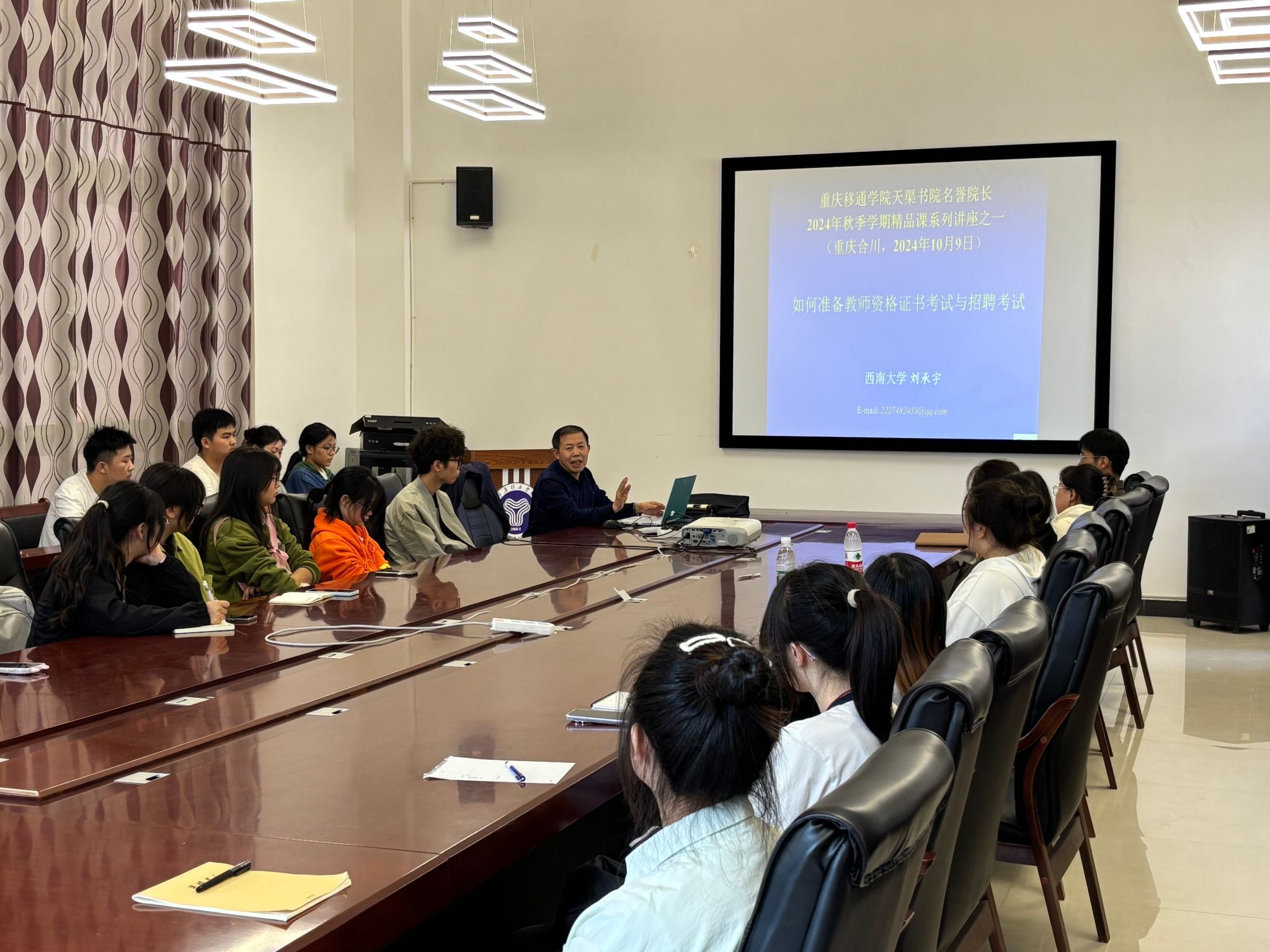 2024年10月9日,天渠书院名誉院长刘承宇教授在梅若书院开展了一场关于外语专业未来发展前景与国家中小学教师资格考试(NTCE)备考方向的讲座。刘教授深入剖析了外语专业的三大未来趋势,包括其作为学术研究对象的独特价值、国民教育中外语教师的需求增长,以及高端翻译人才的培养方向。他特别指出,翻译工作者不仅要追求精准翻译,更要致力于传统文化的弘扬。此外,刘教授还介绍了新专业区域国别学,并提供了外语专业新的就业方向——海外利益保护师。讲座最后,刘教授分析了教师资格考试的发展趋势,耐心解答了同学们的职业规划困惑,分享了教育领域的丰富经验和独到见解,为同学们的未来职业发展提供了宝贵建议。