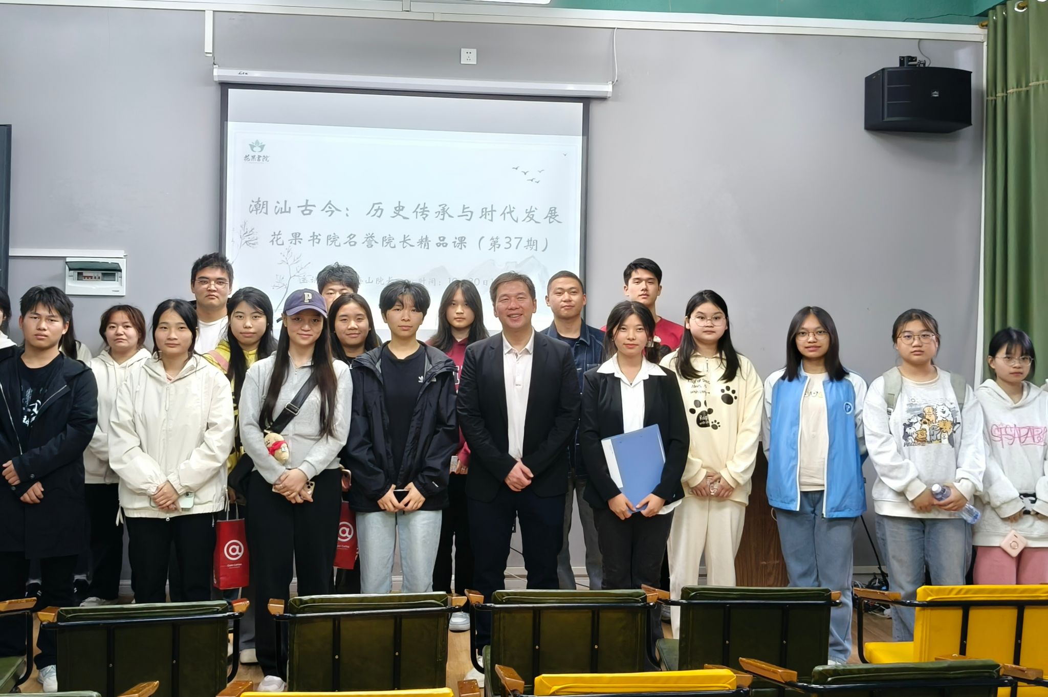本期名誉院长精品课谢海山院长以潮汕文化的起源为切入点,围绕潮汕方言、艺术、饮食等维度,详细阐述了潮汕文化的丰富内涵与深远意义。同时海山院长立足潮汕文化传承面临的现代化挑战,引导现场同学们主动思考传统文化与现代生活的融合之道,鼓励移通学子深入体验、品鉴潮汕文化中的人文精神与艺术魅力,以此提升学生的文学艺术修养,促使同学们在文化感召浸润下汲取成长养分,成为有责任、有魅力的花果人。