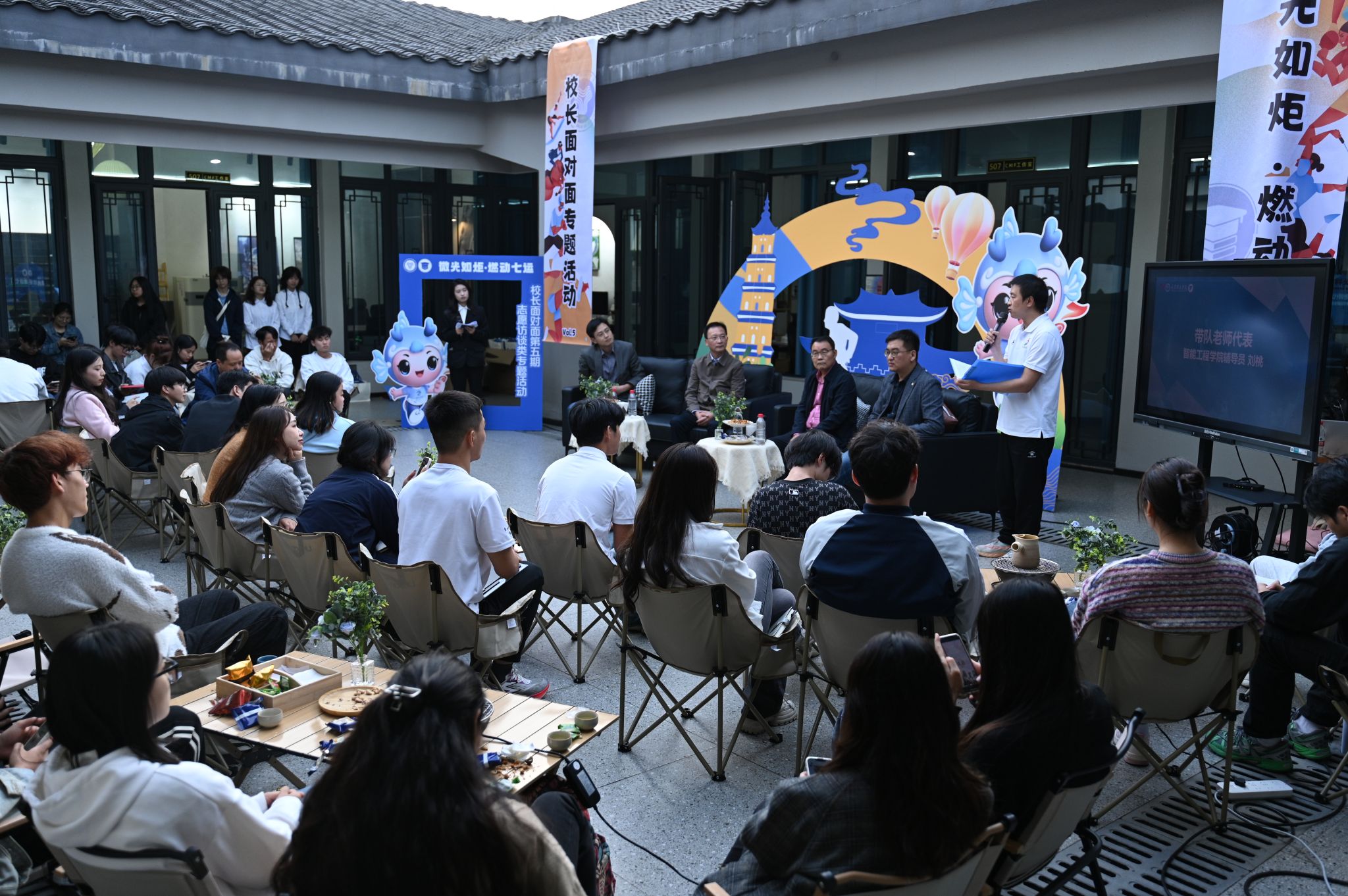 时代在变,志愿服务的项目在变,但奉献、友爱、互助、进步的志愿精神永不过时。志愿服务是我校创新构建的“四位一体双院制+特色课程”人才培养模式中完满教育的重要一环,是学校搭建的创新素质教育平台的重要内容之一。为此,由重庆移通学院书院部与校团委共同举办的“在书院·共话成长”校长面对面专题活动第五期于2024年11月1日在天空书院陀思妥耶夫斯基书店外顺利举行,重庆移通学院校长吕翊、党委书记何先刚、党委副书记 常务副校长周伟、校团委书记 书院部部长穆春江出席本次活动。