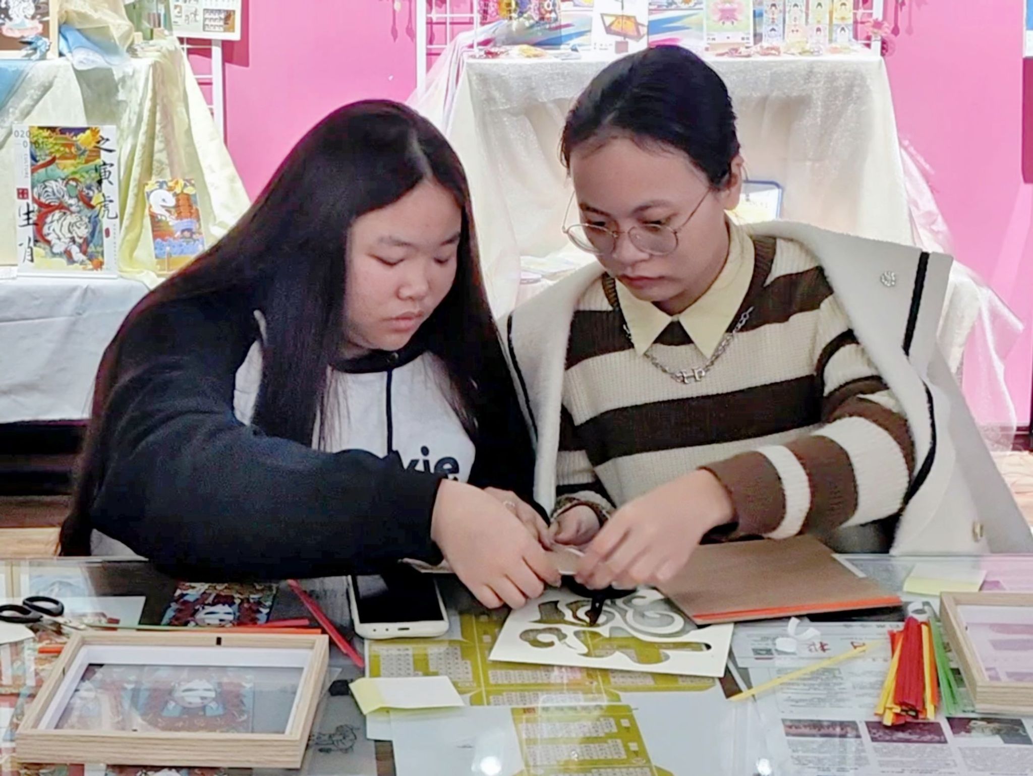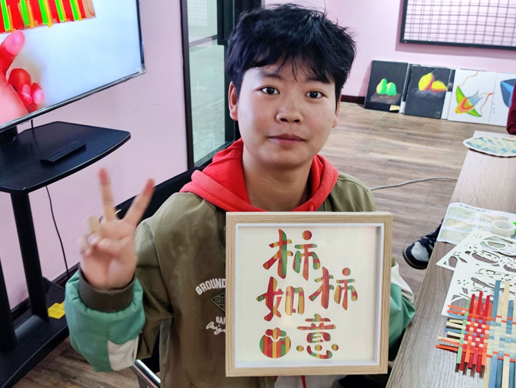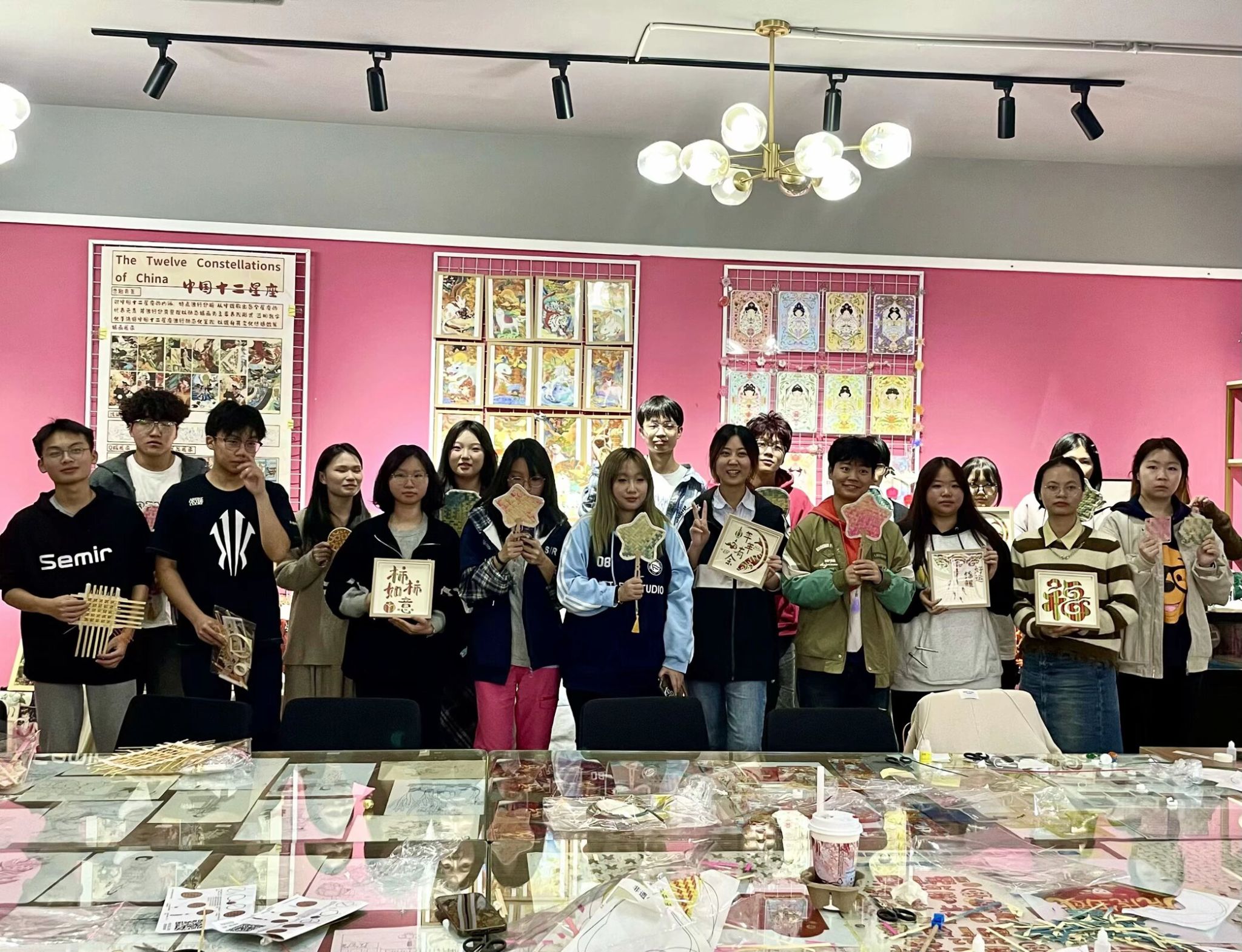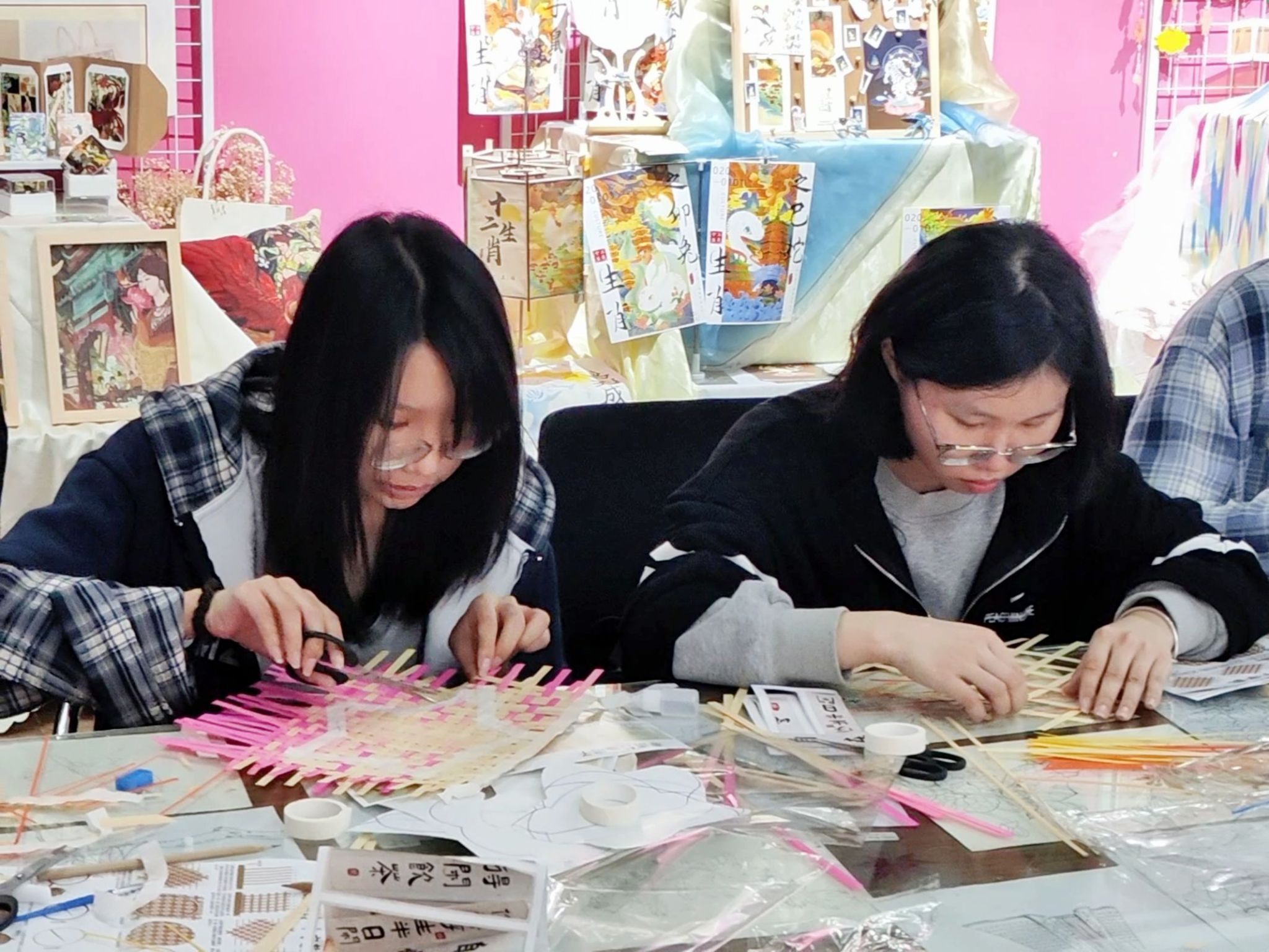 以制物探初心,在亲手制作中更能感受传统技艺的东方智慧和浪漫情怀。本次活动特为参与的每一位学生都准备了竹编工艺品DIY材料包,并由老师指导他们亲自尝试制作竹编画、竹编风铃、竹编扇、竹编隔热垫等手工艺品。看似简单的竹编制品制作过程却蕴含着许多技巧,尽管同学们依照教程学习,但仍遇到了各种挑战,例如平编技法要求竹篾排列整齐,力度均匀,否则会出现缝隙不均或松散的情况;而绞编技法则需要巧妙地交错竹篾,形成复杂的图案,对双手的协调性和节奏感要求极高。在老师的耐心协助下,一件件独特的竹编工艺品也逐渐成形,其中蕴含着独属于书院学子的青春韵味。