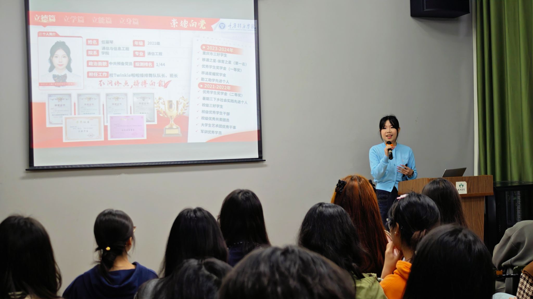 为引导移通学子向榜样学习、向优秀看齐,花果书院积极构建朋辈互助新圈层,旨在帮助书院学子共同学习进步、汲取奋进力量,助力我校学子在完满校园生活中清晰描绘个人成长蓝图、明确追求目标。11月13日13:00,花果书院联合校团委在202多功能活动室举行了以“觅榜样星光,聚前行力量”为主题的《你好·达人》分享会(第3期)暨花果书院学长有话说(第22期),以此激励同学们在完满旅途中不断蜕变,实现自身全面提升。本次活动邀请到来自通信与信息工程学院、南湖书院的第十二季完满达人任丽琴学姐来分享她在求知与实践中脚踏实地、勇往直前的完满历程。
