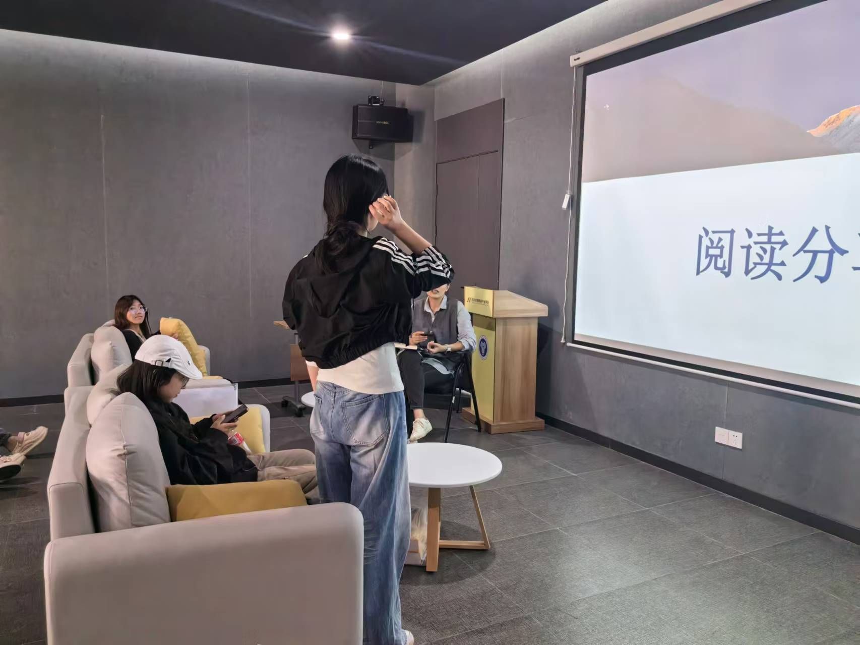书,是人类文明的瑰宝,是历史长河中璀璨的星光。古往今来,无数智者通过书籍传递思想,如同在黑暗中点亮一盏盏明灯。它似一艘航船,带领我们从狭隘的港湾驶向无垠的知识海洋。10月16日下午,外国语学院异科导师吴家家老师带领2022级英语专业4班同学开展了读书分享会。在温馨而充满书香气息的读书分享会上,同学们热情洋溢地分享了各自心爱的书籍,以及那些书籍在他们心中激起的深刻感想。英语4班的江婷婷同学分享了路遥小说《平凡的世界》,江婷婷同学认为这本书给了她很大的精神鼓舞,她觉得人活着是悲惨与幸福是相交的,虽然人生不可能一帆风顺,会有许多挫折与坎坷,但只要有丰富的内心世界,就能战胜困难。