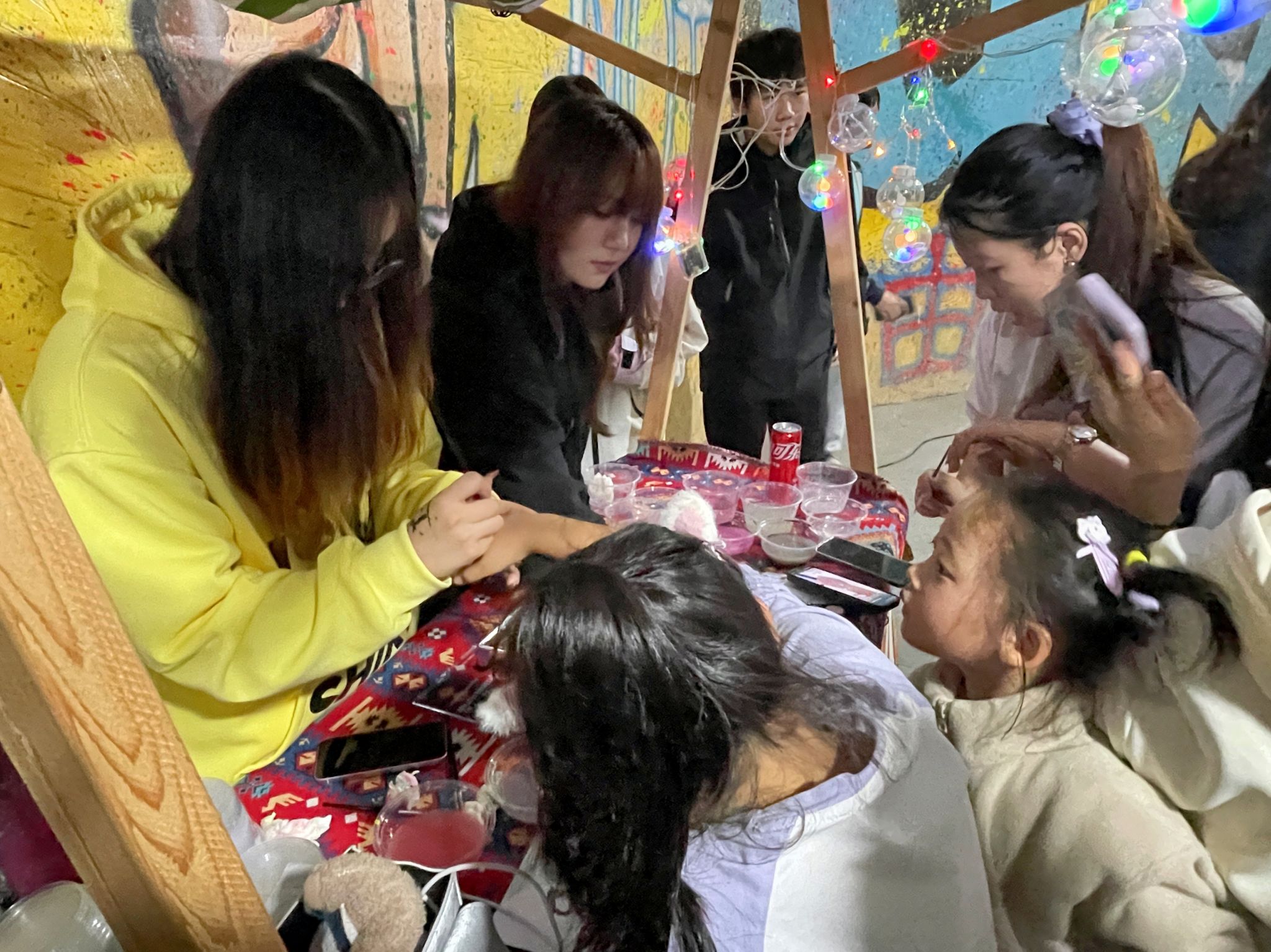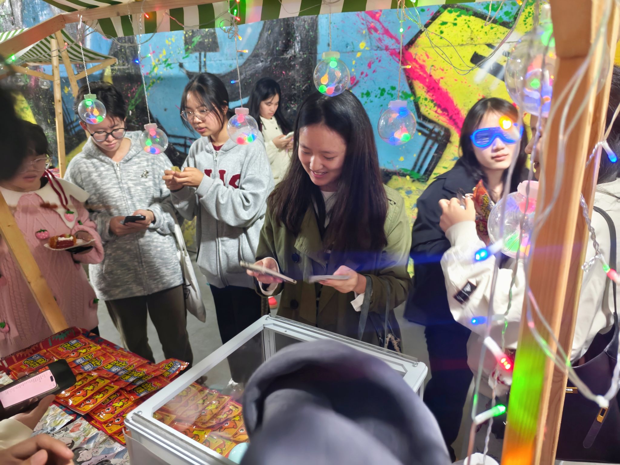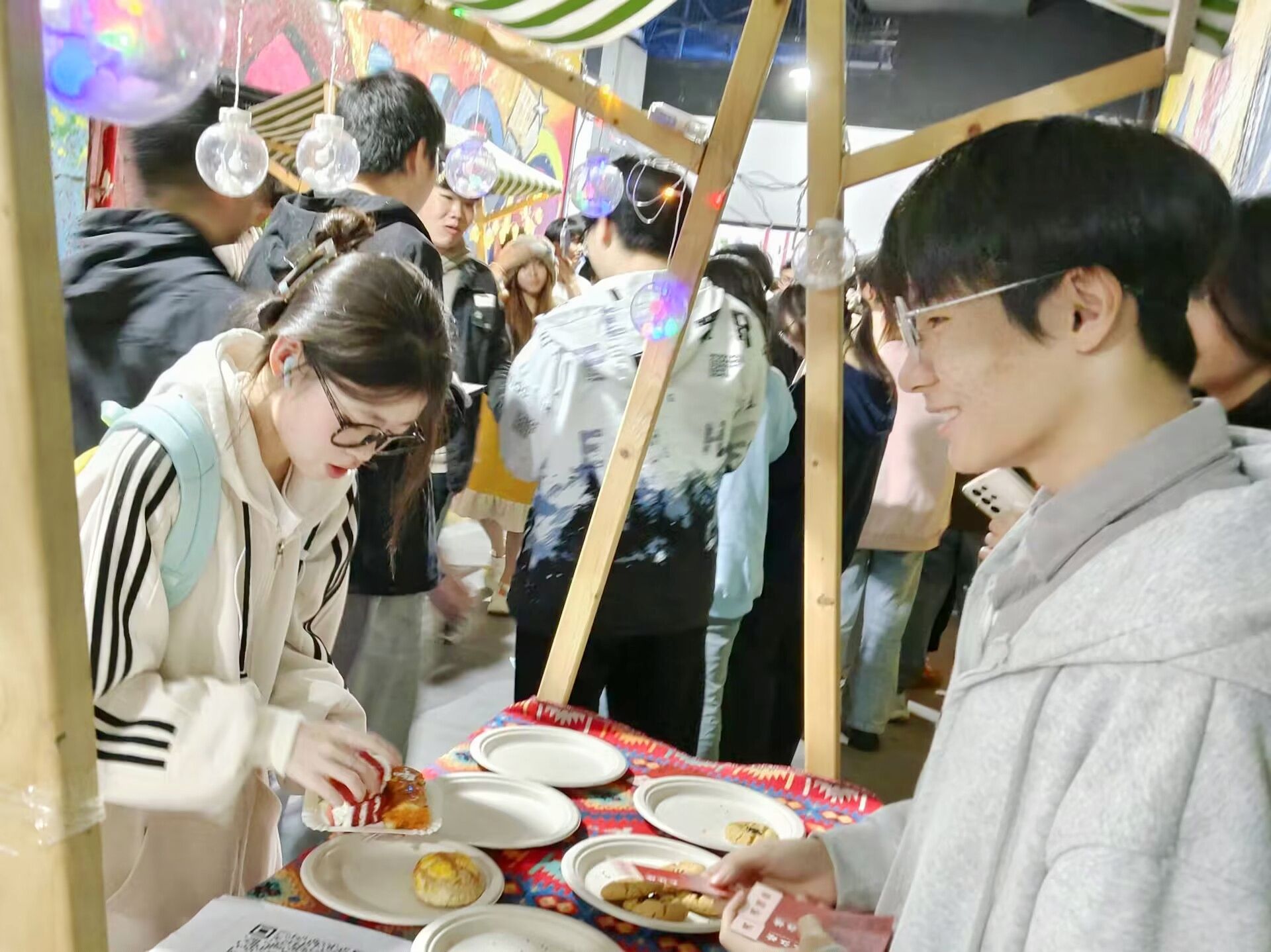每一次师生集体生日会的主角除了寿星,其实还包括在现场的所有人,他们是幸福的见证者,也是书院“家”文化的体验者。为了让来到现场的每一位嘉宾都能参与其中,有所感受,此次生日会特设置了8个周边互动摊位:酷烤时刻、造趣工厂、扭蛋谜趣集……,从美食区到手工DIY区,再到游戏互动区,丰富多元的体验环节让现场师生们在享受欢乐的同时,也能感受到不同文化的魅力。在互动摊位上,师生们可以尽情发挥自己的爱好,参与到各种有趣的游戏和挑战中。不仅丰富了生日会的活动内容,也促进了师生之间的交流与互动,让彼此更加了解和信任。