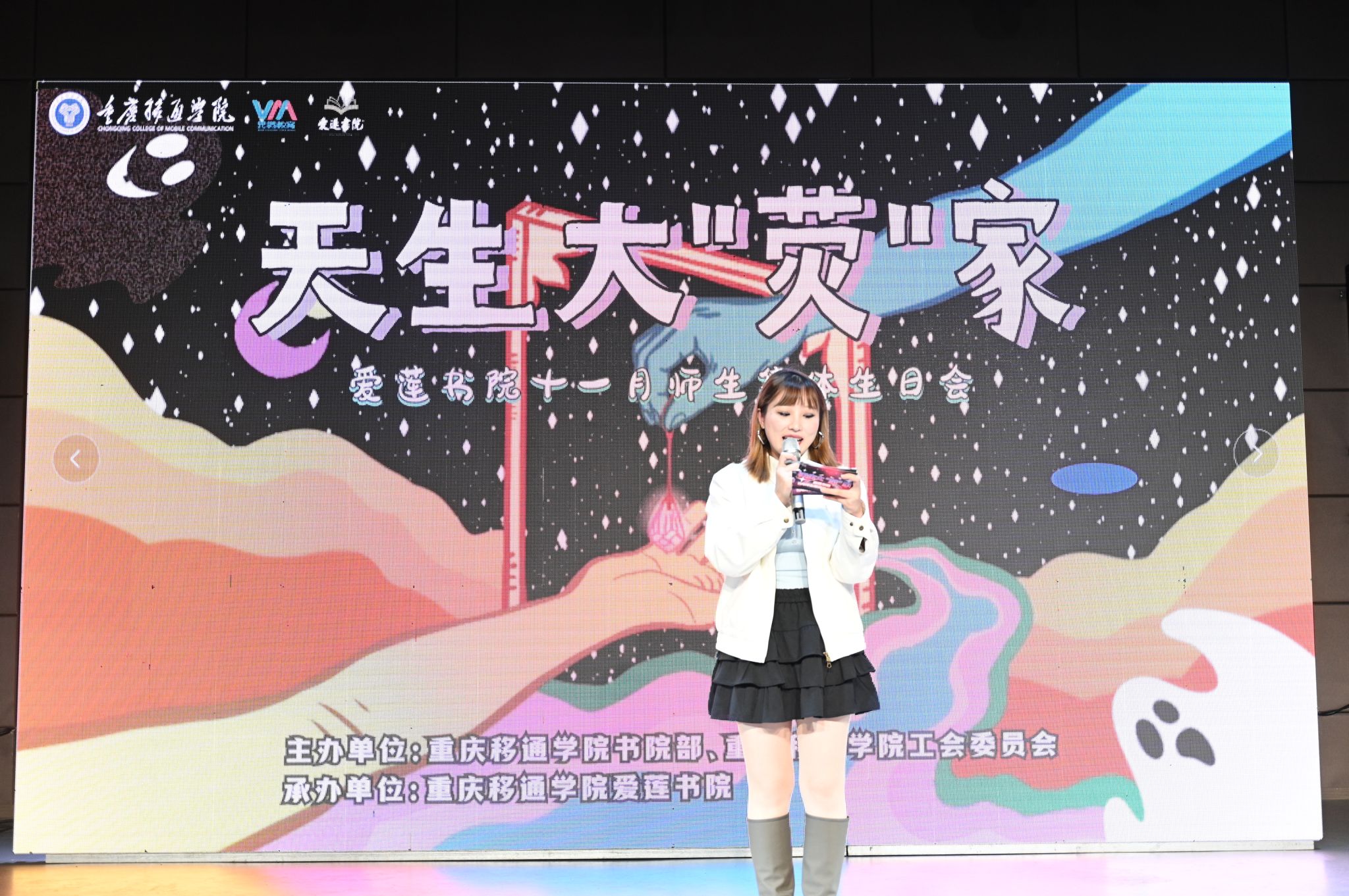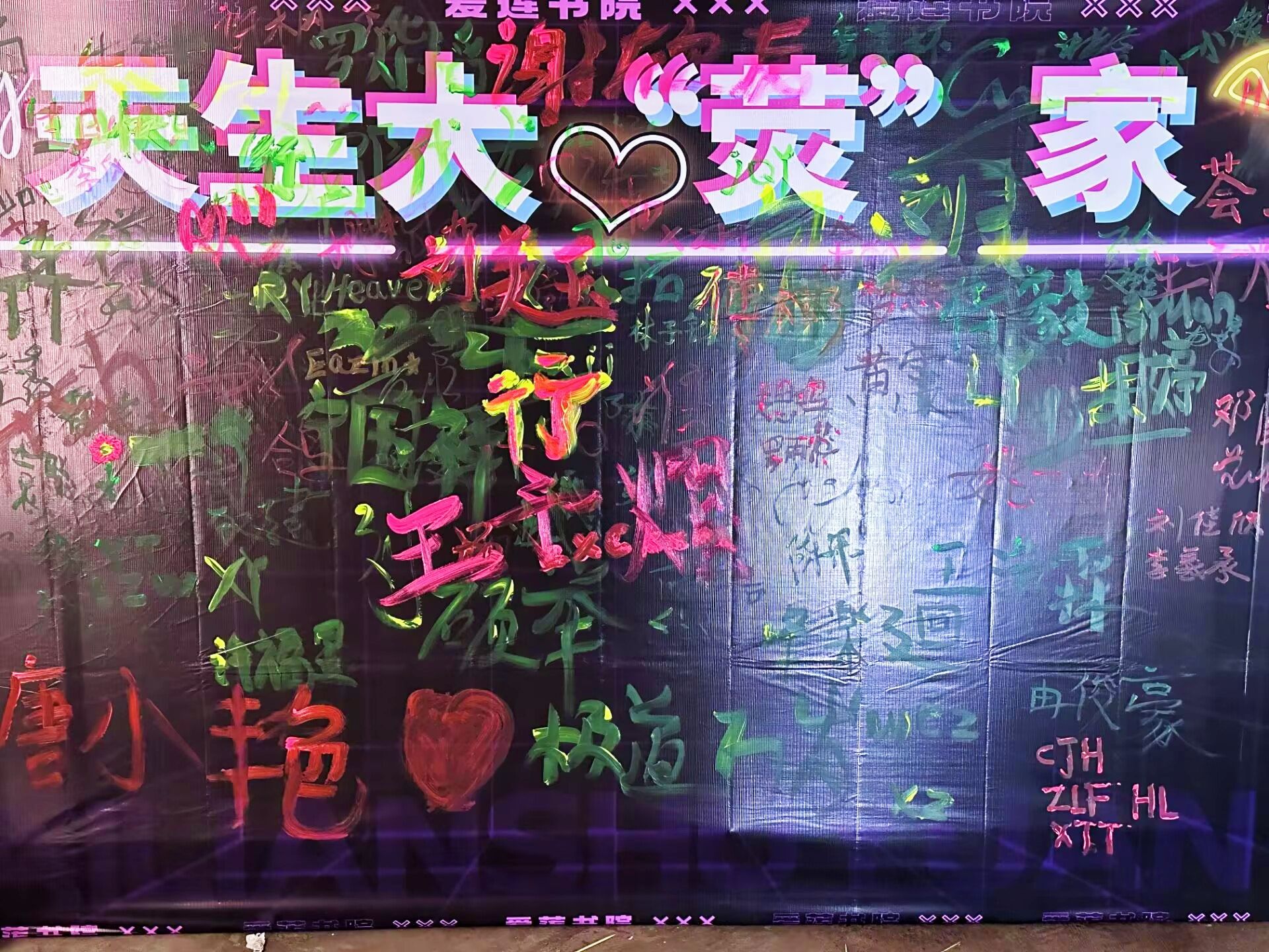 “一站式”学生社区不仅是学生学习、生活与成长的摇篮,更是承载他们情感交付与心灵栖息的港湾。自2021年起,书院部深耕“仪式感教育”,为让学生们在特定时间的特定仪式中增强自我认同感与身份意识,特策划开展每月一次的师生集体生日会,三年时间里,22期生日会的成功举办,每一场的主题、形式创新都深刻诠释着书院“家”的内涵。长期以来,爱莲书院立足美育教育与书院“+”育人模式,开展了“母亲节”特别活动、“中西新年‘家’年华”等系列围绕大学生“仪式感教育”展开的大型活动,在独特的时间节点向书院学子传递独属于书院家的爱与温暖。而在本次十一月师生集体生日会中,爱莲书院用惊喜彩蛋与炫酷氛围加持,结合party文化,融入时下潮流元素,为师生寿星们打造一场以“天生大‘荧’家”为主题的生日派对,给予他们前所未有的生日体验。