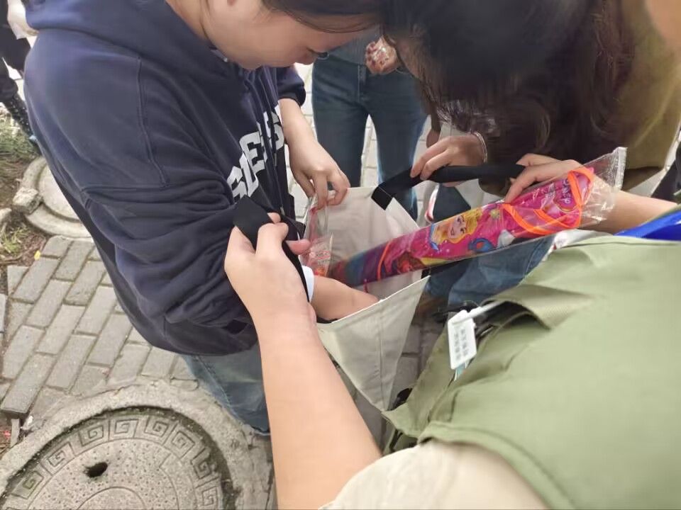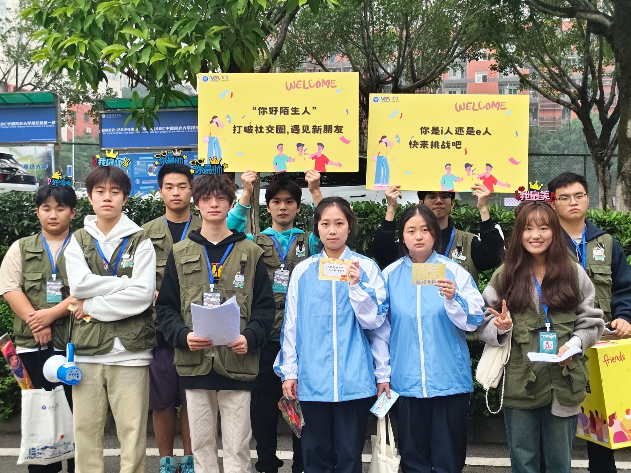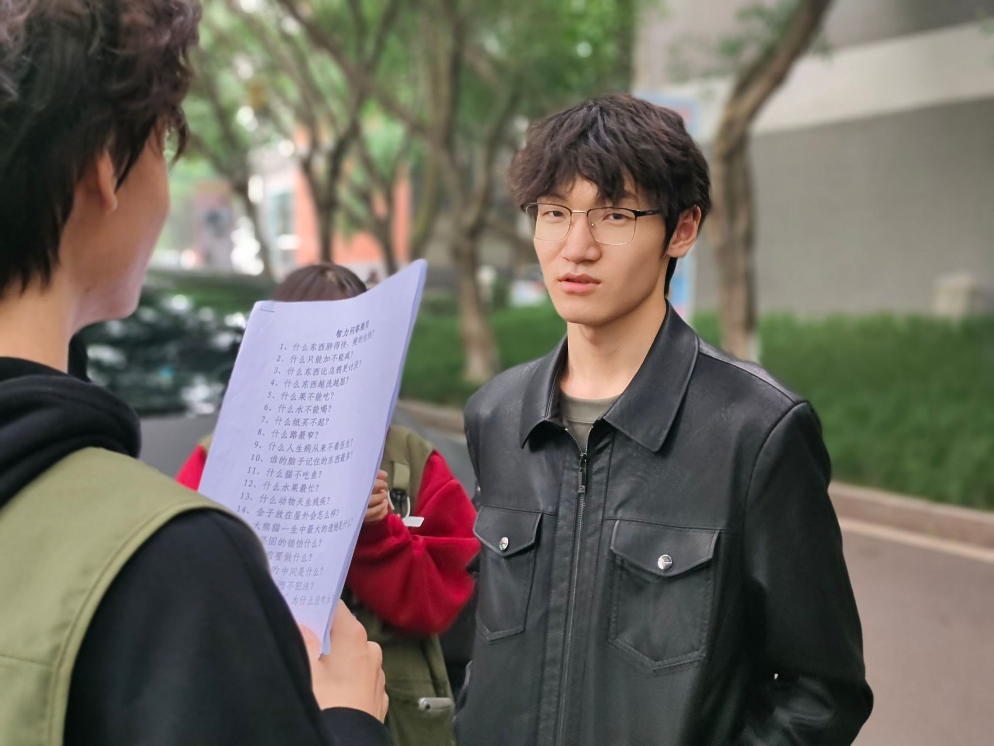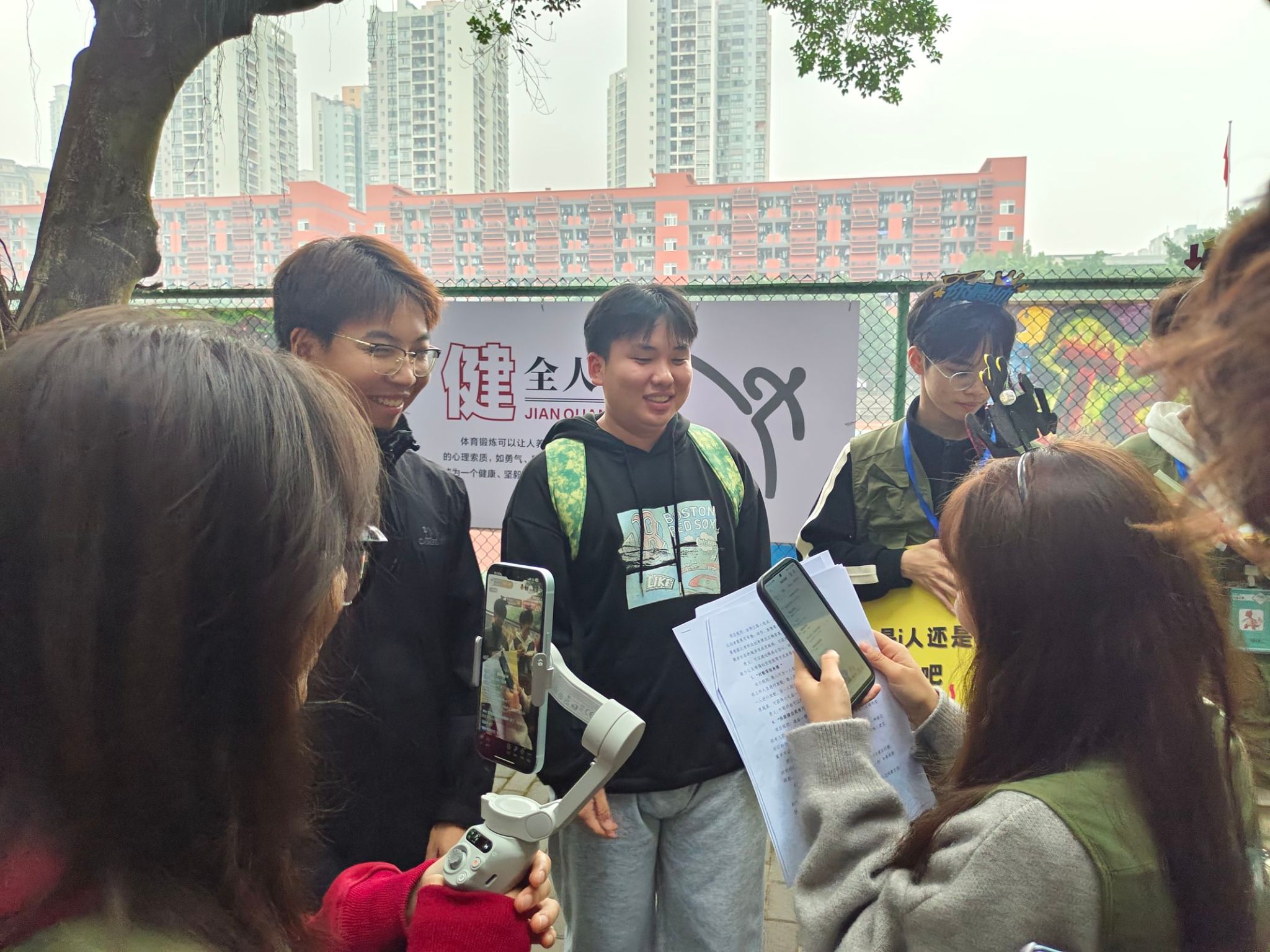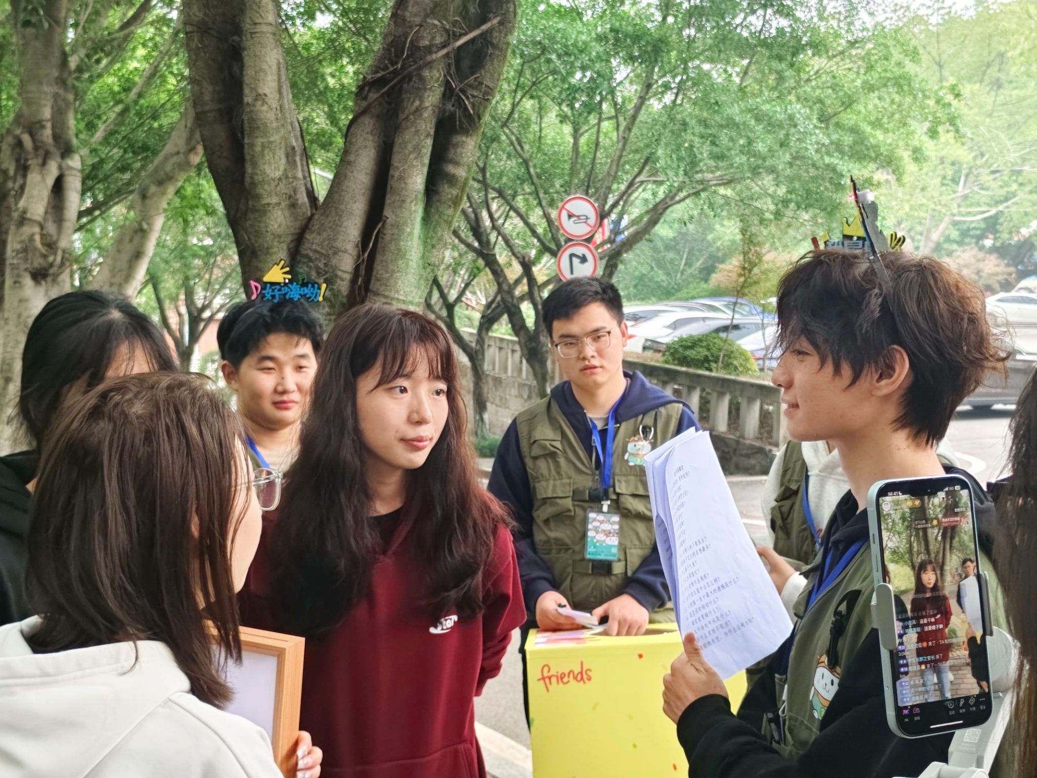 活动伊始,主持人与工作人员略显羞涩,两名主持人紧握主持稿,脑海中反复演练采访流程,力求打破初次采访带来的新奇与紧张感。在充满期待与好奇的氛围中,首场街头采访顺利启动。采访过程井然有序,趣味暗号接龙小游戏仿佛一把钥匙开启了神秘宝藏的大门,帮助主持人迅速拉近了与受访者的距离。紧接着,更多的游戏互动环节让现场氛围高潮迭起,受访的陌生同学成功完成挑战后,也绽放出灿烂的笑容,犹如阳光般明媚。随后,受访的同学从精心准备的礼品中挑选了心仪的小礼物,眼中闪烁着喜悦的光芒。最后,双方合影留念,将这一美好瞬间定格,成为时间长河中一颗璀璨的明珠,为本次采访活动奠定了美好的开端。
