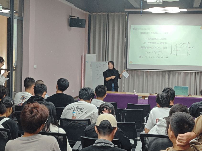 随后,赵珊老师通过实例教学的方式,将级数收敛性应用于日常,让同学们从身边事着手,让数学变得可亲,每一位同学的热情也随之高涨。活动的最后,同学们在张学叶老师的带领下三两合作,共同讨论着PPT上曾经让人觉得晦涩难懂的符号,通过同学们的共同分析讨论,一个个数学难题在同学的齐心协力下层层攻克,对数学的理解也在解题中逐渐加深。