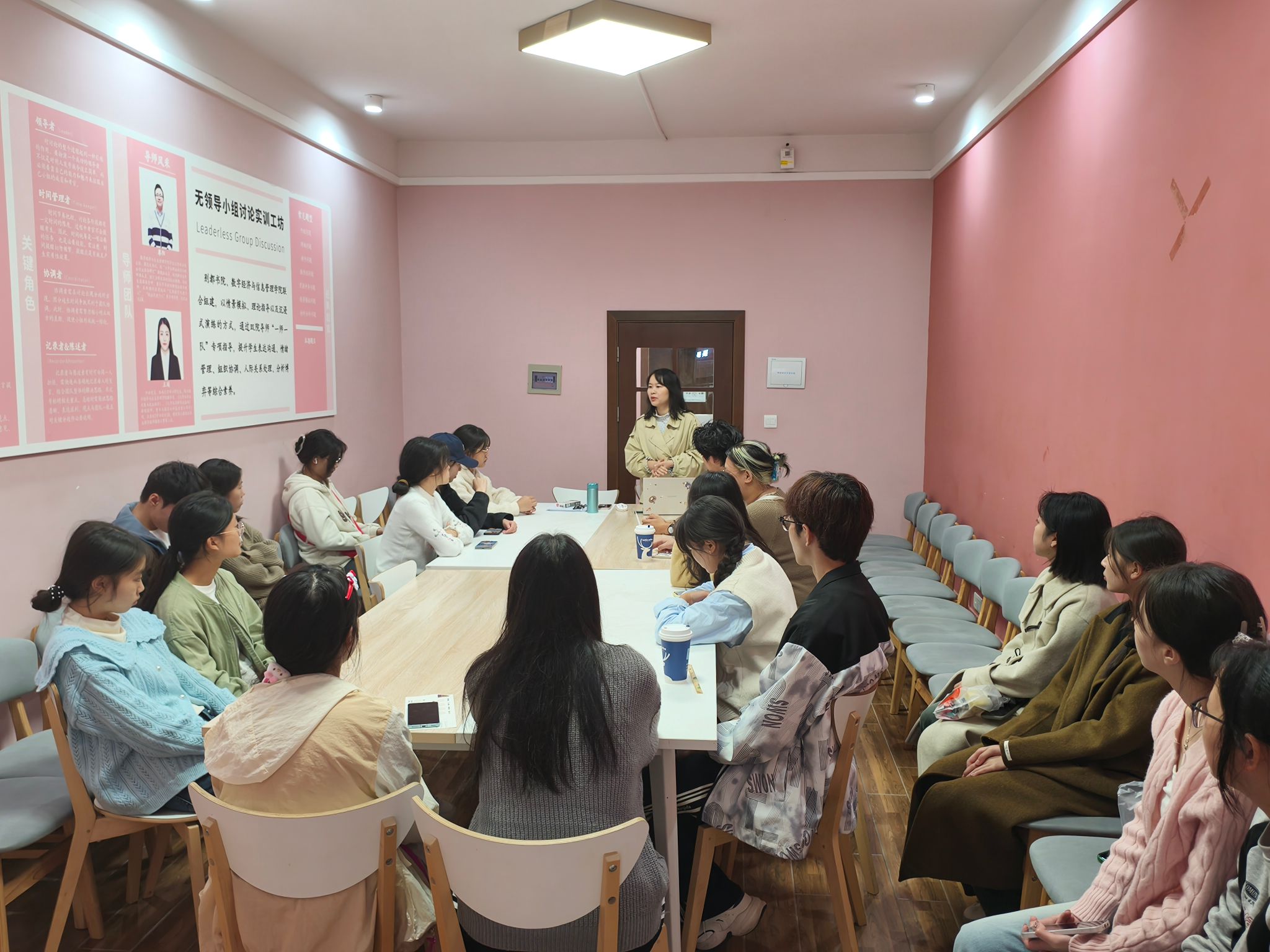 为培养移通学子的逻辑思维,增强随机应变的能力,组织协调能力、口头表达能力、博弈能力、情绪掌控等各方面能力,由别都书院分析统筹培育路径,立足学生成长需求,以情景模拟与理论培训结合的方式进行系统培训。别都书院邀请马莉老师、卢伯年老师于11月13日、20日在就创指导站顺利开展无领导小组讨论实训工坊第69期和第70期。