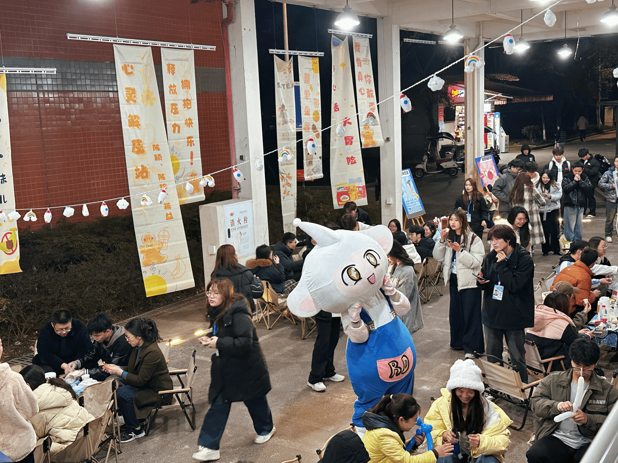 为营造趣味、温馨的书院社区氛围,进一步落实双院融合及异科导师进书院的工作要求,增强师生交流频率,让师生在书院感受“家”的氛围。2024年11月27日19:00,别都书院、通信与信息工程学院、淬炼商学院联合开展的“您有事吗”第二届师生夜市于别都书院四维空间楼下火热开市,200余名学生与20余位书院学生发展导师、异科导师、学院辅导员以朋友的身份进行温馨互动,打破交流屏障,畅游校园“夜市”。
