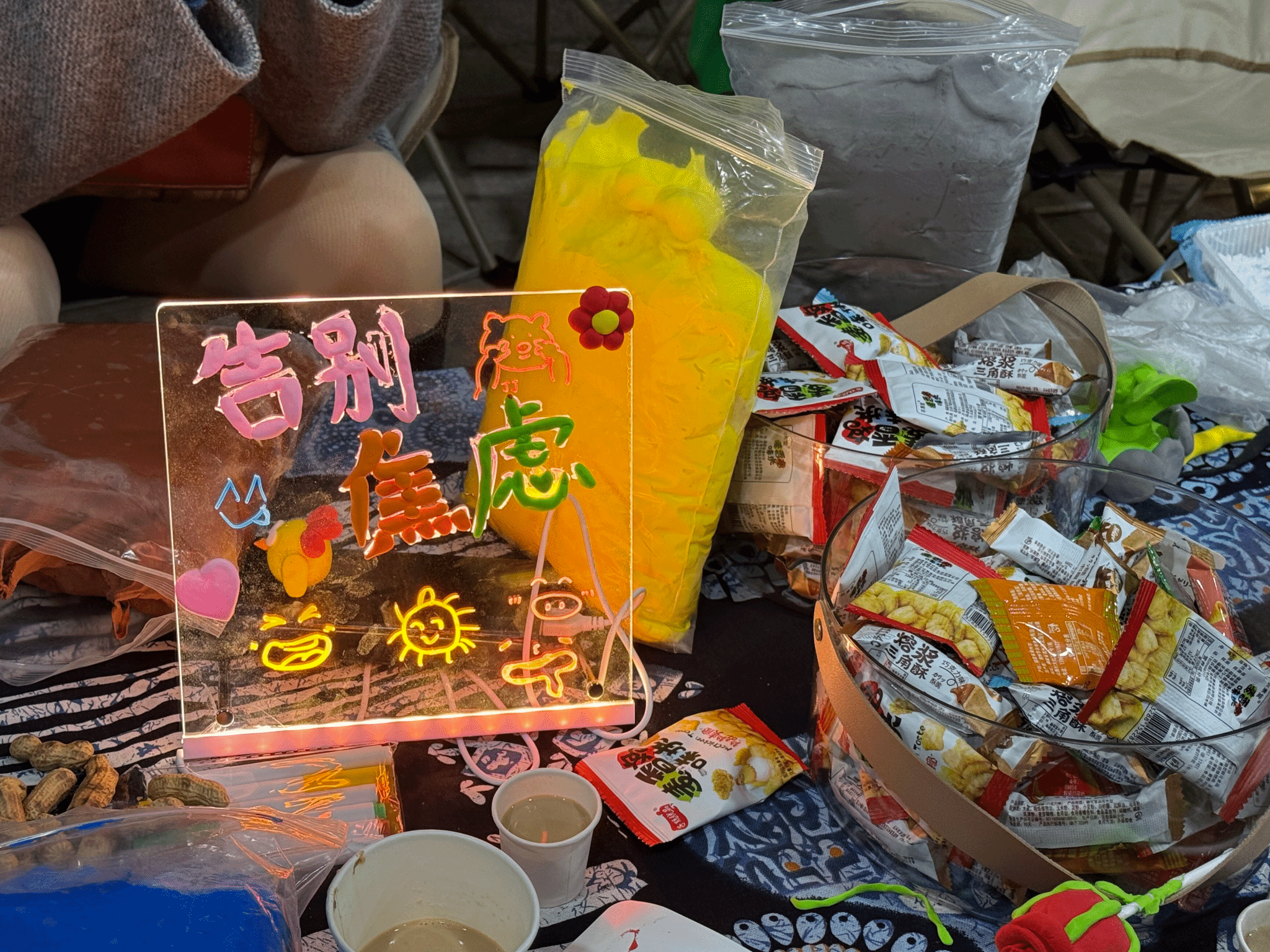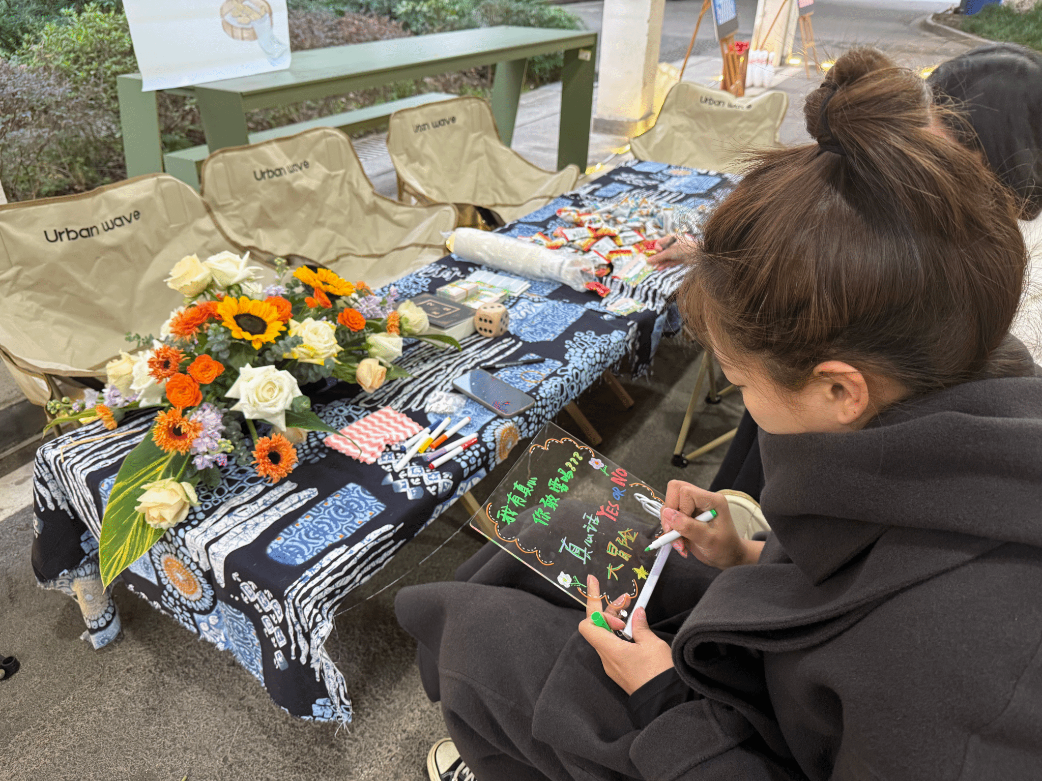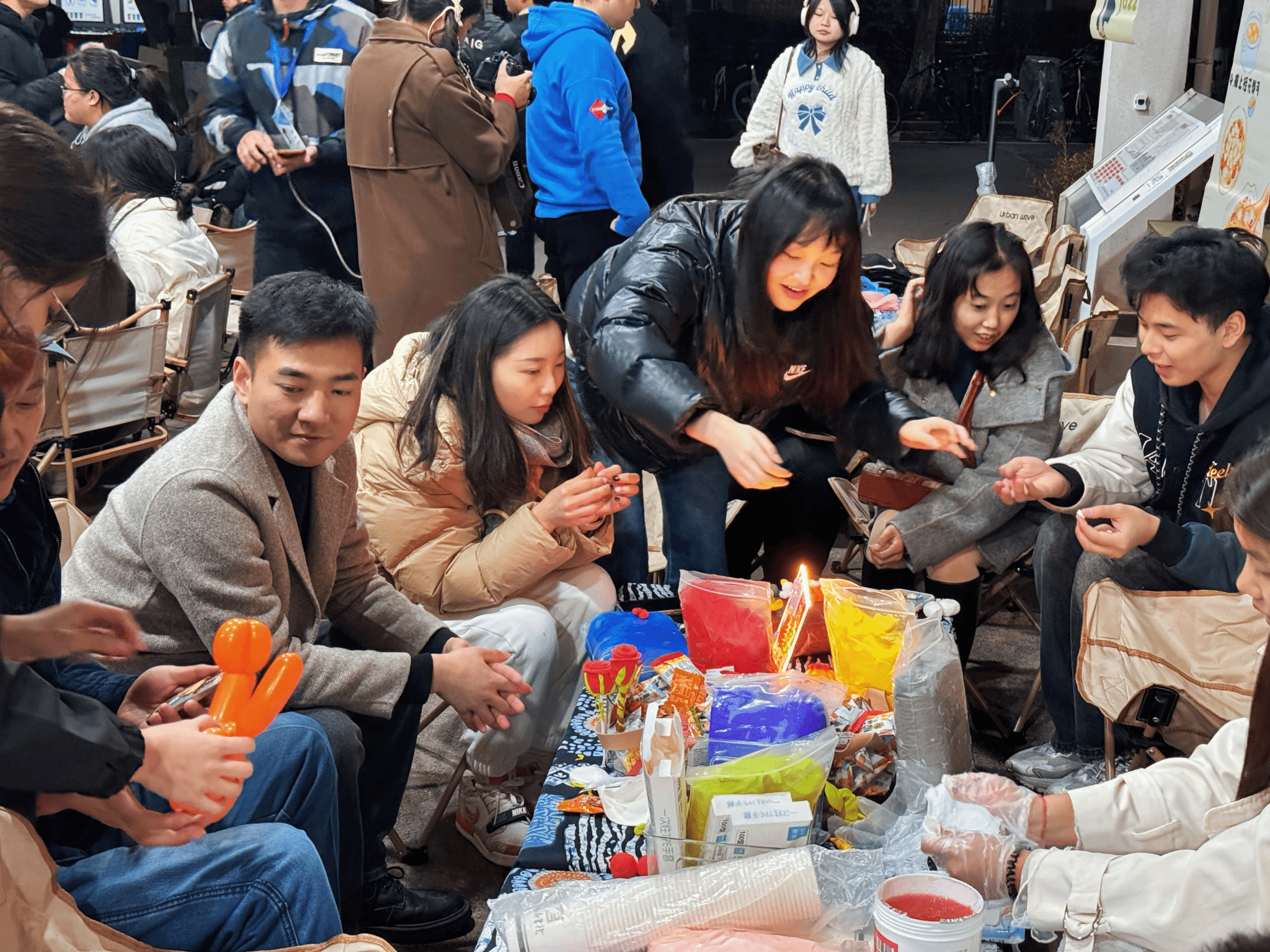 在一首首耳熟能详的歌曲中,师生们围坐在摊位前,以超轻粘土、红糖汤圆、奶茶、真心话大冒险等生活化物品为载体,打开师生互动交流的热闹场景,打破传统师生交流的界限,师生双方都卸下传统教育场景下的“身份”,以“好朋友”的身份进行平等交流、自由互动与深度对话。“老师,我感觉自己好像没什么规划”这是来自学生的真情流露,在这个开放的平台上,学生们可以毫无保留地表达自己的想法和困惑,而老师们则耐心倾听,给予他们真诚的建议和鼓励。这种平等的交流方式,不仅让学生们感受到了老师的关心和支持,也让他们更加信任和尊重老师。