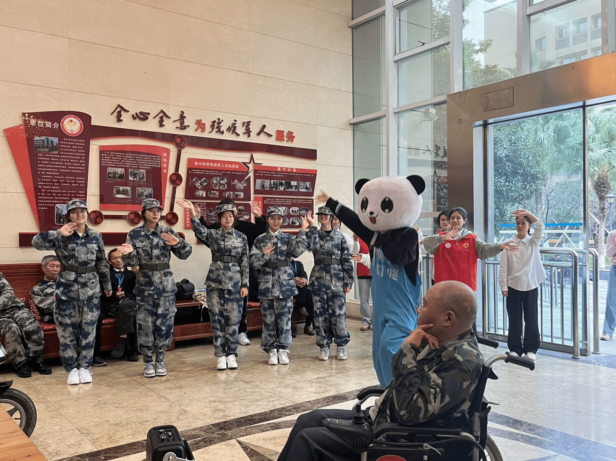 11月13日,国防教育工坊“光芒再放”志愿服务支队前往合川荣军院举办了主题为“荣军颂辰 雅艺臻情”的关爱老兵活动。活动包括朗诵、歌唱、舞蹈以及擒敌拳等多项表演节目,成员们用真情与热情为老兵们带去了欢笑与温暖。特别是在擒敌拳的展示中,老兵们为大家的表现鼓掌喝彩,现场气氛热烈。此次活动不仅让老兵们感受到了社会的关爱,也为学生提供了一个成长的机会。