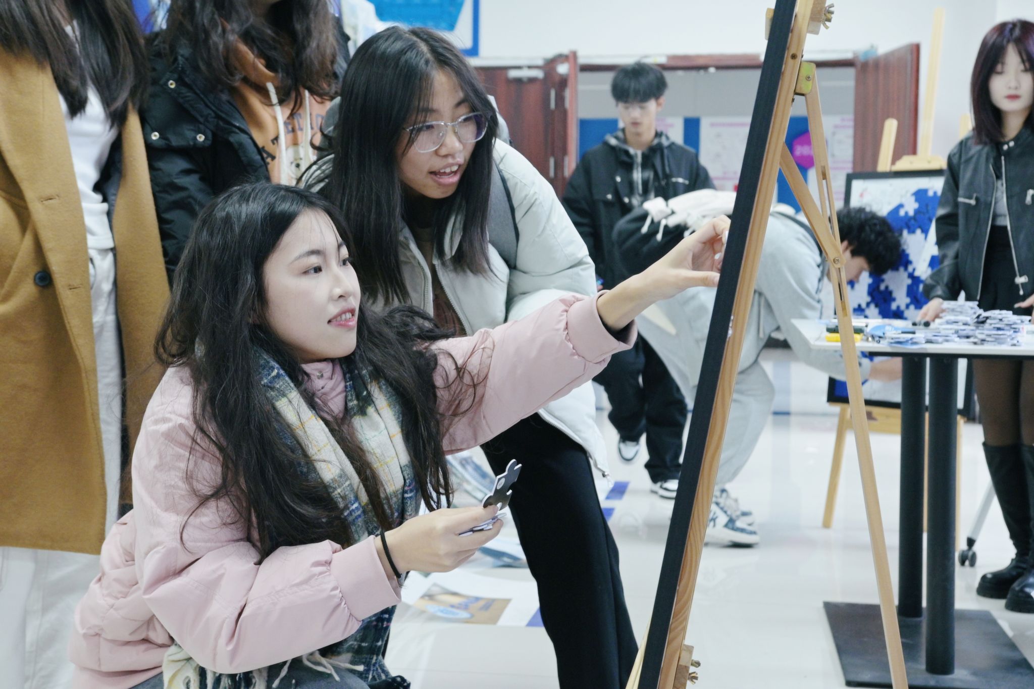 每件展品都如一面青春情绪的镜子,映照内心深处的触动。展览入口处设置“先导印记坊”,参与者领取拼图碎片,在拼图背后写下属于自己的AB面关键词,拼贴在对应位置。两幅拼图形成鲜明反差,每一块碎片都独一无二,值得被尊重和认可。