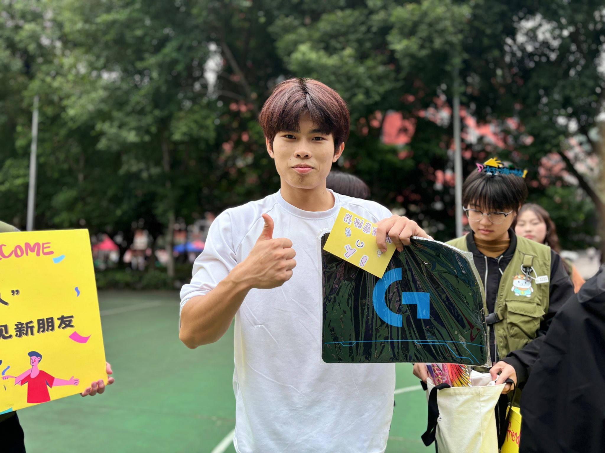 万事开头难,起初由于天气不佳,工作人员们显得有些精神不振。但幸运的是,在主持人的带领下,工作人员们迅速调整状态,以饱满地姿态来面对本次活动。很快主持人便成功拦截下活动第一位幸运儿,通过独特的暗号接头方式,拉开了探索与治疗“社交病症”的活动序幕。在趣味横生的活动吸引下,原本陌生的同学们逐渐沉浸其中,也逐渐敞开了心扉。他们成功地完成了“有口难开”的挑战,领取了自己心仪的小礼物,并在这一过程中绽放出灿烂的笑容。最后,通过合影留念,这一幸福的瞬间被定格在了青春的记忆画卷之中,为这部画卷增添了精彩的开篇篇章。