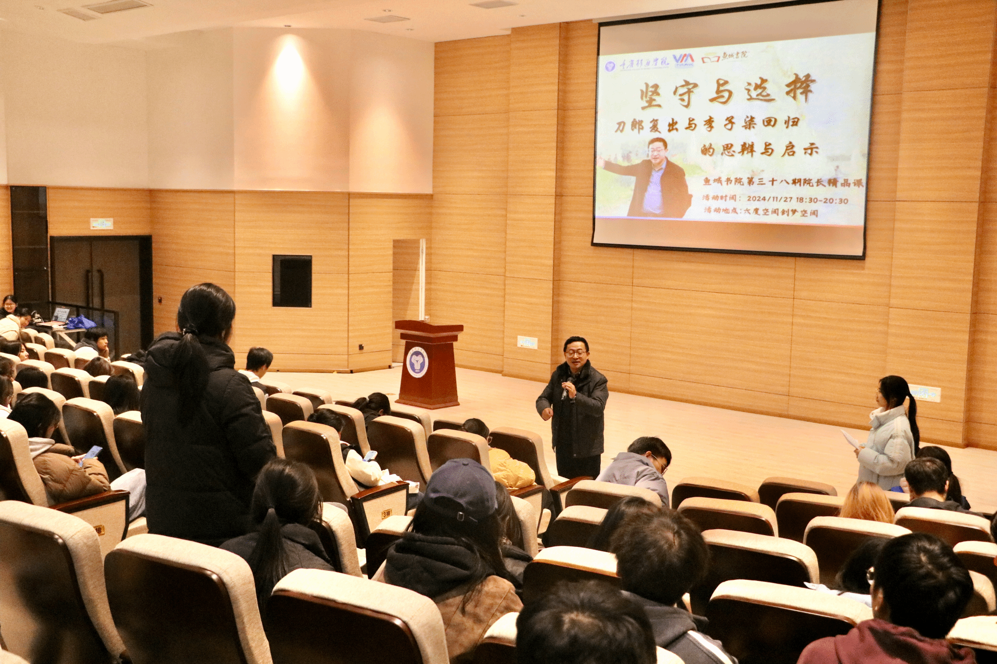 “千磨万击还坚劲,任尔东西南北风。”为切实增强学生的文化自信,大力弘扬工匠精神,进一步推动学生执着、坚守、精益求精的精神品质,鱼城书院于11月27日下午18:00,在六度空间创梦空间开展以“坚守与选择——刀郎复出与李子柒回归的思辨与启示”为主题鱼城书院名誉院长精品课第三十八期。