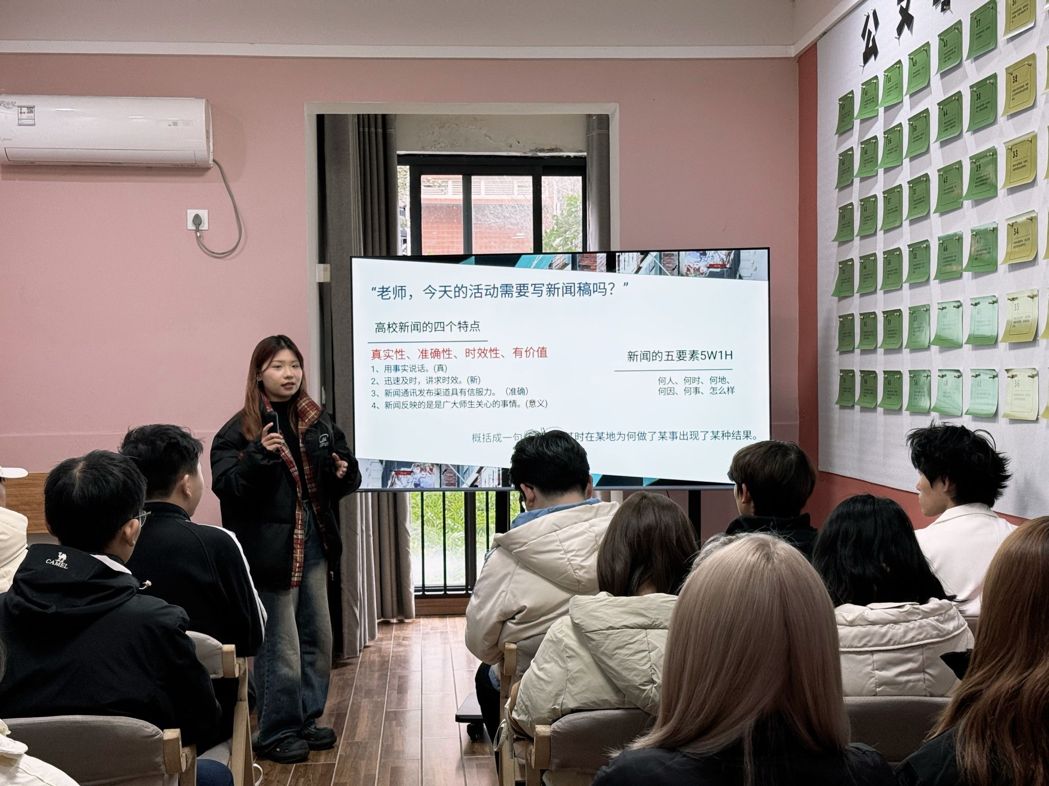 11月12日、25日、28日别都书院、宣传新闻中心合力开展的“V&S”品宣菁英孵化营第61、62、63期于多功能研讨室、智慧课堂、六度空间105℃学术报告厅顺利开展。61期活动以“PS基础应用”为主题,通过技能实操训练展示了如何运用PS进行平面设计,并进行现场设计指导优化;62期活动以“写作基础培训”为主题,通过要求与技巧、结构与要素、发布与优化等方面进行了全面阐述;63期活动,特邀重庆日报资深记者李志峰老师开展“新闻稿件撰写技能培训”品牌宣传推广大咖讲座,通过“新时期的媒体与党报”“校园日常新闻的挖掘”“校园日常新闻稿的采写技巧”以及“新闻观的塑造”四个方面开展讲座培训,以其丰富的从业经验为基础,分享新闻采编经验,提升校园媒体素养。