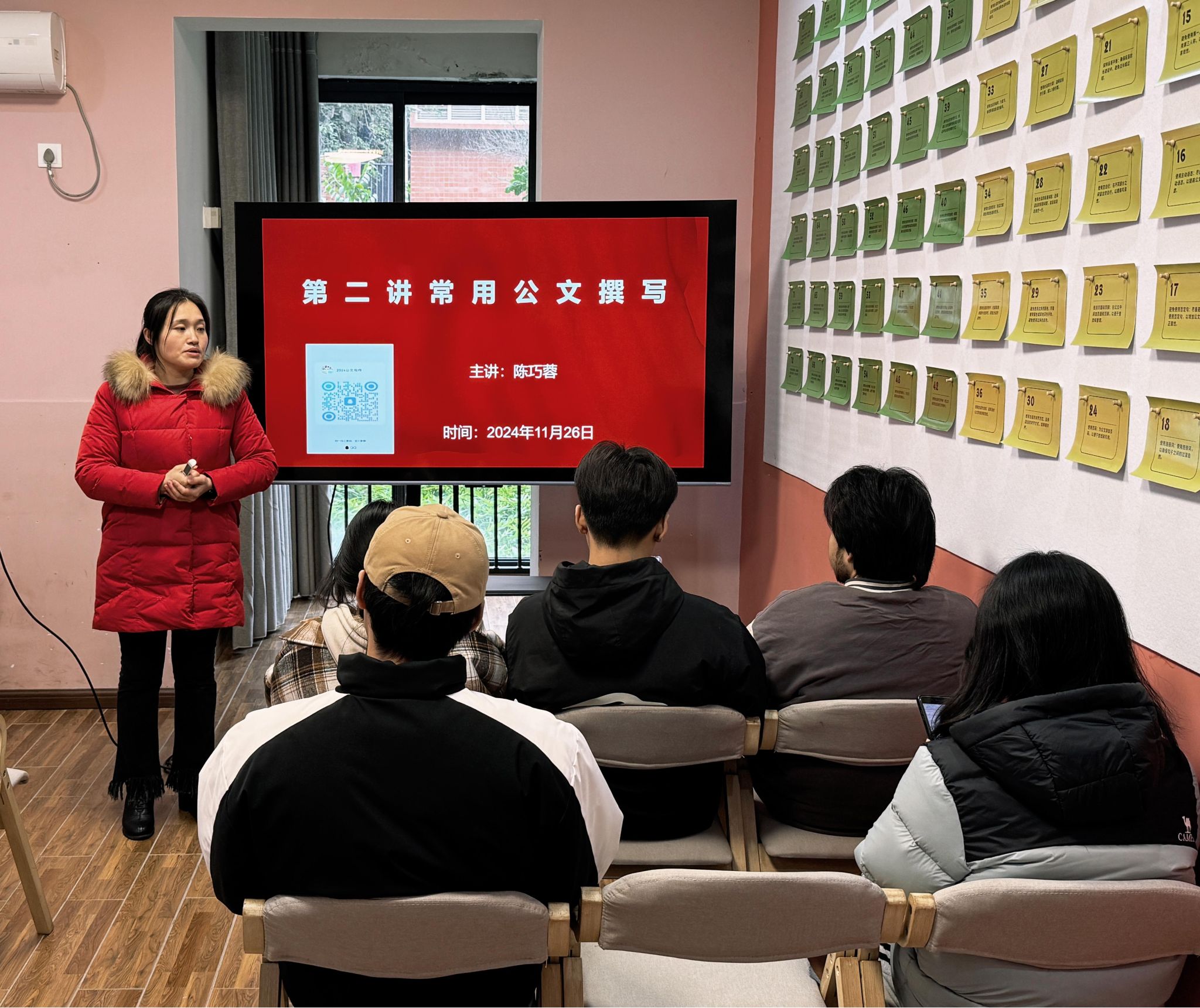 结合别都书院家文化核心支点之“文礼修身”,及书院高年级学生学业、就业需求,第73、74期公文写作技能提升训练营于11月17、26日在别都书院智慧课堂顺利开展,此活动由地域文化与城市发展研究院陈巧蓉老师以“常用公文写作与规范化”“常用公文撰写”为主题对公文写作的理论知识与实践训练进行讲授,以理论解析与实例分析相结合的教学方式,对公文写作的含义、种类、特点、关系、概念、格式等方面进行精细讲解。在73期活动中陈老师以“什么是公文写作”激起学生对公文写作的探索欲,给足学生们对公文写作的想象空间,面对大家对公文写作奇思妙想的回答,陈老师步步引导,进行拆分逐步分析,让学生们对公文写作这一概念了解透彻。74期中,陈老师强调了公文写作在行政管理中的重要性,指出公文是机关单位之间沟通、协调、决策的重要工具,其质量和效率直接影响到单位的工作效率和形象,在写作时需严格按照公文格式与要求进行书写。公文写作技能提升训练营不仅使书院学子掌握了更多实用的公文写作技巧和方法,还加深了对公文的深入理解和掌握,对公文写作的重要性也有了更为深刻的认识。