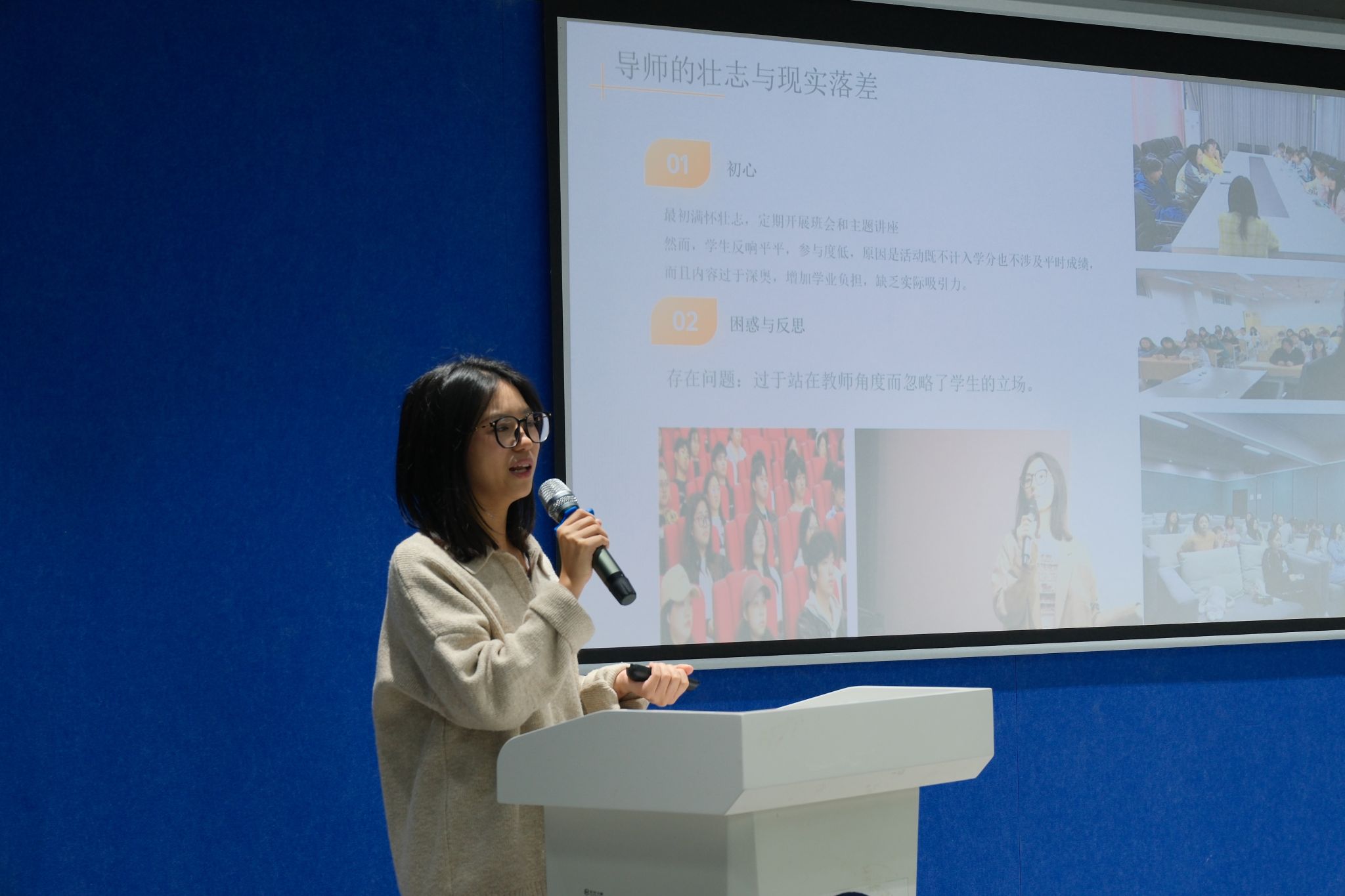 艺术传媒学院、北山书院毛奕茗老师以一场“异科导师“变形记”:从迷茫到点亮心灯”出发,讲述她作为异科导师四年间的育人历经转变与成长。初时,她以讲座活动激发学生的智慧,却遭遇反响平平。困惑中,她调整策略,从学生个体出发,以纸条心愿和一对一交流建立信任,点亮学生心灯。策划丰富的文化活动,营造和谐氛围,鼓励学生竞赛创新,屡获佳绩。开设摄影工坊,提升学生技能。成为了同学们依赖和认可的毛毛姐,毛老师坚信教育的力量是点亮心灵的明灯,能照亮学生前行的路。