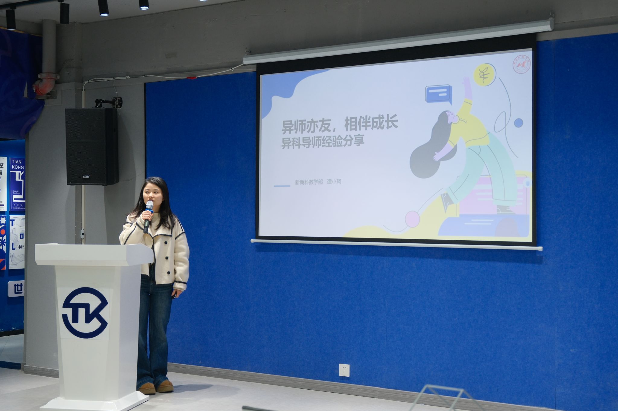 数字经济与信息管理学院、南湖书院异科导师谭小珂老师以“异师亦友,相伴成长”为主题,分享了她作为一名异科导师的工作经验,谭老师主张大一到大四,导师以亦师亦友的身份根据学生实际需求,结合自身专业优势和资源,定制符合异科班学生发展的个性化特色项目分层助力学生成长,全程陪伴,明确学生的发展方向,实现职业规划。