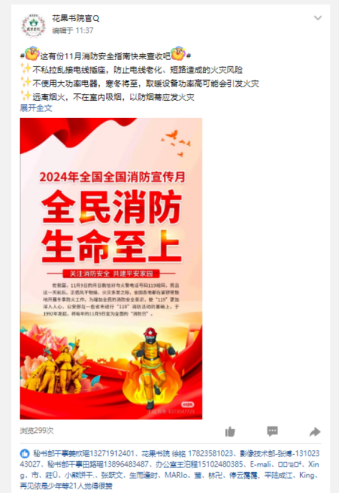 本月内,各书院积极响应号召,利用多种媒介平台对活动进行了全方位覆盖式的宣传。以南湖书院、花果书院以及廊桥书院等通过举办“火灾警示教育”活动,采用电视屏幕展示及微信自媒体传播相结合的方式向广大学生普及了消防安全知识;为弘扬与普及消防安全知识,爱莲书院携手竞技体育中心、马克思主义学院,在风雨球场上精心筹备了融合理论学习与实践操作为一体的“消防宣讲,护安传心”青年博学课堂主题活动,不仅增强了学生的安全意识,还传授了实用的逃生技能。此外,行者书院针对宿舍用电安全问题展开了专题讲座,进一步提高了学生对于个人居住空间消防安全的责任感。