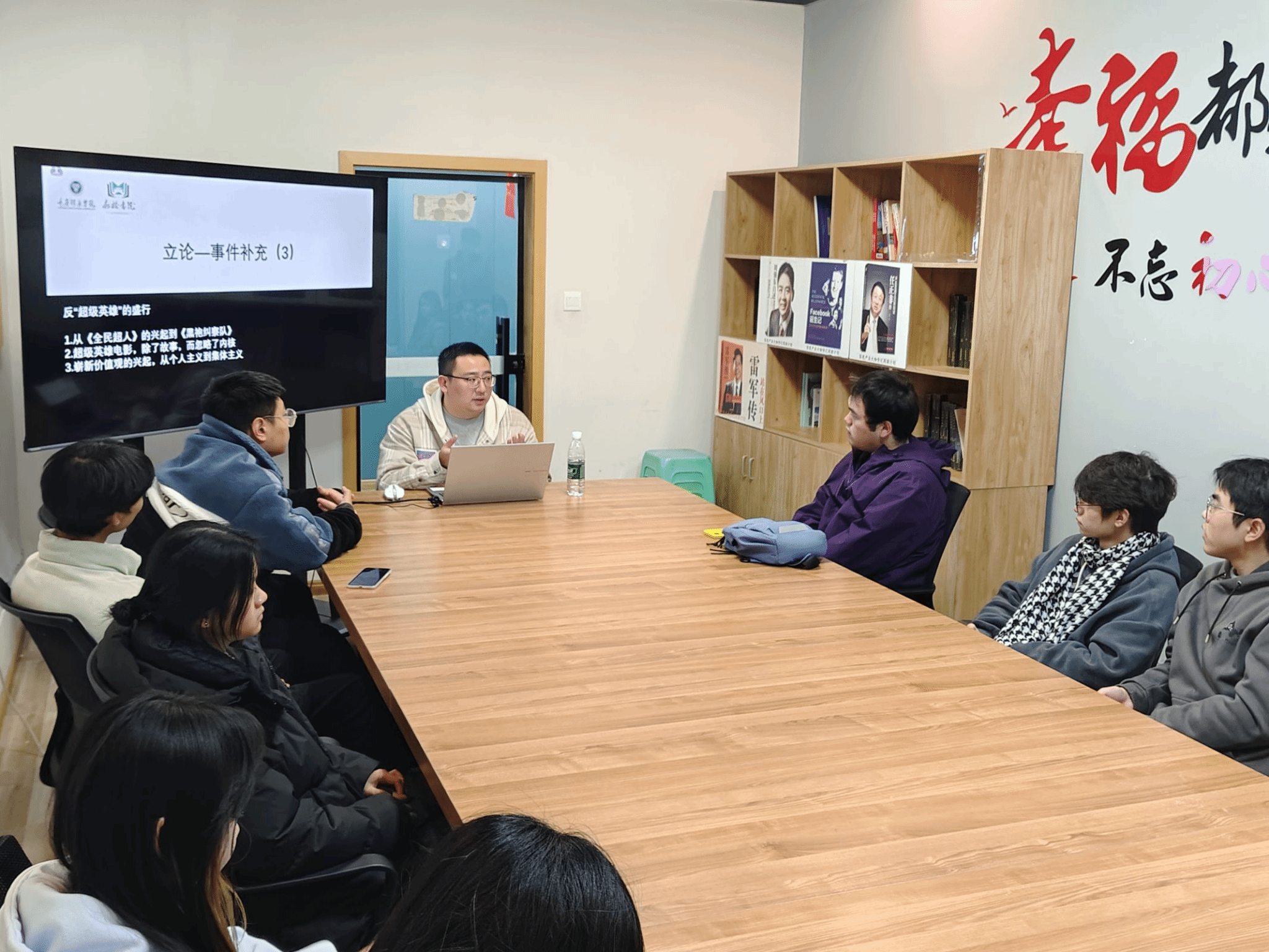 为了拓宽学生们的视野,增强学生们的表达能力,廊桥书院特举办了陪审团系列研讨课程,课程采取陪审员制度,结合热点事件、热点人物等,采取师生共议的形式进行全方位、多角度地审视,鼓励学生们正确看待社会与生活中的事与人。本次活动主题——超级英雄的兴衰史,活动时间为2024年12月6日,地点为廊桥书院桥墩儿议事厅2,参与学生13人。