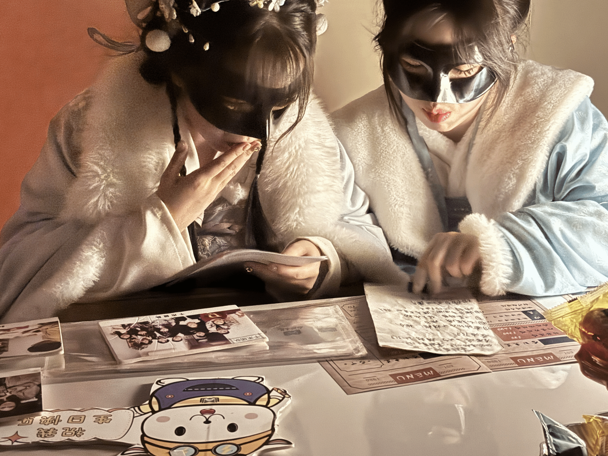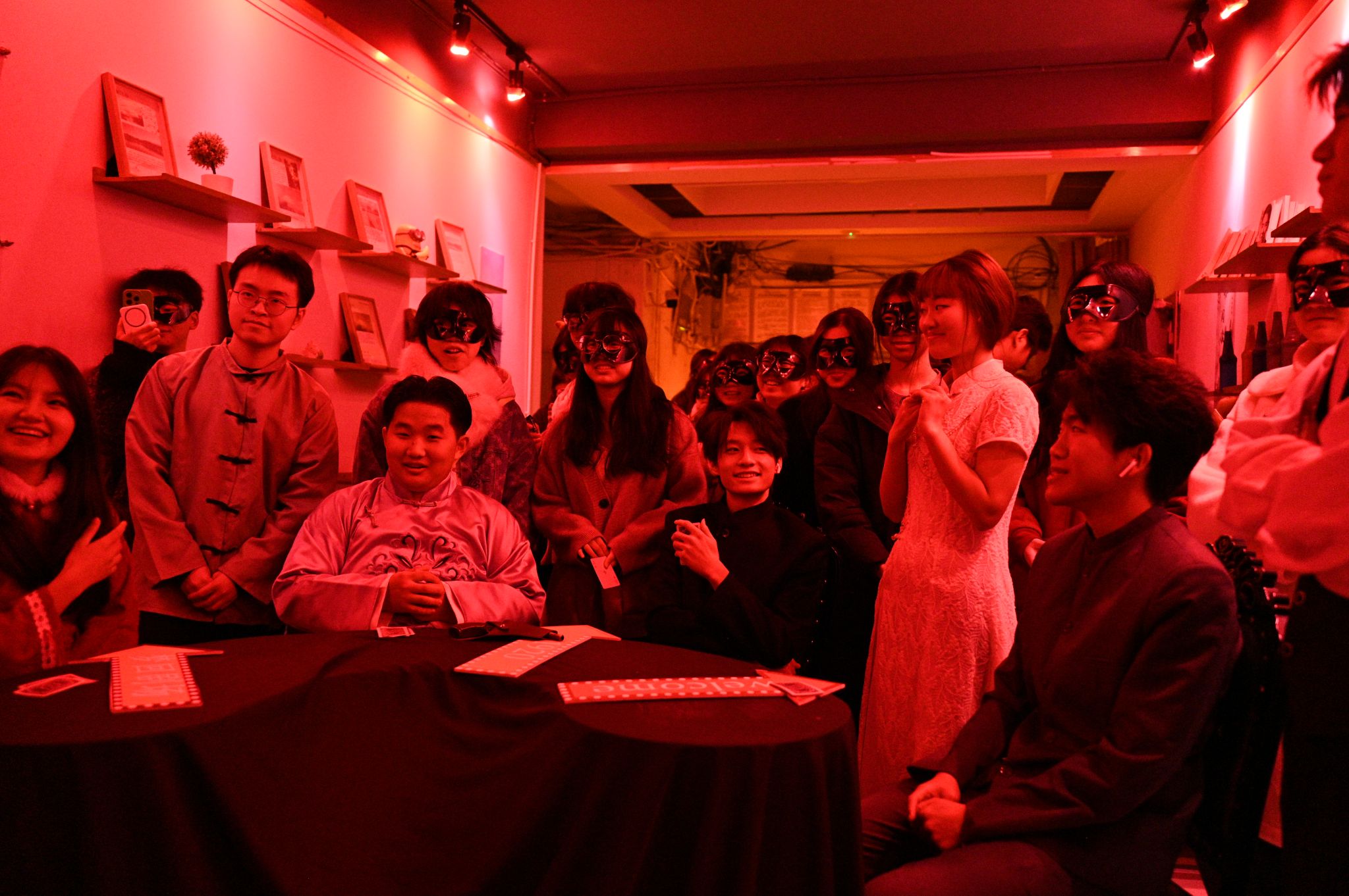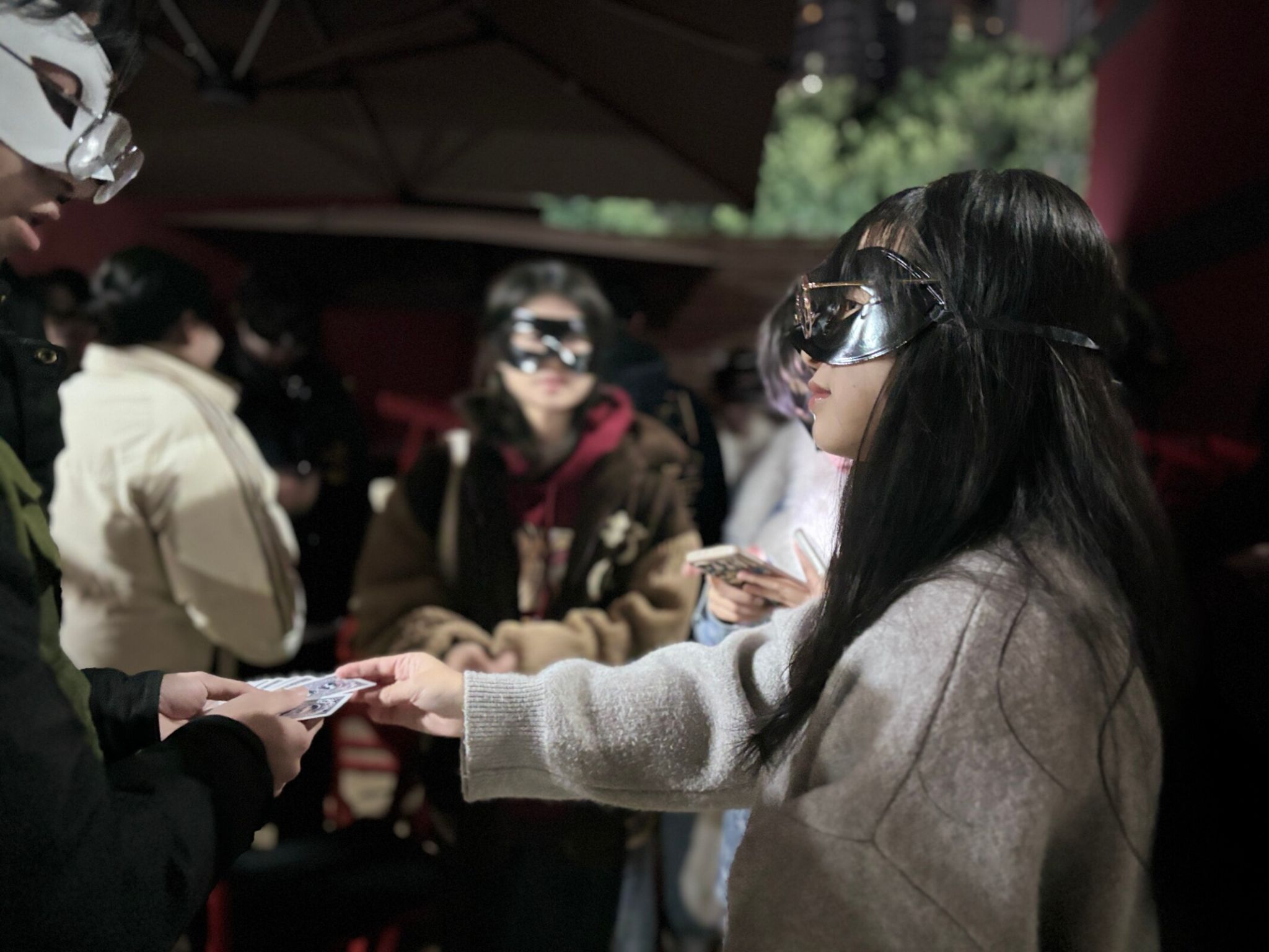 第二季“涪江迷雾”继续沿用“金币”决定胜负的规则,在保留第一季核心玩法“卡牌猜拳”的基础上,增加了“骗子酒馆”玩法,更将舞台剧元素巧妙融入体验中。书院工作人员充分利用廊桥1号楼的地理优势,现场实景演绎了6幕“合川秘宝”相关剧情。参与的学生们需要一边观察工作人员的演绎,一边通过“卡牌猜拳”和“骗子酒馆”两种玩法,收集“线索”,揭开故事的真相,最终决定故事走向。