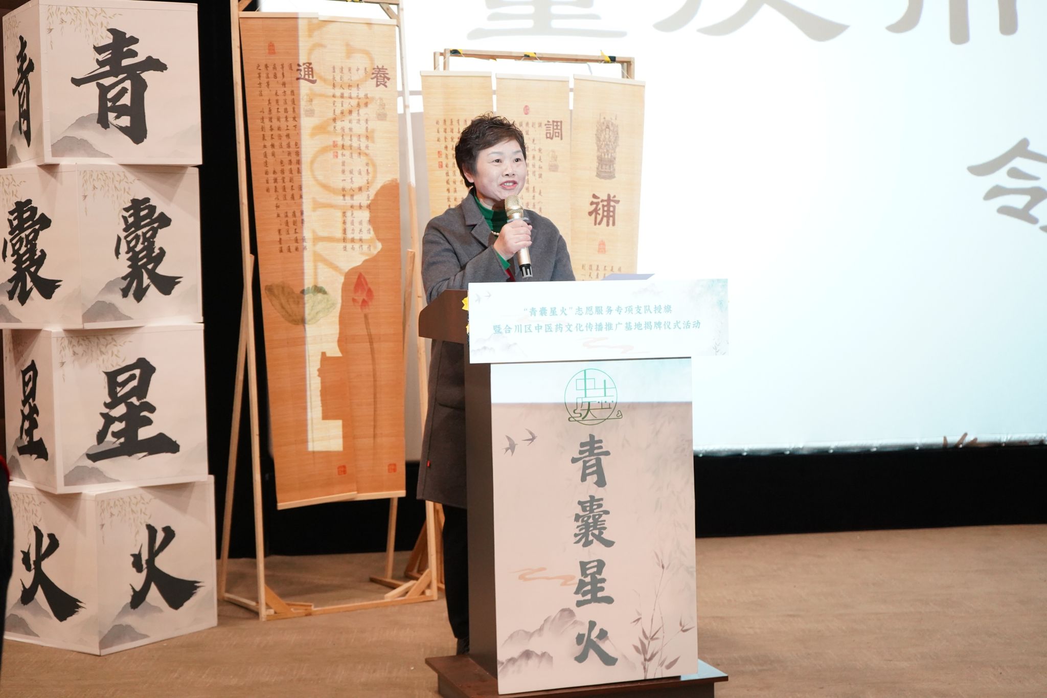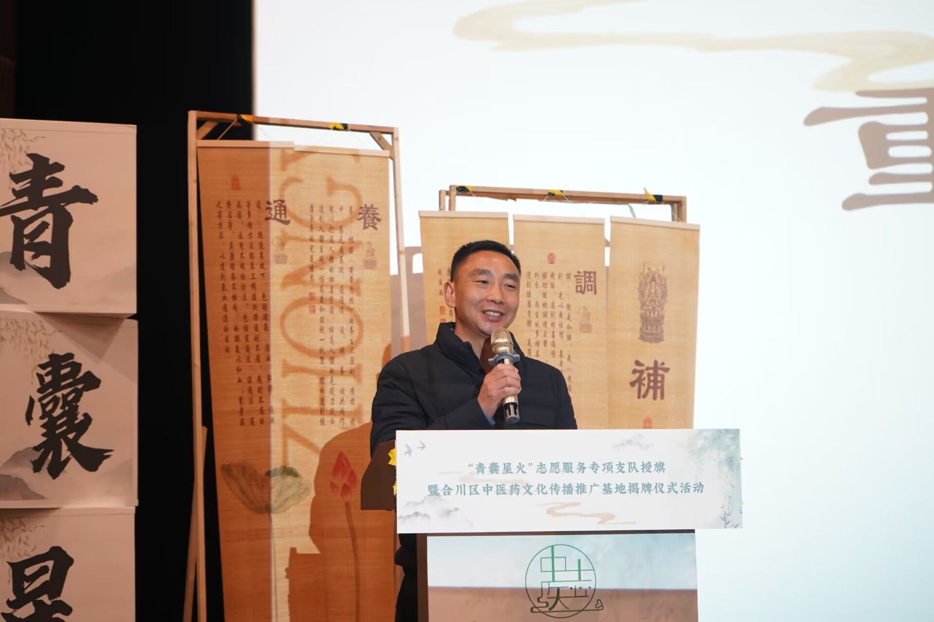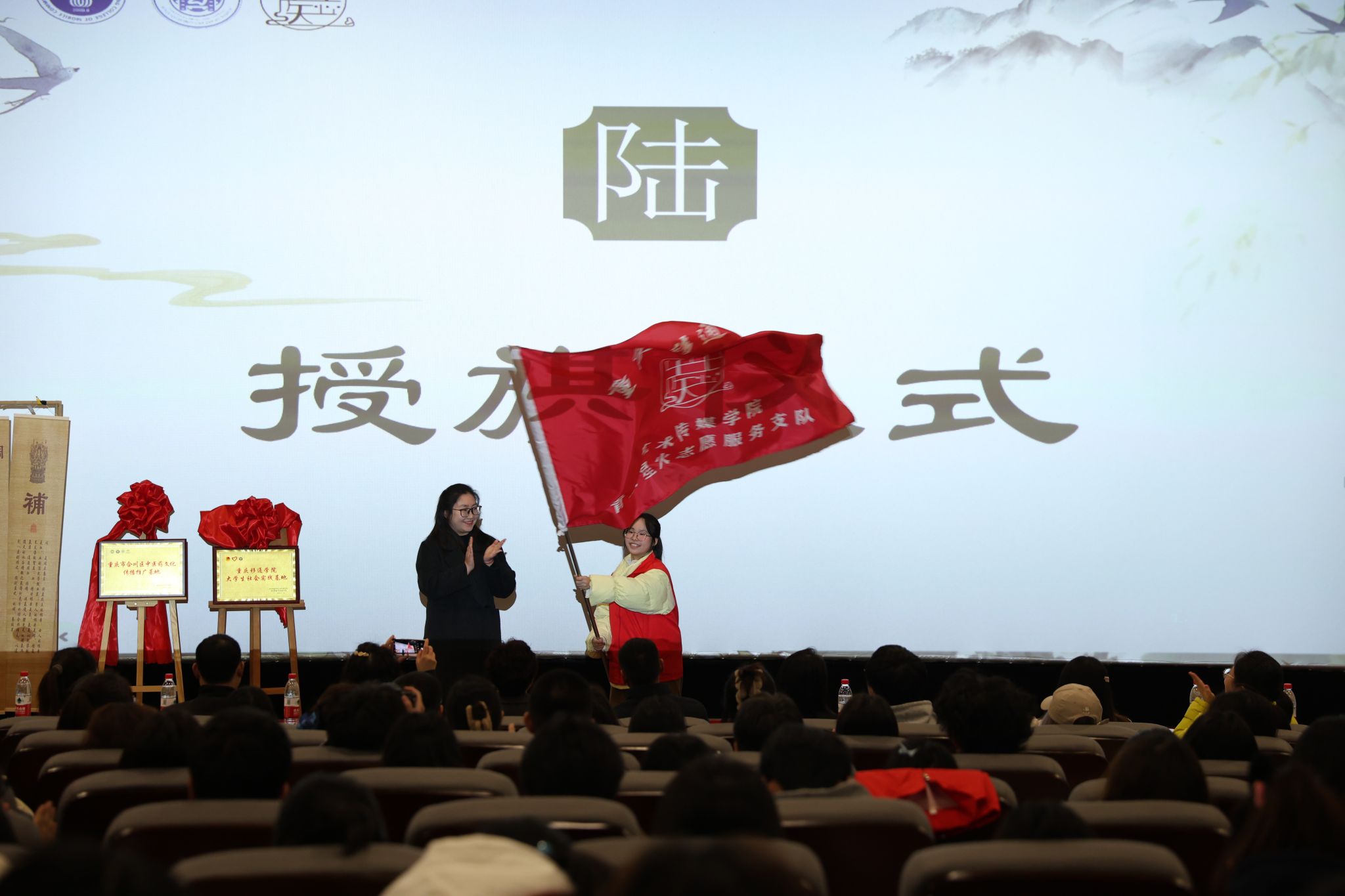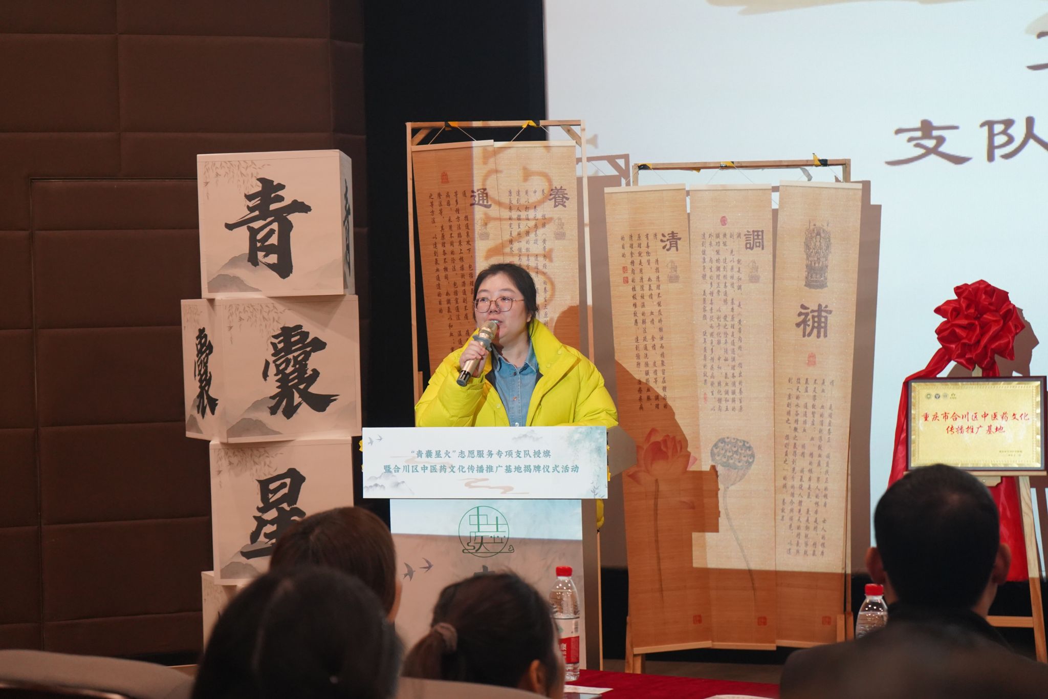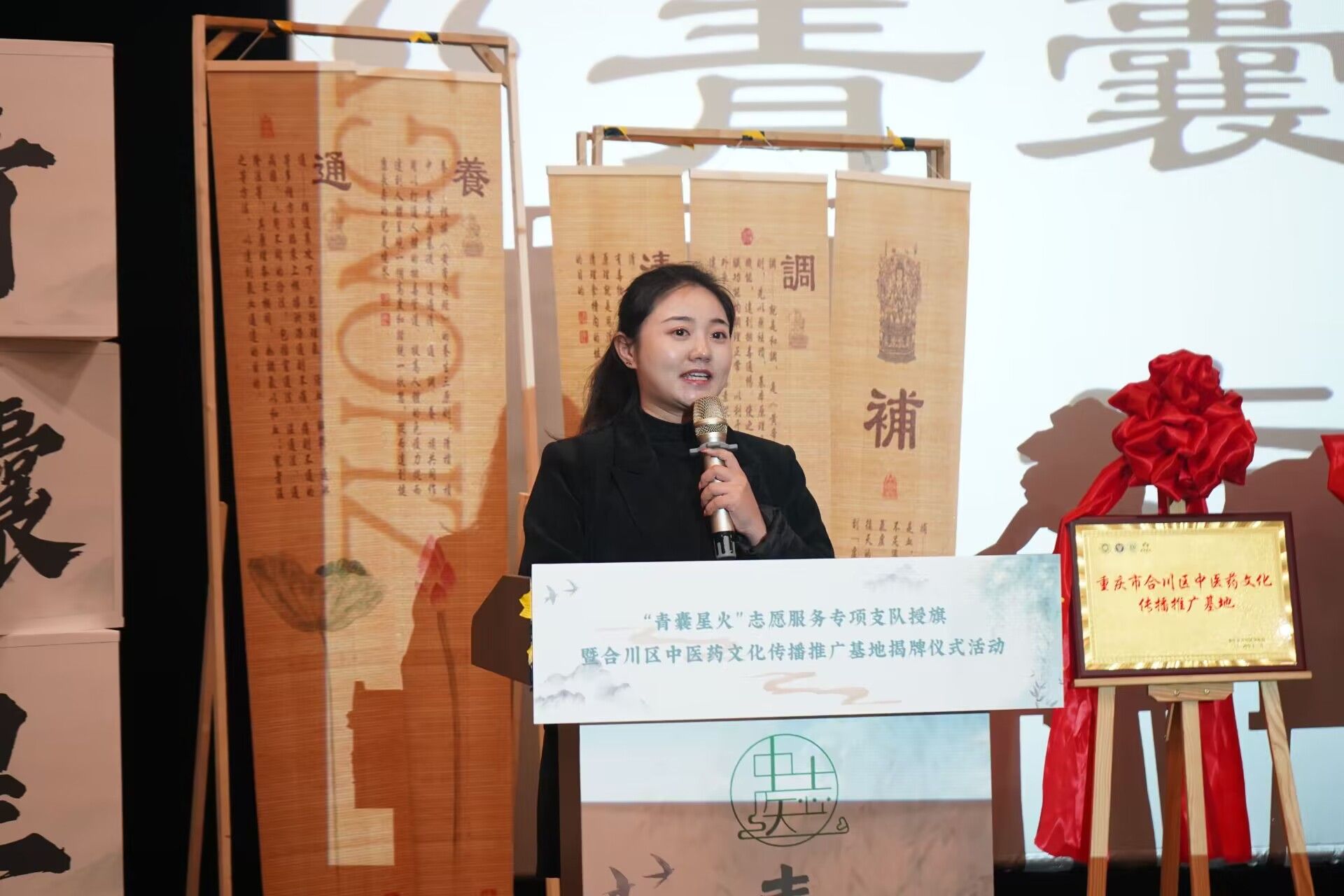 为进一步弘扬传统中医药文化,以青年大学生力量助力中医药文化创新传承与推广。12月11日,重庆市合川区中医院、重庆移通学院艺术传媒学院、花果书院,在重庆移通学院六度空间8½报告厅举行了合川区中医药文化传播推广揭牌仪式暨“青囊星火”志愿服务专项支队成立仪式,重庆市合川区中医院党委副书记、院长喻其敏、党委办主任王建英,移通学院师生志愿者共计200余人参与仪式。