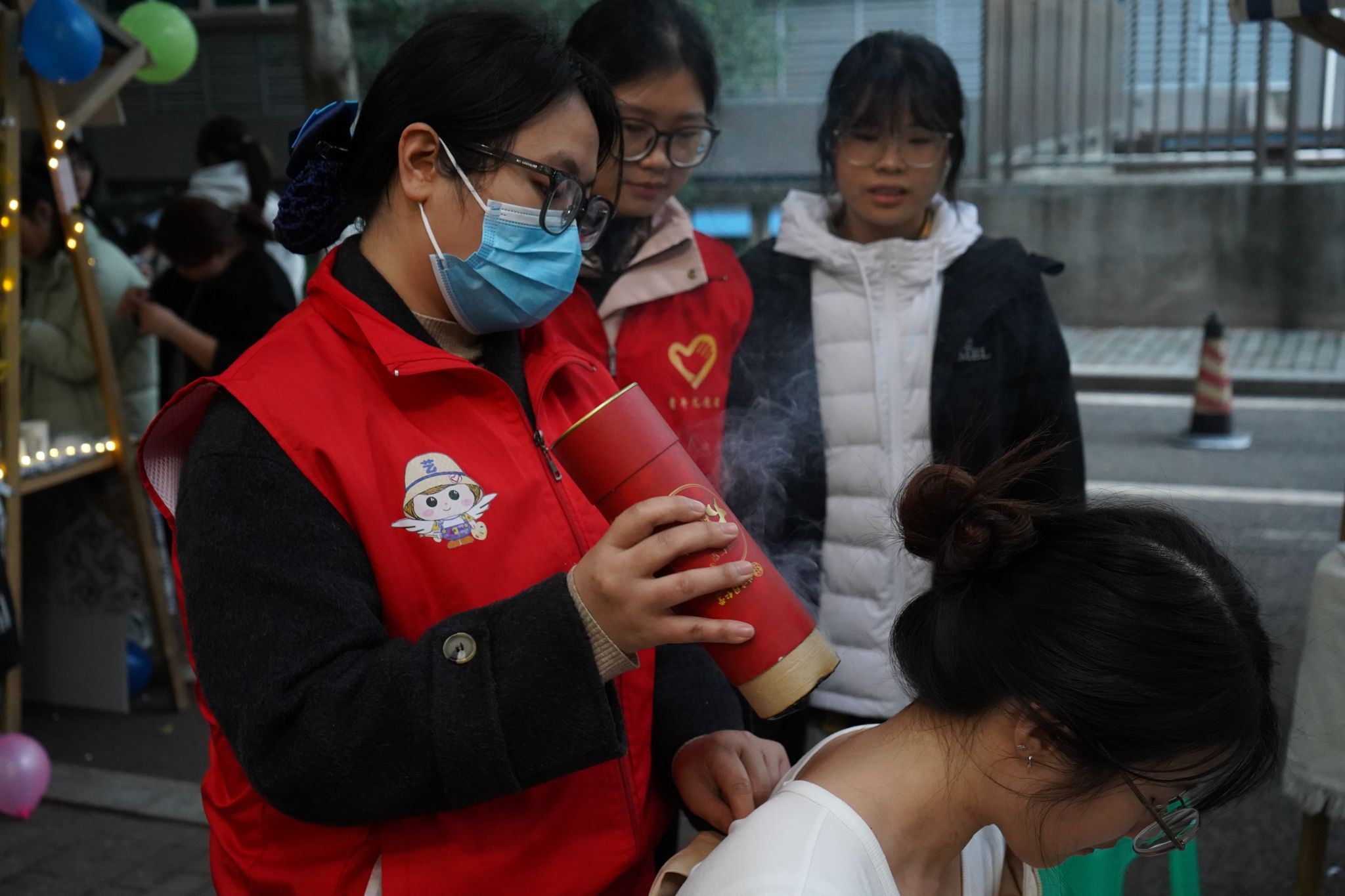 悬壶妙理传金鉴,济世清欢展玉章。重庆市合川区中医院专家秦春花医生为大家带来中医药传统文化知识讲座。以古老传说与历史遗迹讲述起源和自然现象解读阴阳五行,同学们全神贯注,讲座照亮了大家对中医药传统文化的认知之路,期望大家学有所获、养成健康生活方式。而后,嘉宾与师生一起来到中医药文化体验区进行互动体验。在中药奶茶区,感受中医药与现代饮品融合的奇妙滋味;在中药 DIY 耳饰区域见证传统中药材经创意雕琢,化作精美饰品于指尖闪耀;在花草灯制作处领略光影摇曳中古老中医药文化的魅力;在中医院问诊区体验艾灸、推拿、耳穴压豆等中医传统疗法。