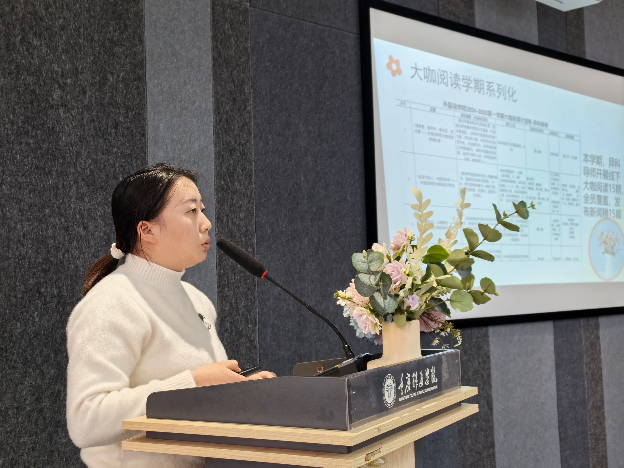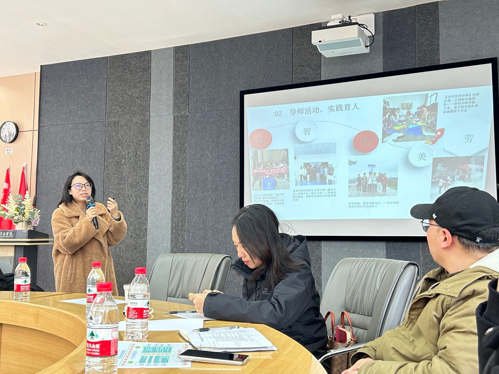 外国语学院双院融合岗负责人兰鹰老师以“育德铸魂,启智润心”的主题从异科导师队伍建设出发,强调协同育人的重要性。通过搭建“学工队伍+异科导师”平台,完善各项机制,为异科导师工作的顺利开展提供了坚实保障。同时,兰老师通过一系列特色活动的介绍,表示不仅丰富了学生的校园生活,更在双院融合方面迈出了坚实步伐。未来,学院将加大异科导师培训,促进双院深度融合。