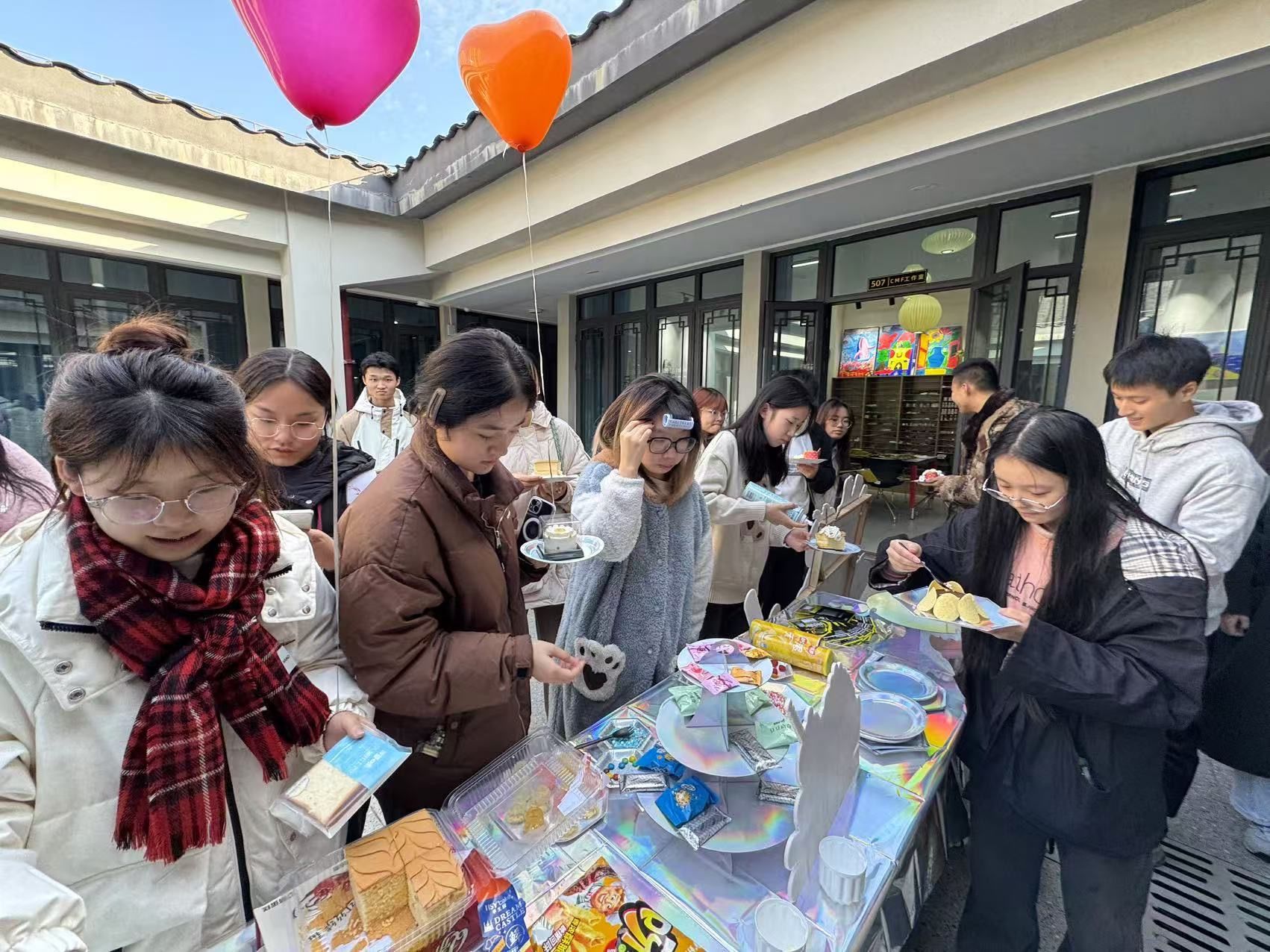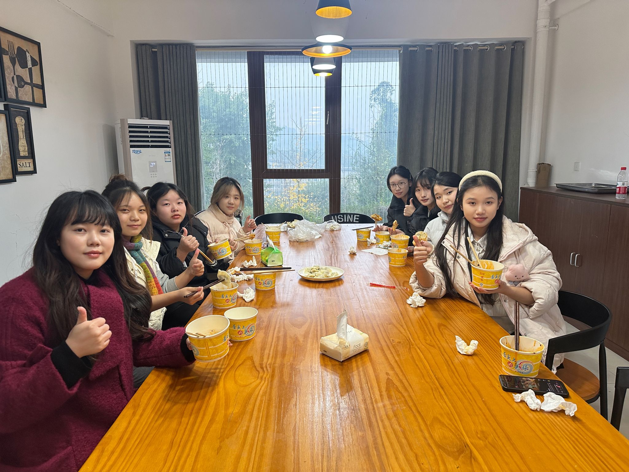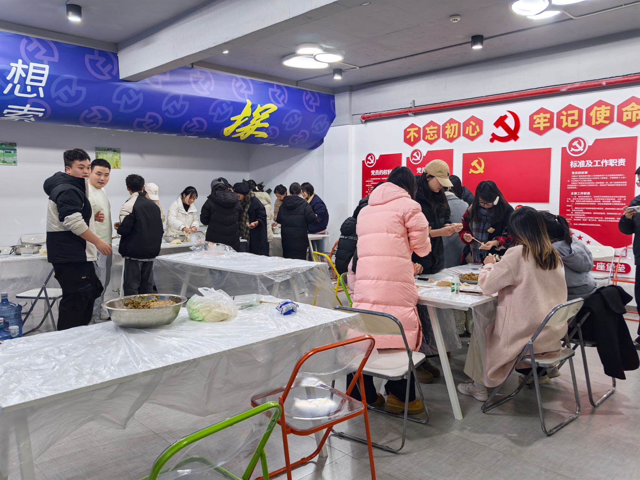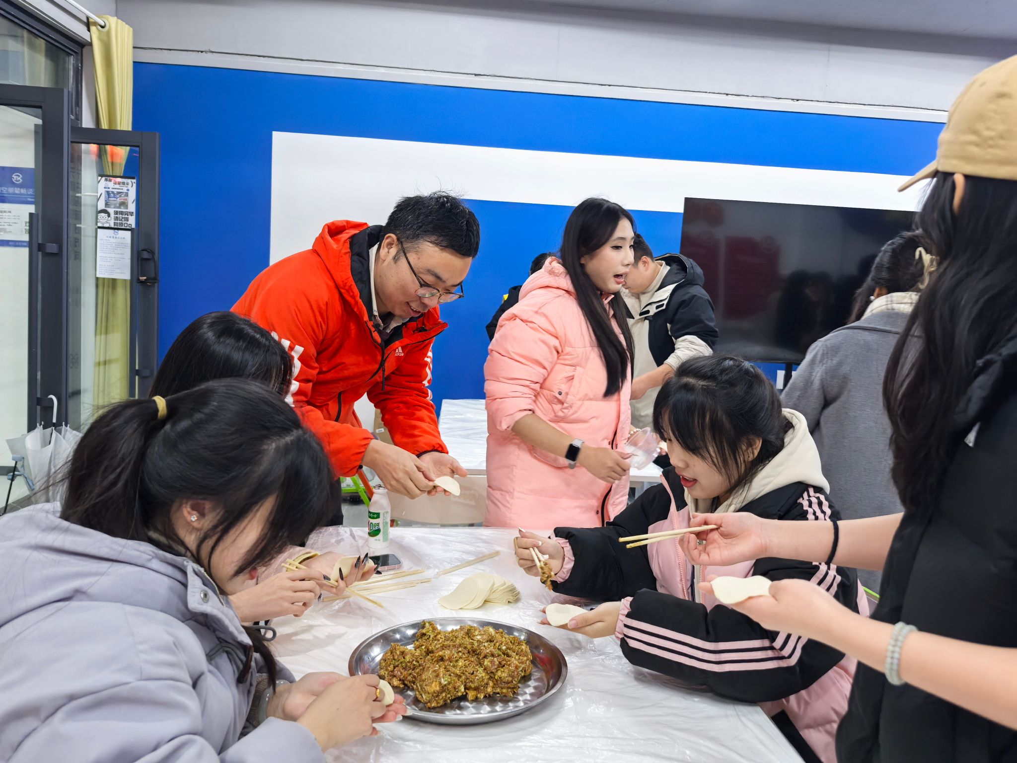 天空青空朋辈畅谈室内洋溢着温馨与欢乐的氛围。异科导师张辉老师联动程彩玲老师,为学生精心准备了冬至饺子活动。活动现场,张辉老师不仅与同学们一同动手包饺子,还亲自为同学们煮饺子,一锅锅热腾腾的饺子香气扑鼻,温暖了每一个在场学生的心。同学们在品尝美味饺子的同时,脸上洋溢着开心的笑容。程彩玲老师也为学生们准备了丰富多彩的游戏娱乐项目,借助活动室内的电视,学生们纷纷组队参与,享受着游戏带来的乐趣。整个活动不仅加深了师生之间的情谊,也让同学们在忙碌的学习生活中感受到了节日的温暖与欢乐。