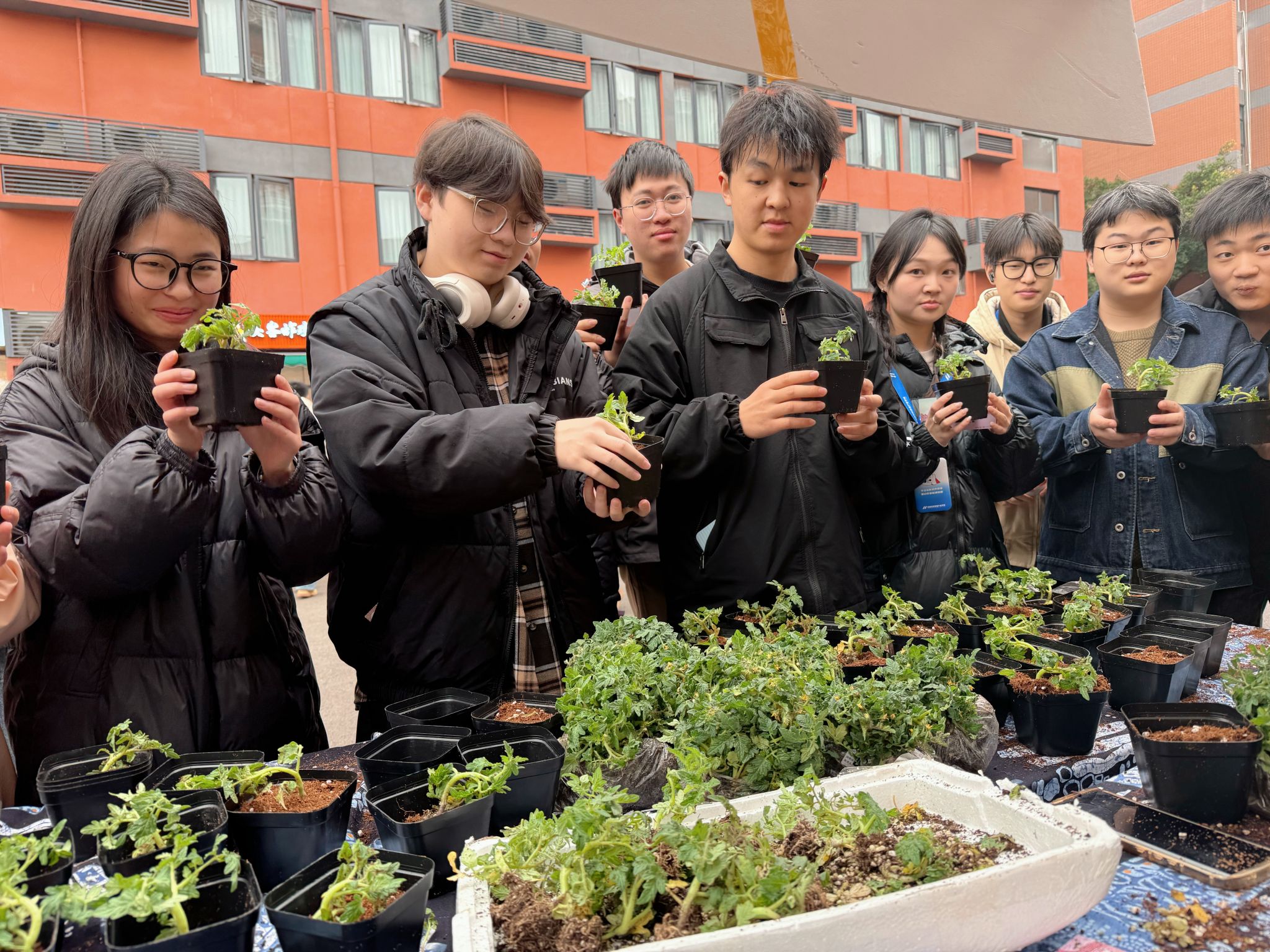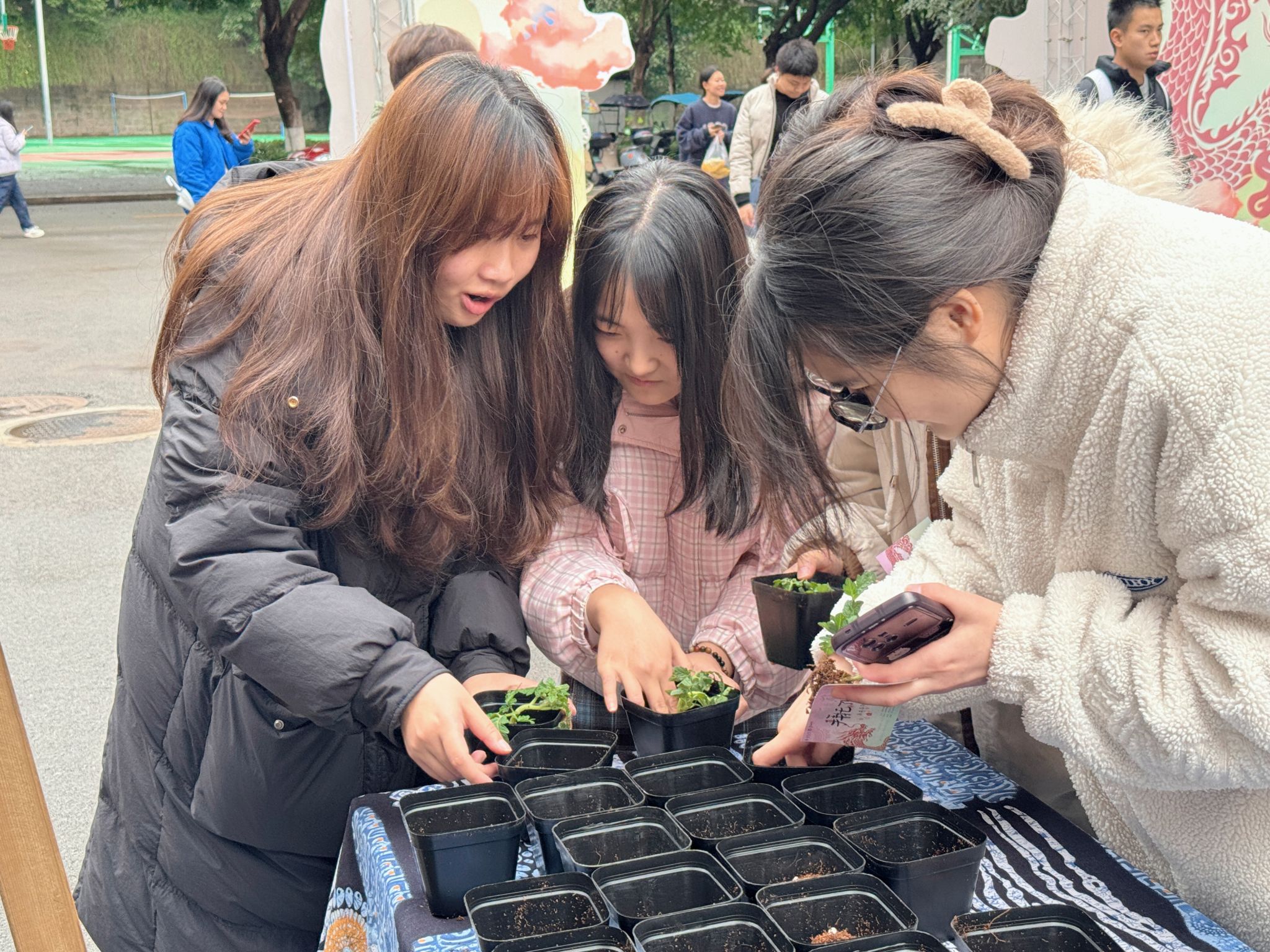 理发区,“剃龙头”的传统习俗吸引了众多书院学子,大家以全新的面貌迎接新学期的到来,寓意着从头开始,焕新前行;春耕播种区,大家亲手栽种番茄幼苗,将希望的种子种下并带回寝室继续精心培育,这不仅是对农耕文化的传承,更是对“耕读传家”这一书院家文化理念的生动实践;编手绳活动区,参与者们在动手编织的过程中,体验到了生活的宁静与美好,心灵得到了前所未有的放松与滋养。