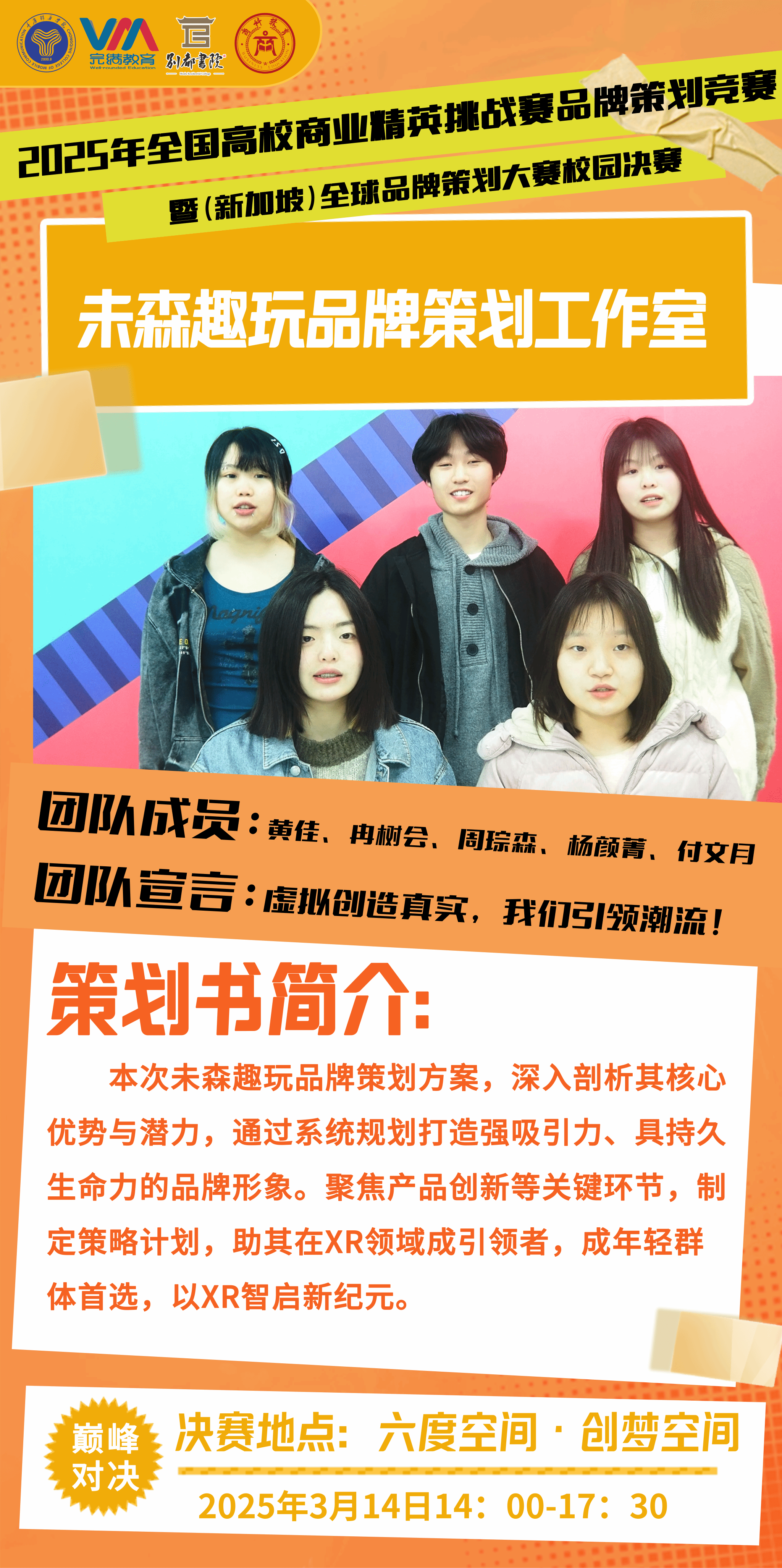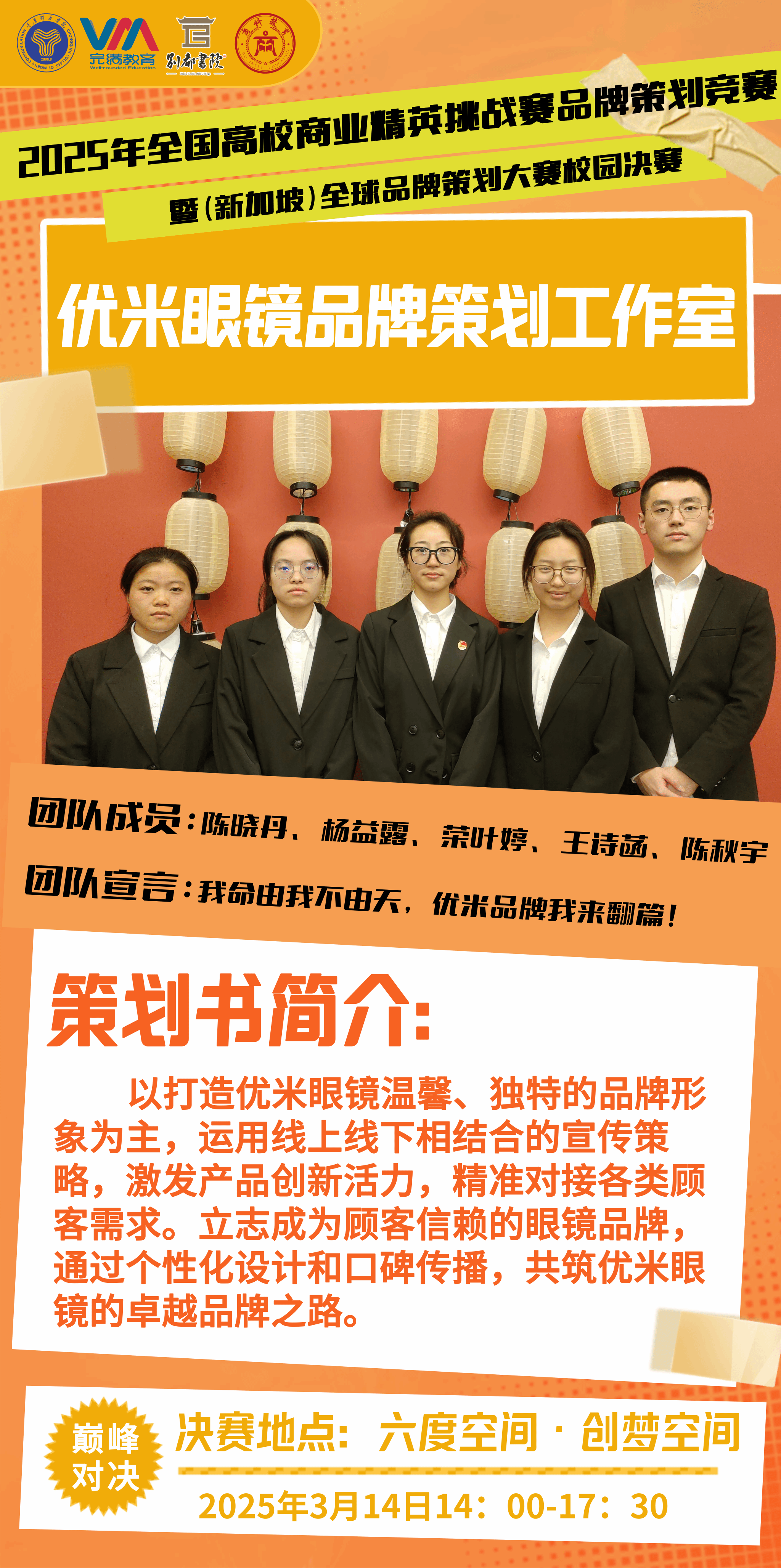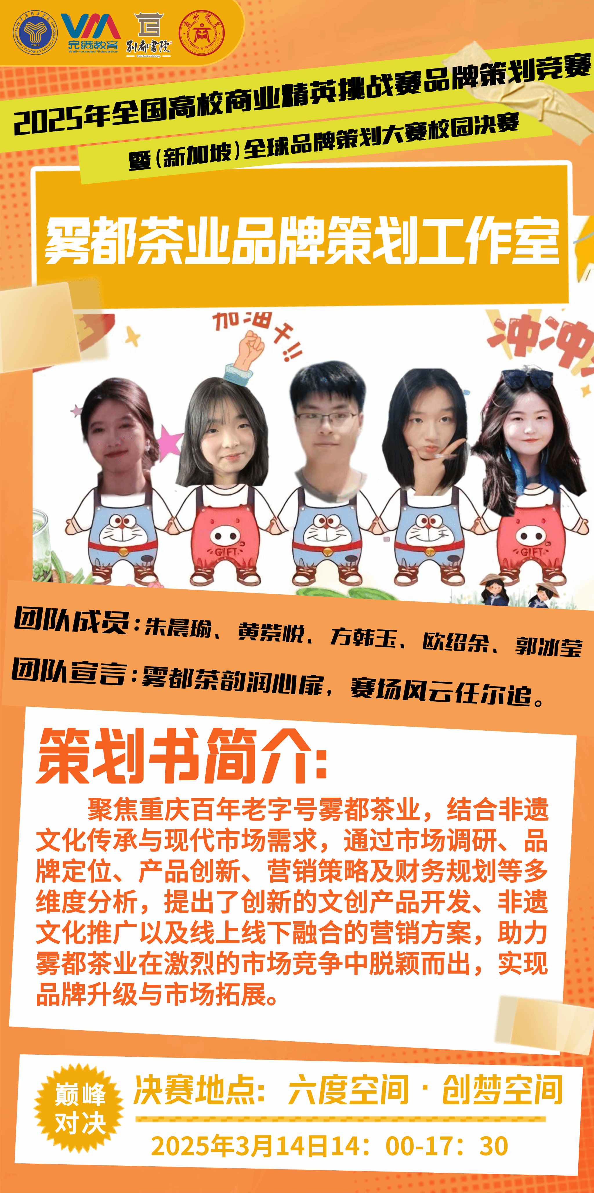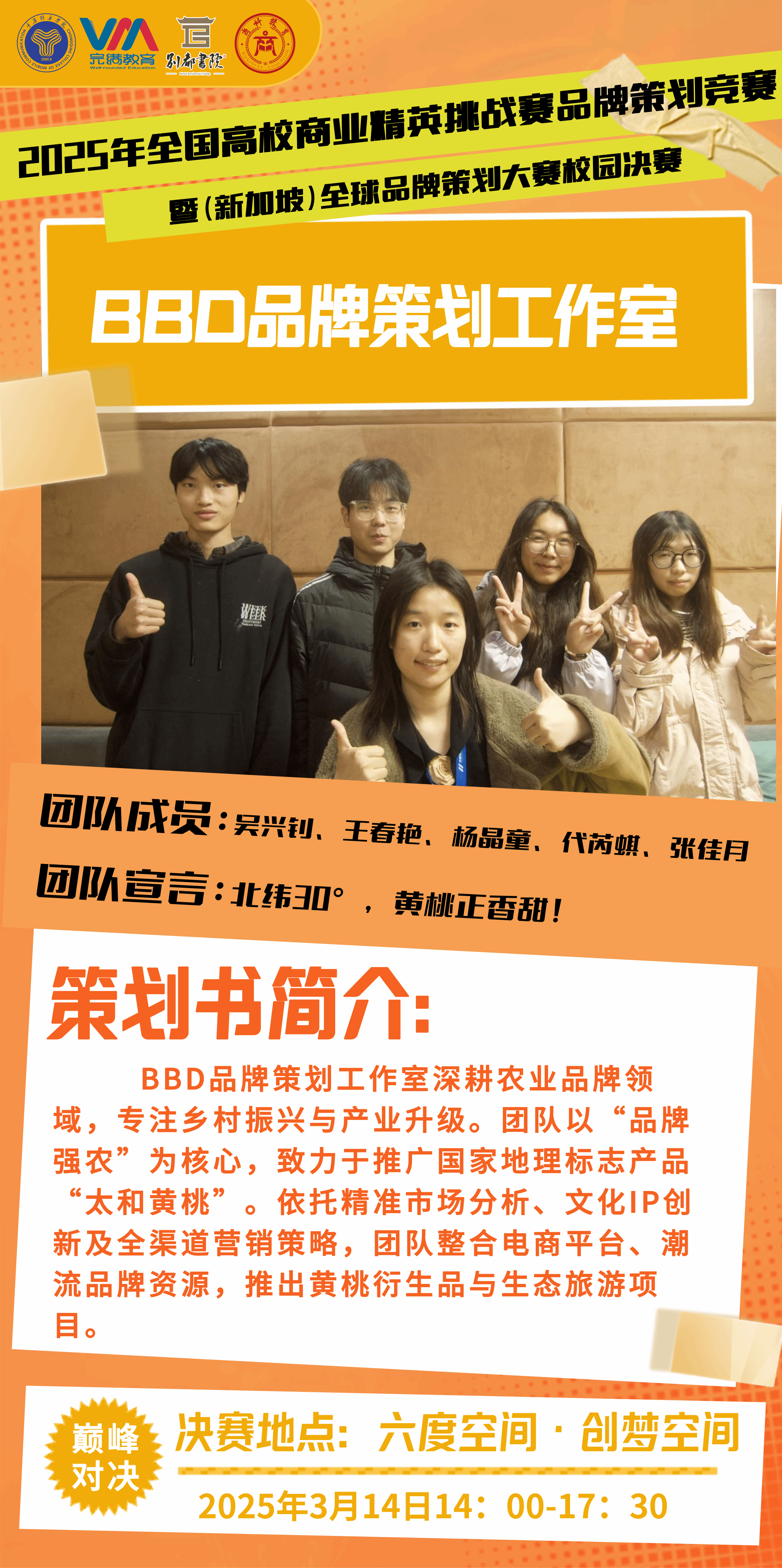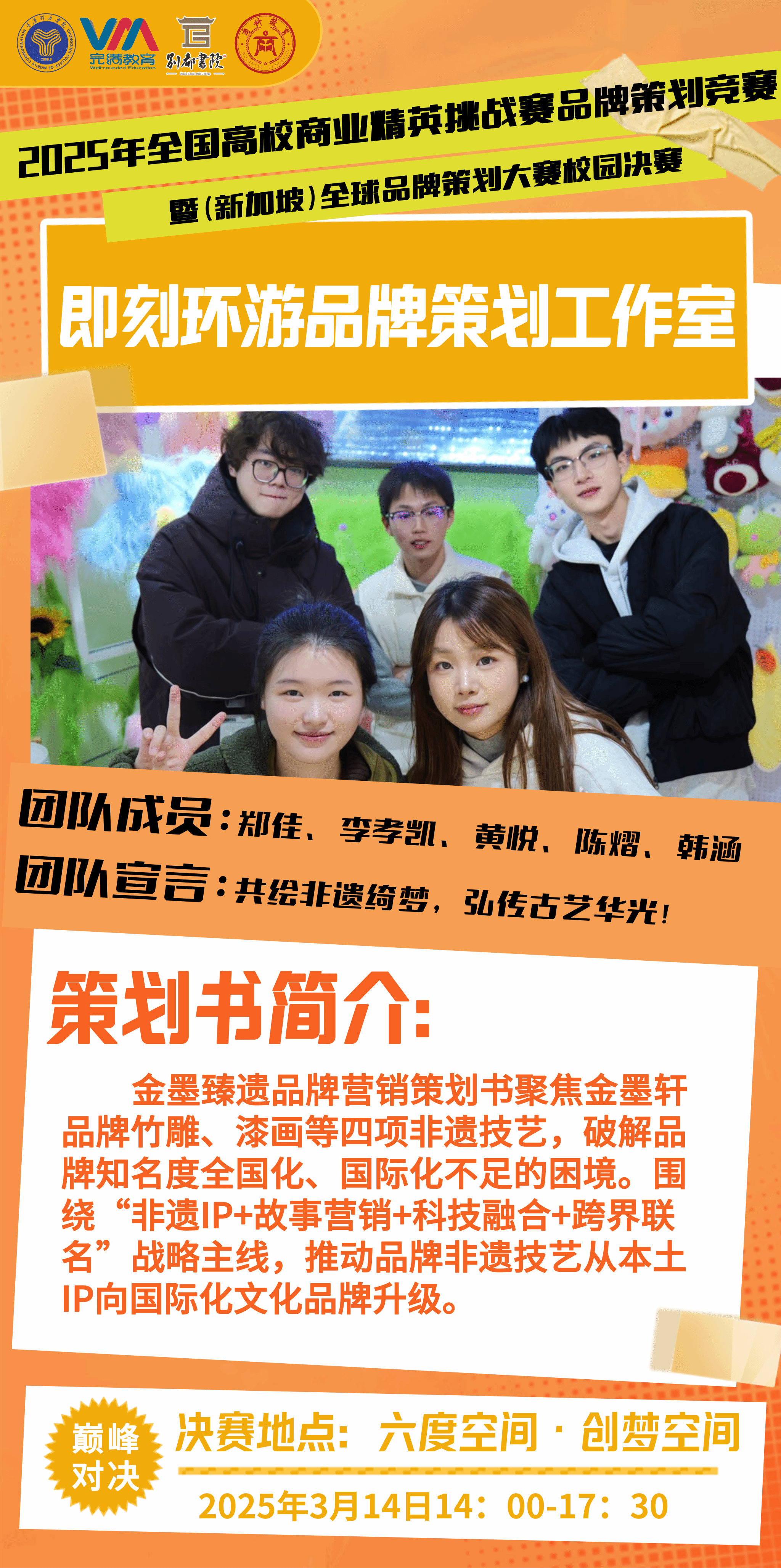 为贯彻落实我校“信息产业商学院”办学定位及“四位一体双院制 +特色课程”人才培养模式,培养数字经济时代高情商经营管理人才,由重庆移通学院别都书院、新商科教学部商业基础课程教研室联合承办的2025年全国高校商业精英挑战赛品牌策划竞赛暨(新加坡)全球品牌策划大赛校内选拔赛决赛将于2025年3月14日14:00在六度空间创梦空间燃爆登场,争夺全国预选赛入场券!