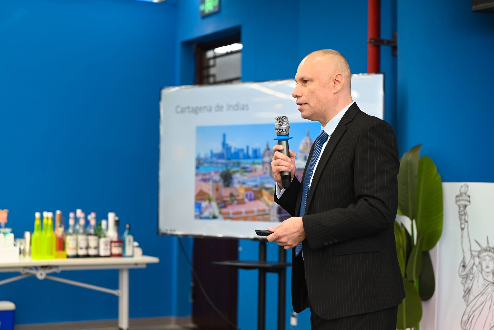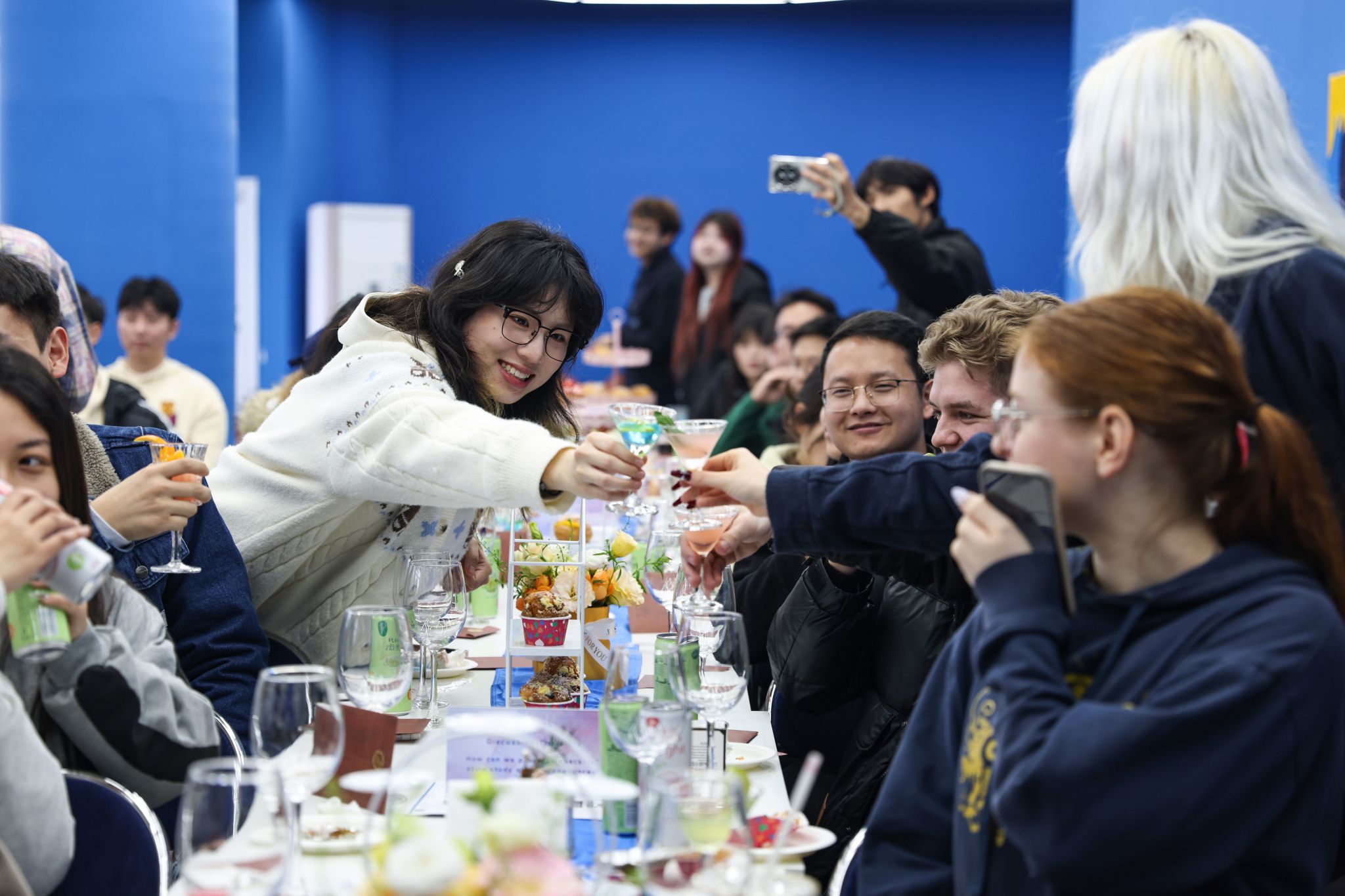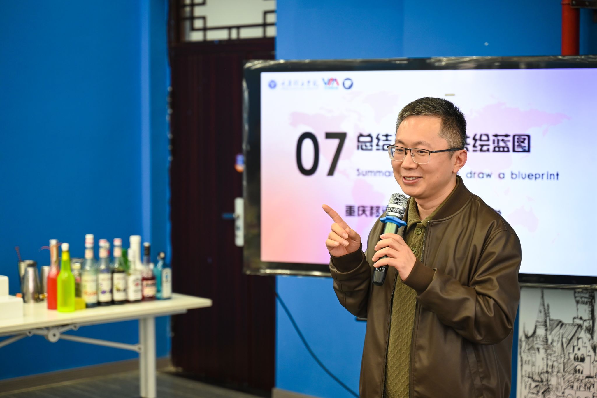 本期校长面对面专题活动以“探索国际化的N种可能”为主题,通过回顾往期海外游学项目经历,烘托七十余名师生的国际交流热潮。来自远景学院、远景书院的朱佳怡同学以她自己在德国留学的奇妙之旅为主题向在场师生分享了她的海外游学经验,感叹重庆移通学院暑期海外游学项目带给她的全新人生体验,并对即将出发前往德国的2025年暑期海外游学学子们献出美好祝福。统战部欧美同学会(留学人员联谊会)会长向觅老师从学校介绍、学习生活分享、课程讨论等方面全英文描绘自身留学香港的亲身感受,提高在场师生的国际交流氛围。来自德国工程学院的德语外教Julio Cesar Cervantes以诙谐幽默的外语开场,多维度呈现出德国的地理人文与科技发展,带给在场师生对德国的美好遐想。调酒师阳世海从鸡尾酒起源、调酒师职业介绍、酒类设计等,和师生共同品鉴西式酒类文化,并通过专业的调酒表演将现场国际化氛围拉到高潮。