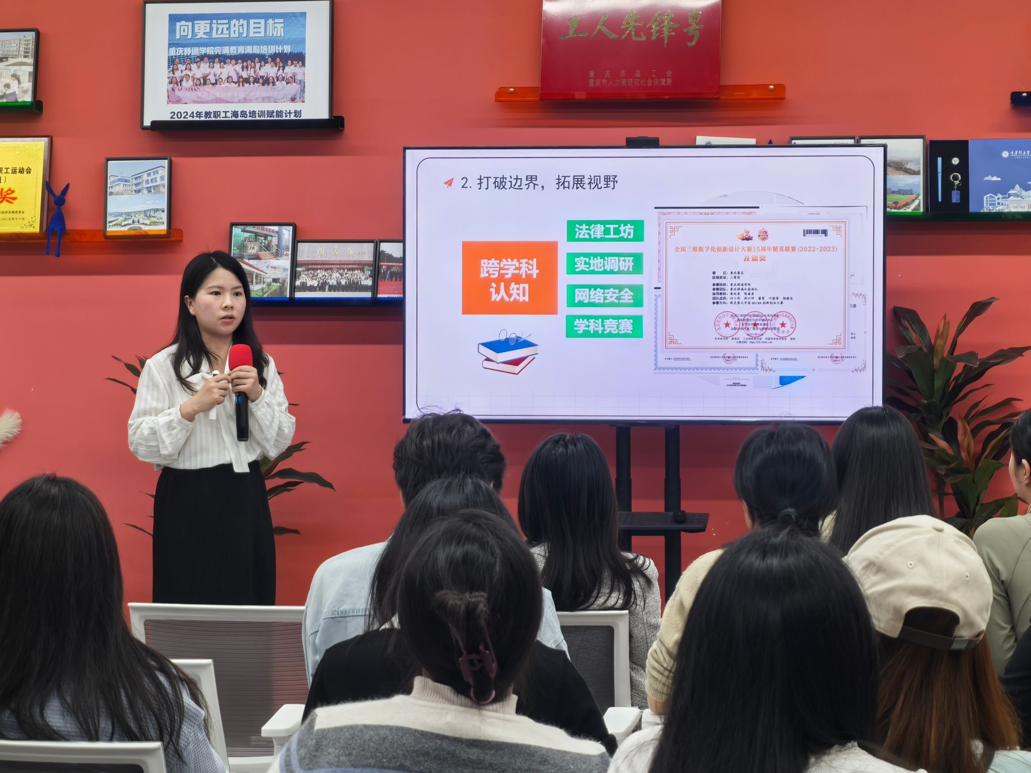 数字经济与信息管理学院、鱼城书院异科导师代表王付艳老师以《"异"路相伴,亦师亦友》为题,系统分享了育人实践,一是建立四六级报考预警机制,指导学生撰写学业规划书,强化目标管理;二是创新互动形式,构建信任型师生关系;三是动态跟踪就业动向,针对考研考编扎堆现象开展专项辅导。通过"亦师亦友亦家人"的角色定位,精准把握学生需求,建立双向情感联结。下一步将持续优化指导方式,加强资源对接,助力学生成长。