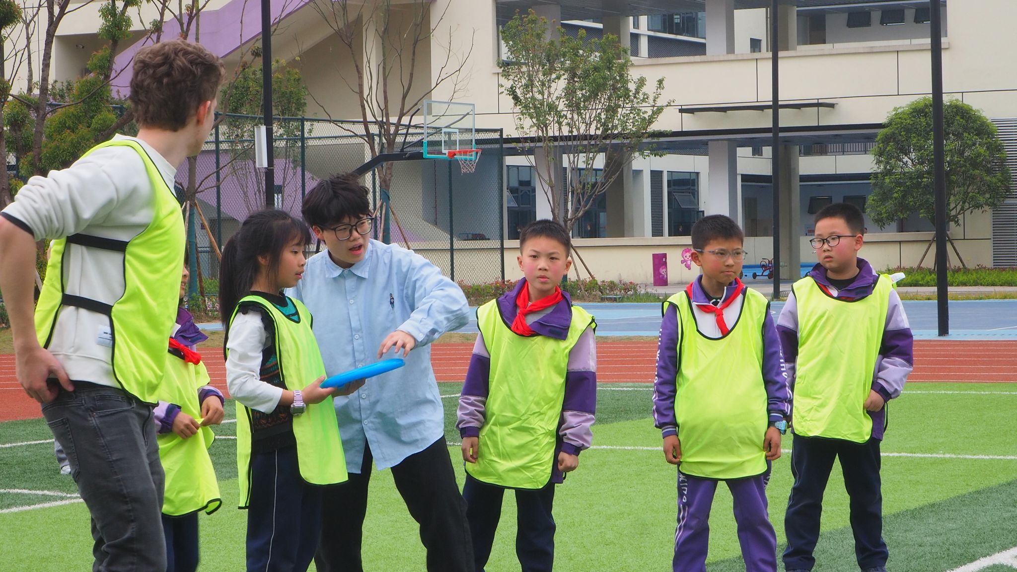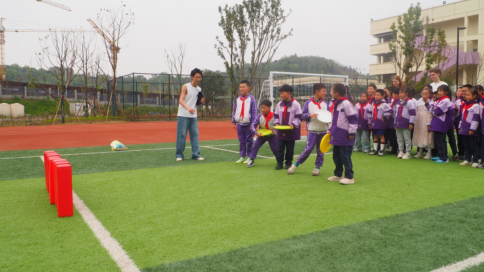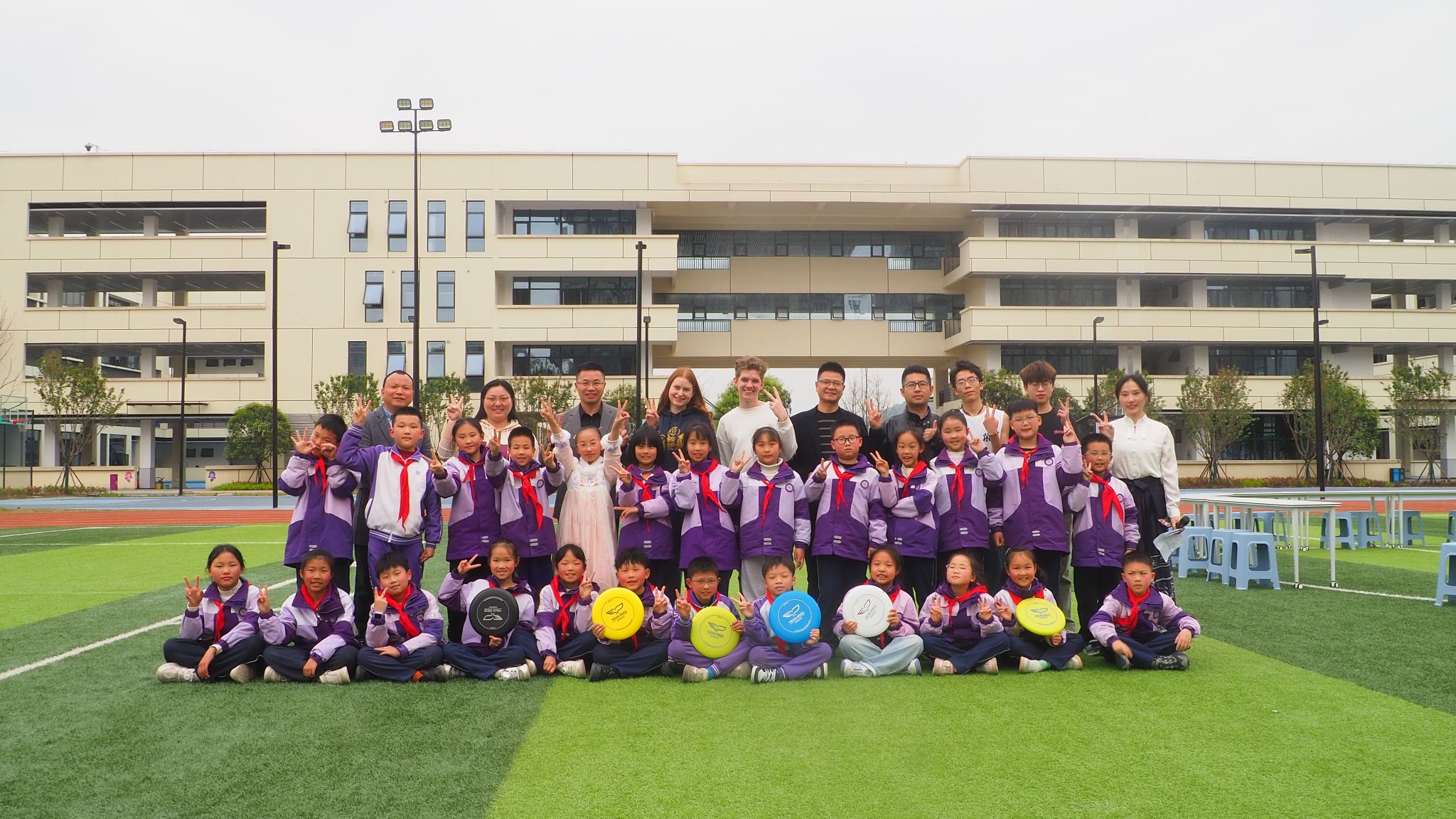 活动尾声,全体参与者合影留念,为这场跨越国界与年龄的文化交流画上圆满句号。鱼城书院学生代表飞盘社社长史荣辉感慨:“这次活动让我意识到,飞盘互动、文化交流都无需语言‘完美’,通过带领小学生们进行飞盘运动,感受到真诚与笑容才是最好的沟通方式,今天又是被小朋友们治愈的一天。”国际教育学院张冰凌老师表示:“大中小学教育一体化的意义,正是让不同学习阶段的学生在共享中成长。未来我们将继续深化合作,探索更多元的文化融合形式。”
